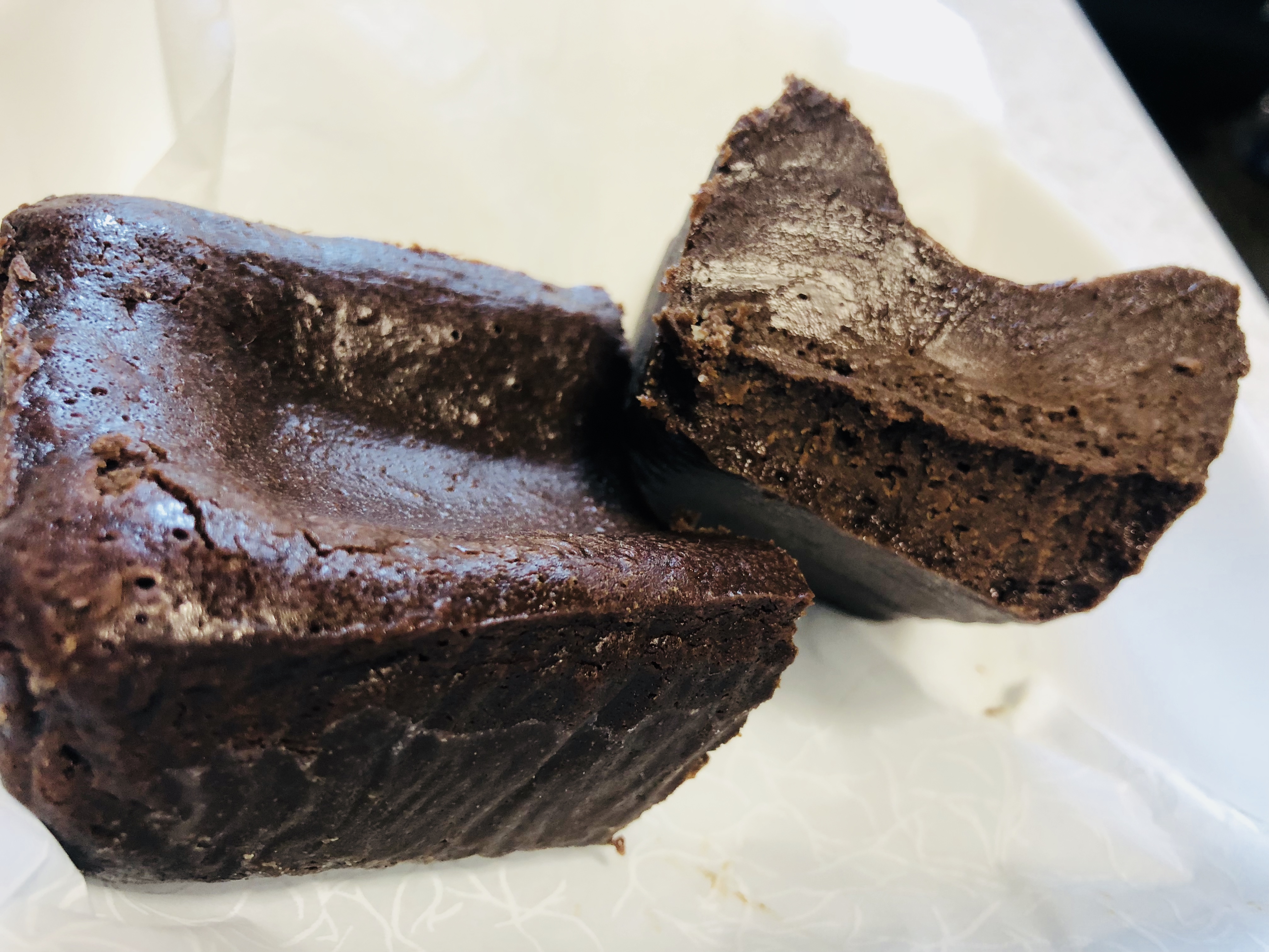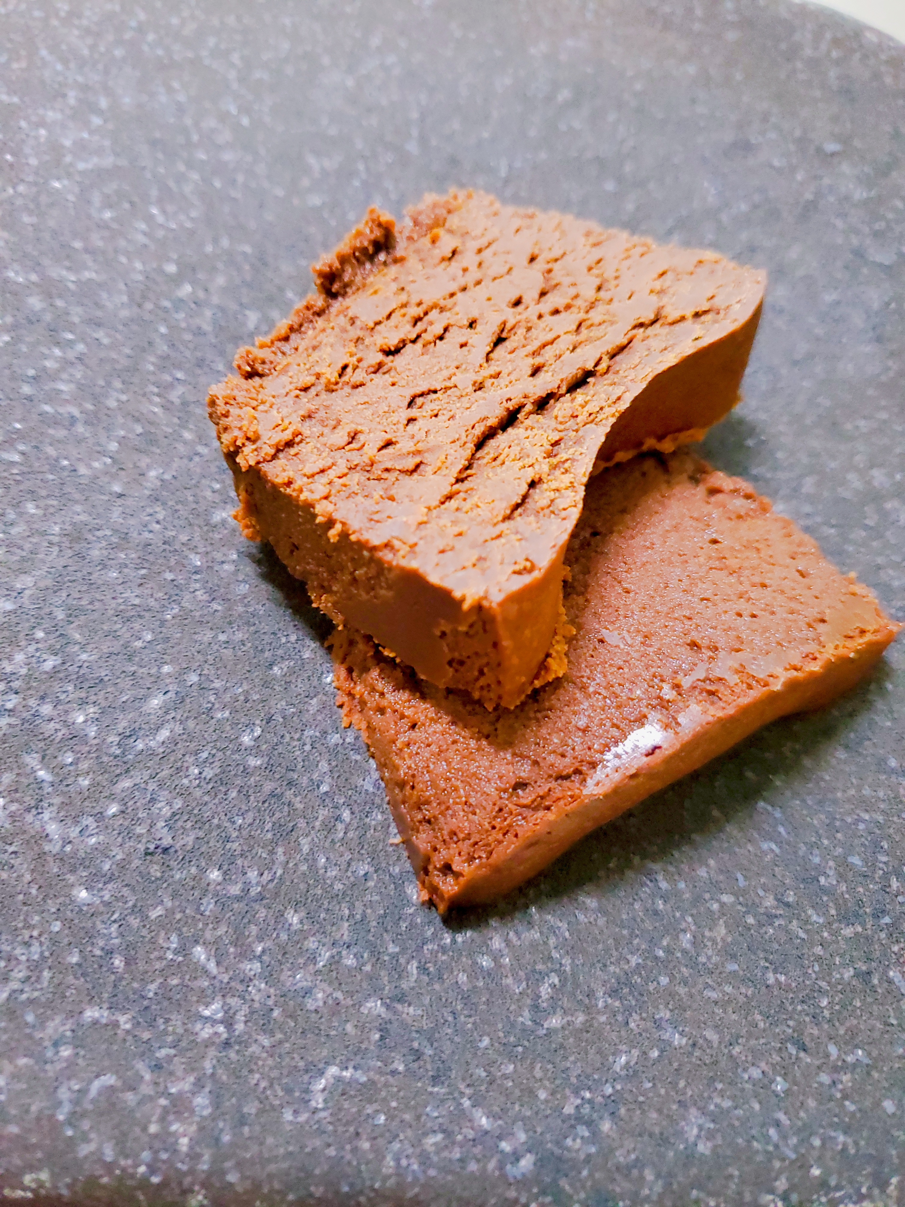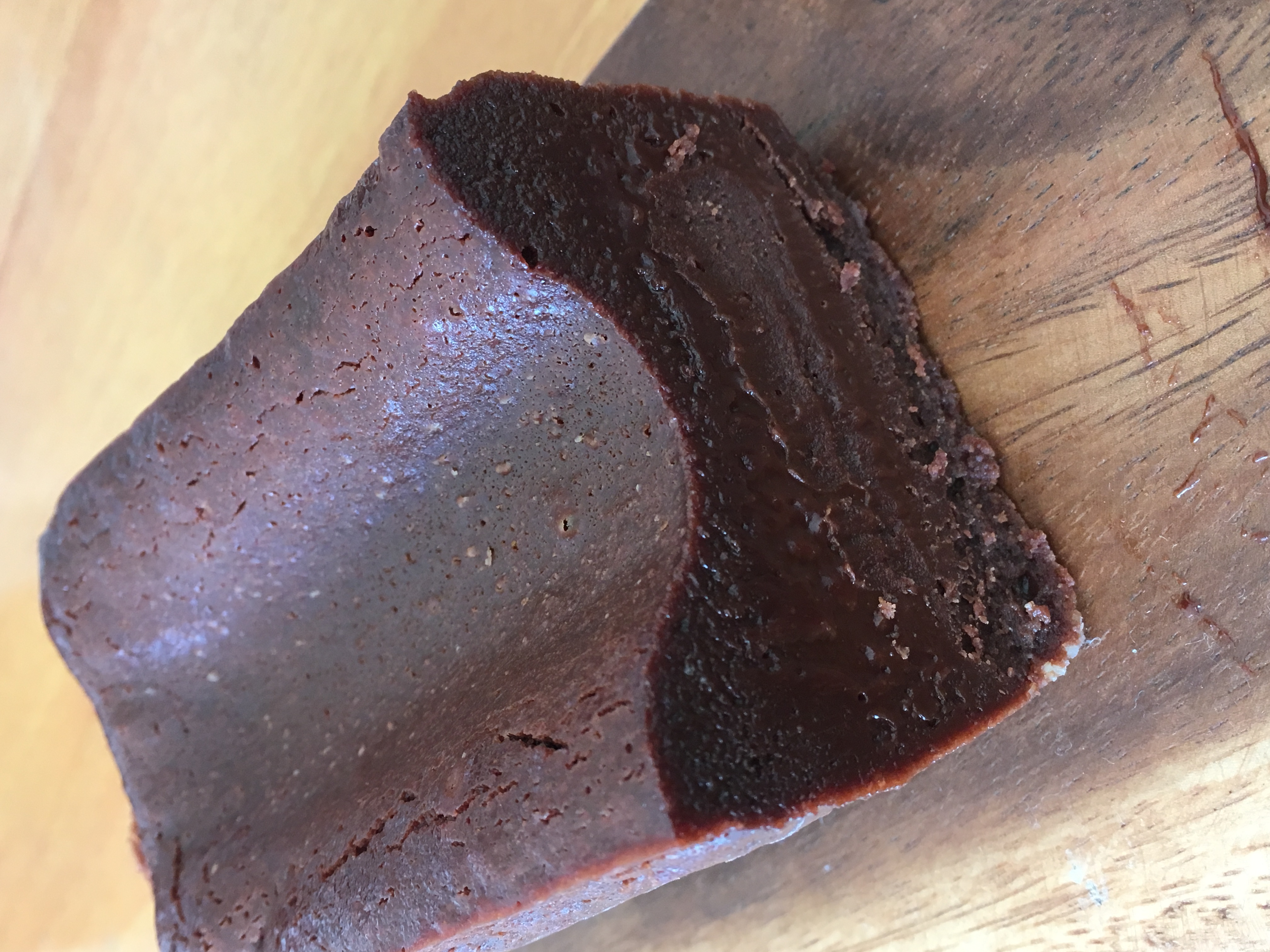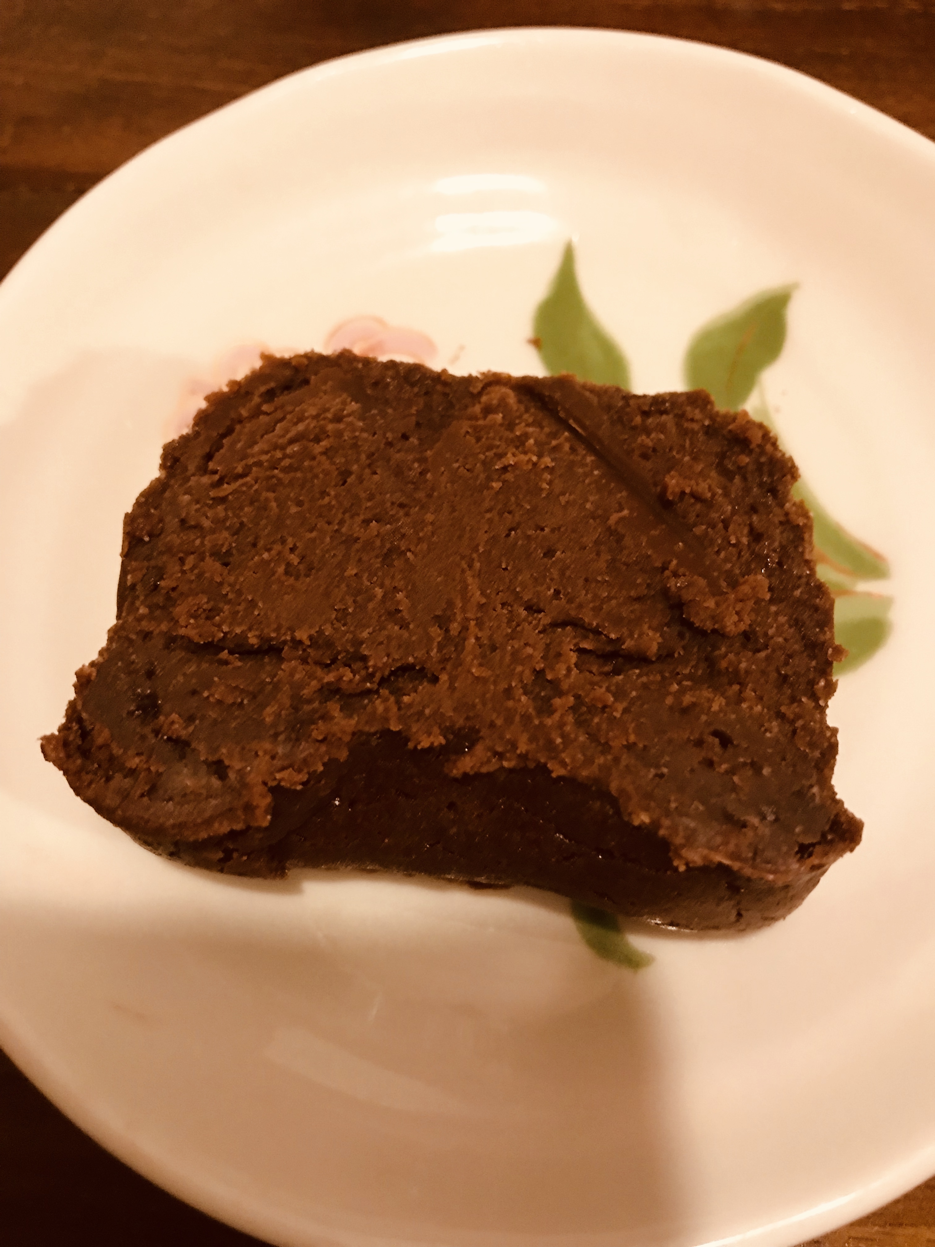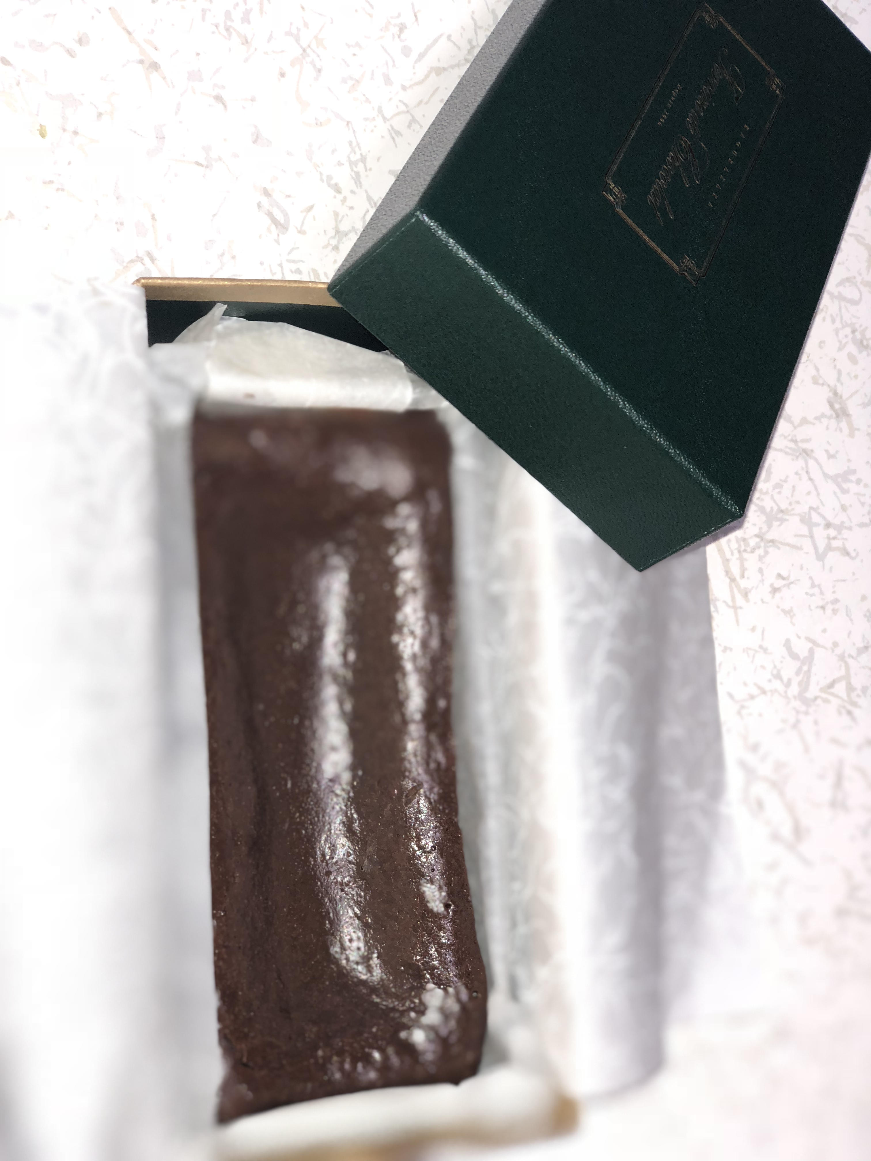 中身はずっしり濃厚で、カットした後に レンジで温めると 真ん中からチョコがとろけてきて!ツヤッツヤのチョコレートに自分が映りそうなくらい 表面がとっても美しいです!