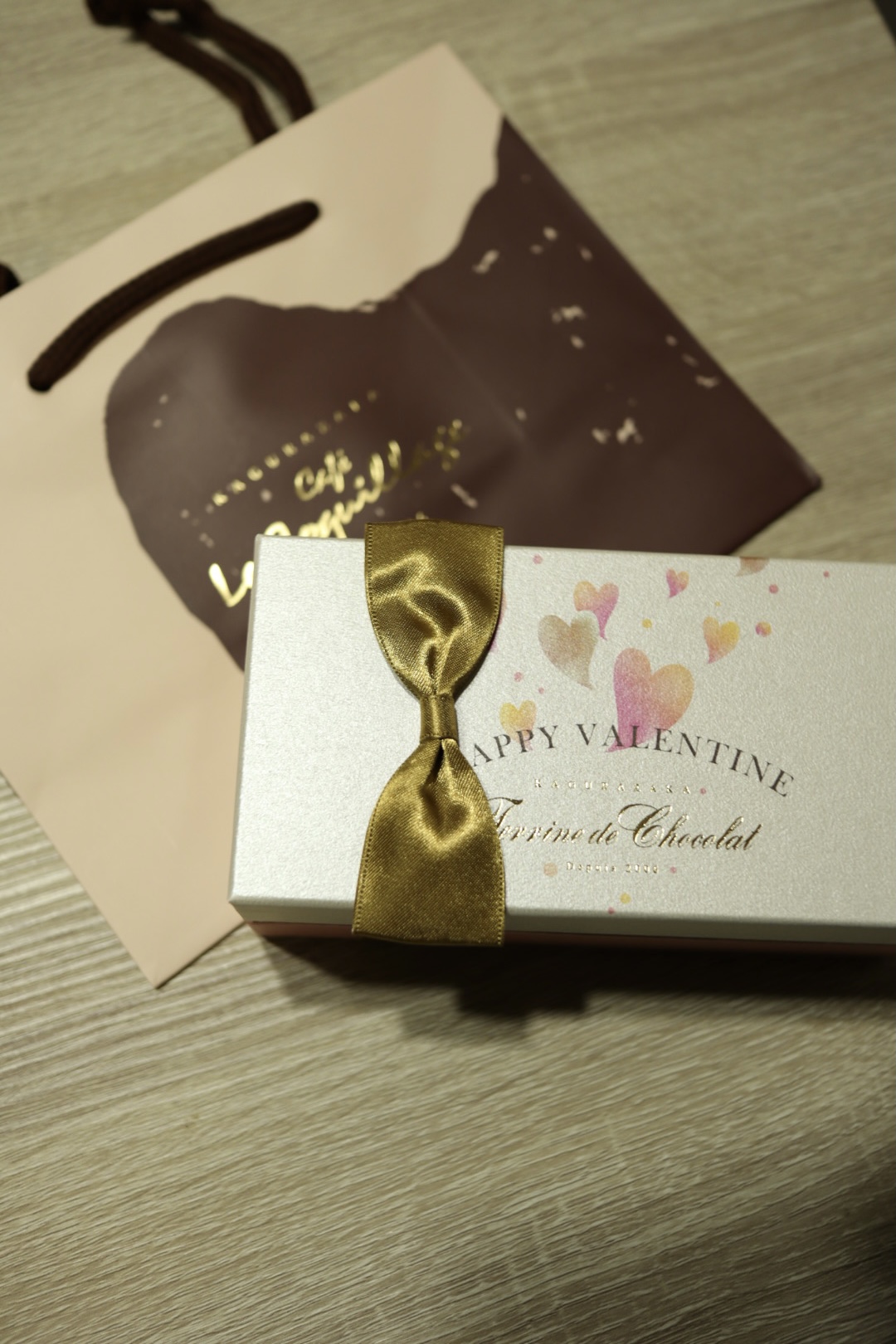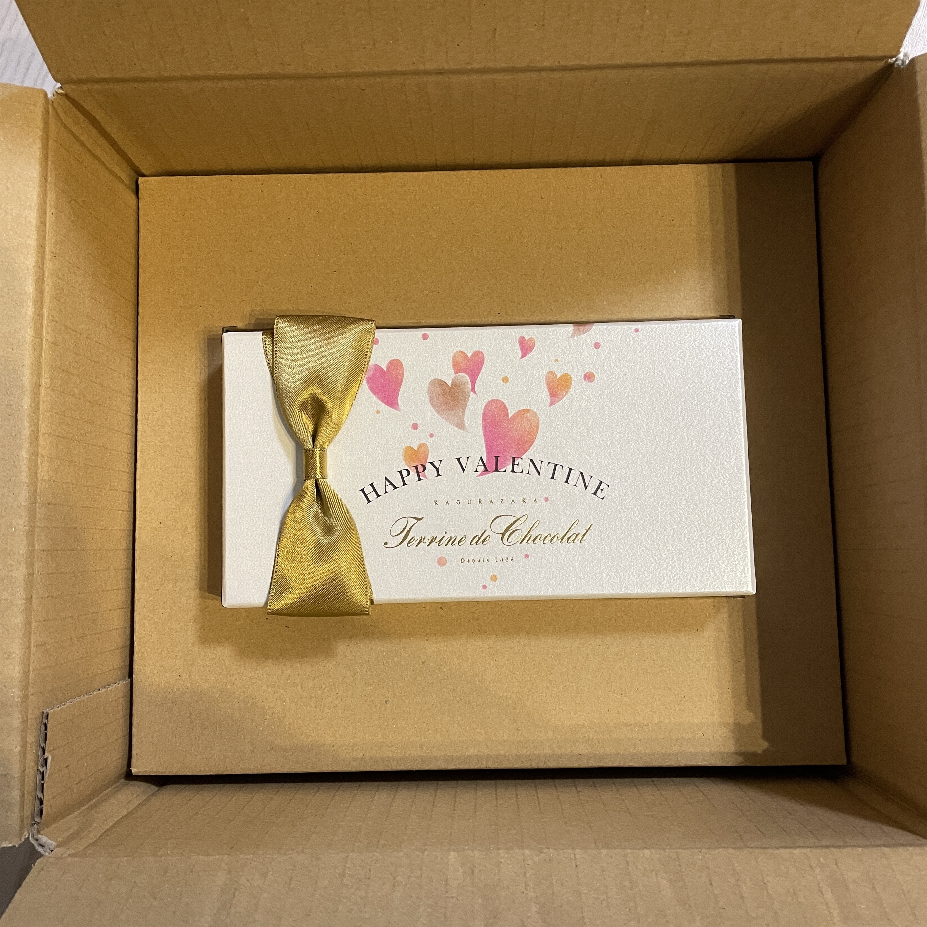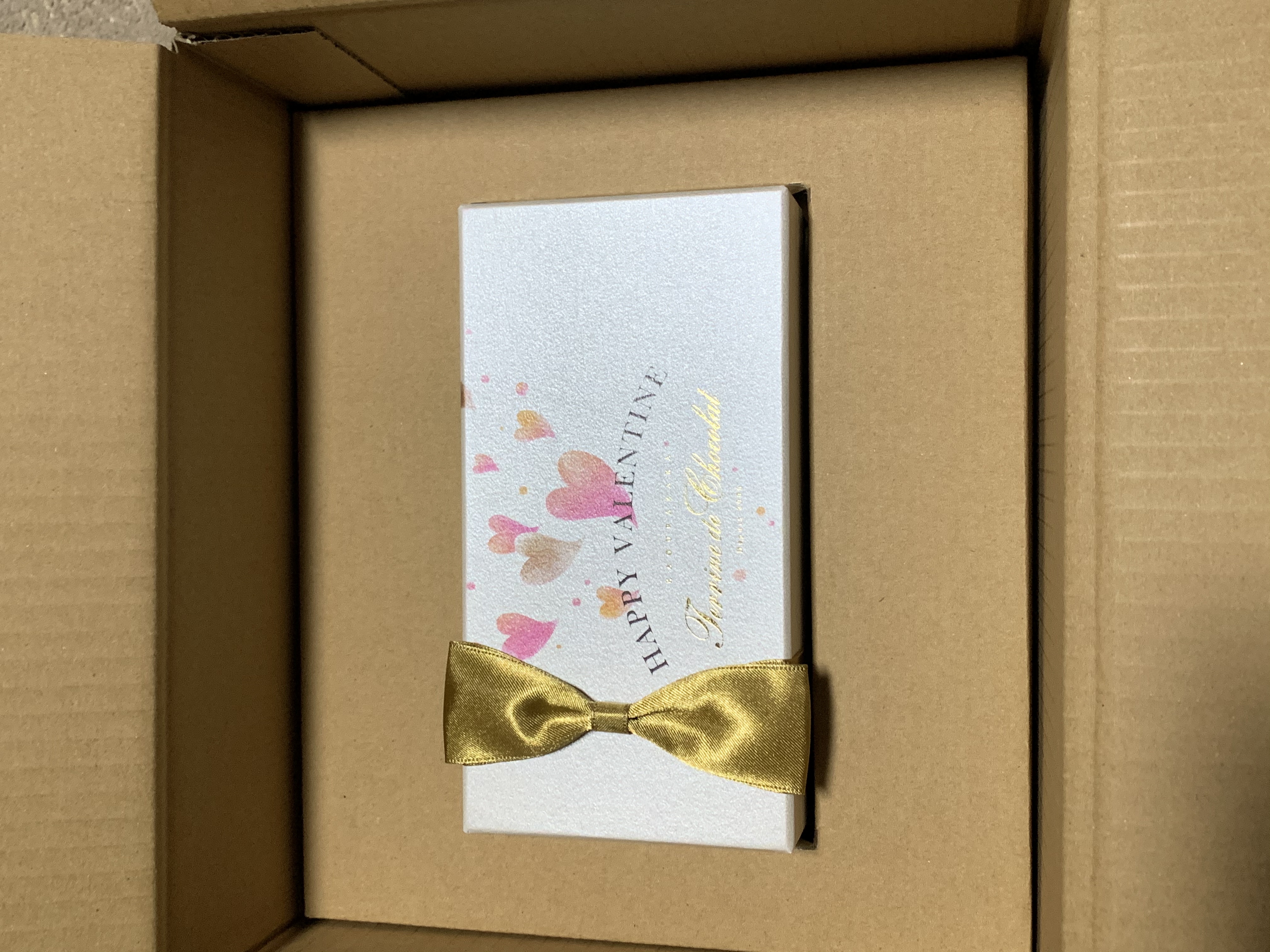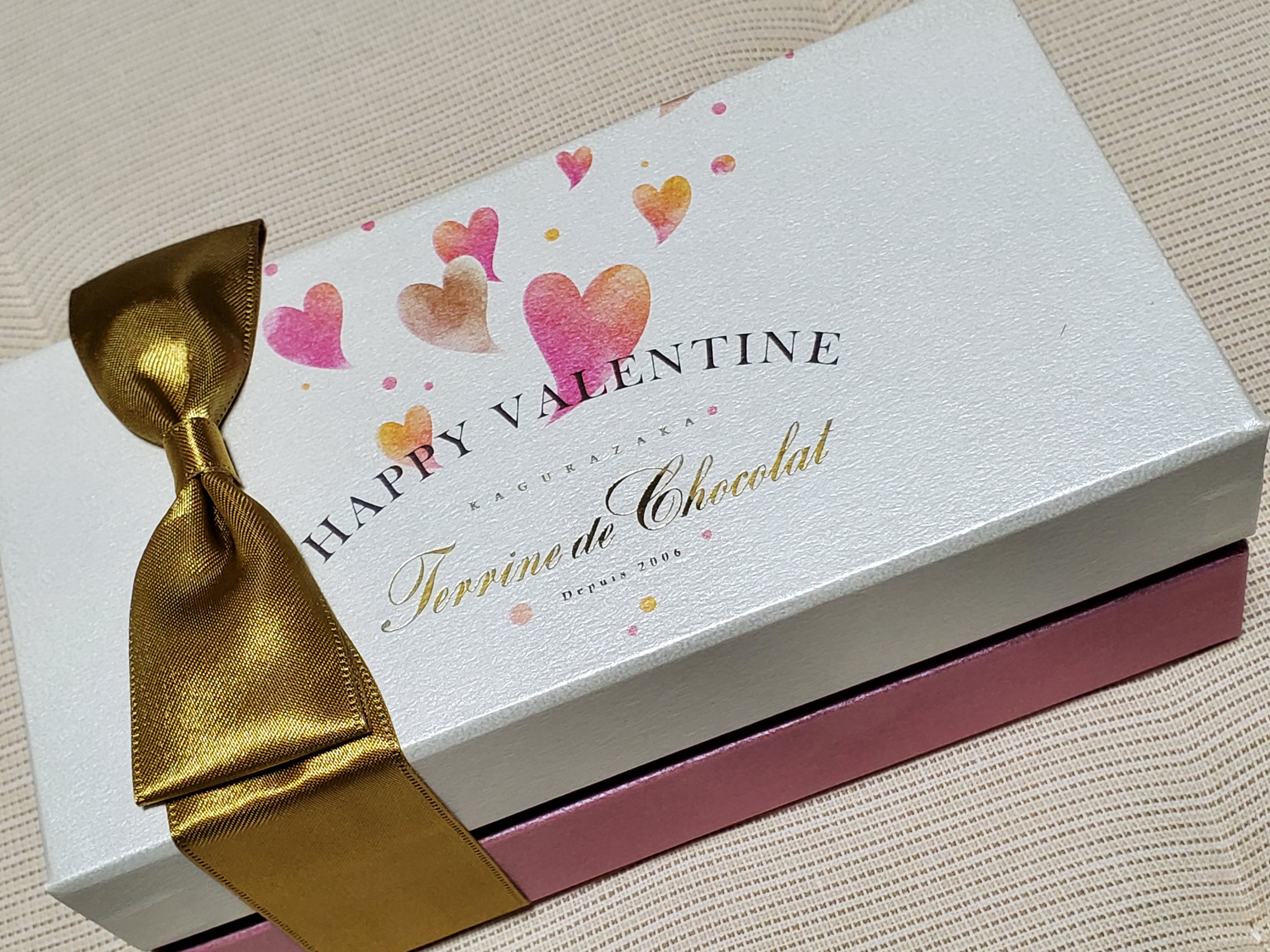 バレンタインのパッケージは、箱の下半分がピンク色でとってもカワイイ!ゴールドのリボンも豪華で、素敵な紙袋も入っているので、プレゼントや手土産にピッタリです!