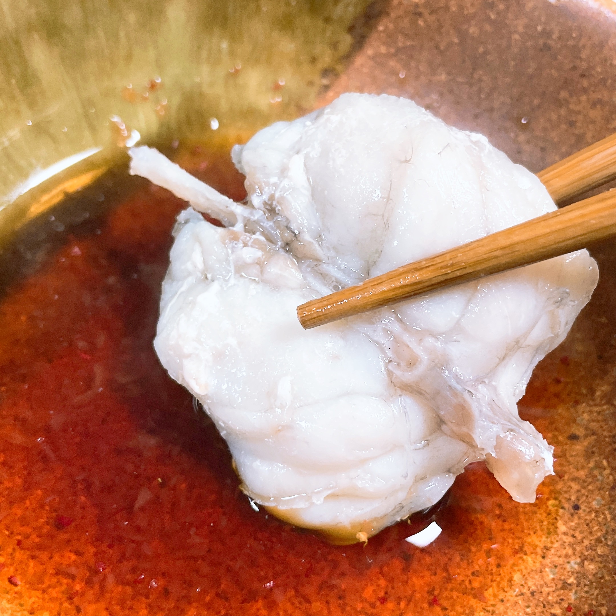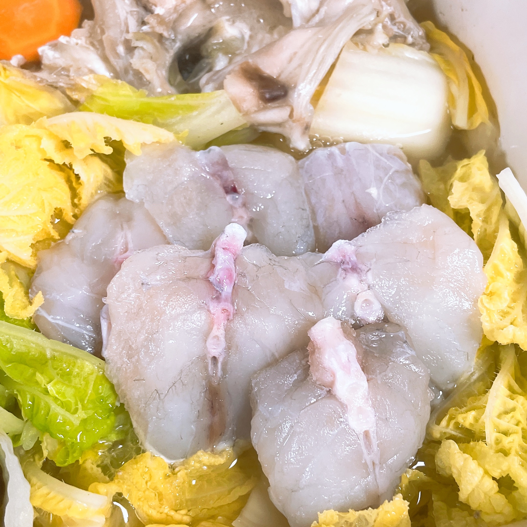 一口食べて プリっと広がるふぐの旨みに家族全員感動!!!厚みがある身なのでとっても食べ応えがあり本当に最高です!アラもしっかりと身もついておりおいしい出汁を取った後も身をたっぷり楽しめました。アラの周りの身は本当にプリンプリンでまたこちらは違った美味しさを味わえます。