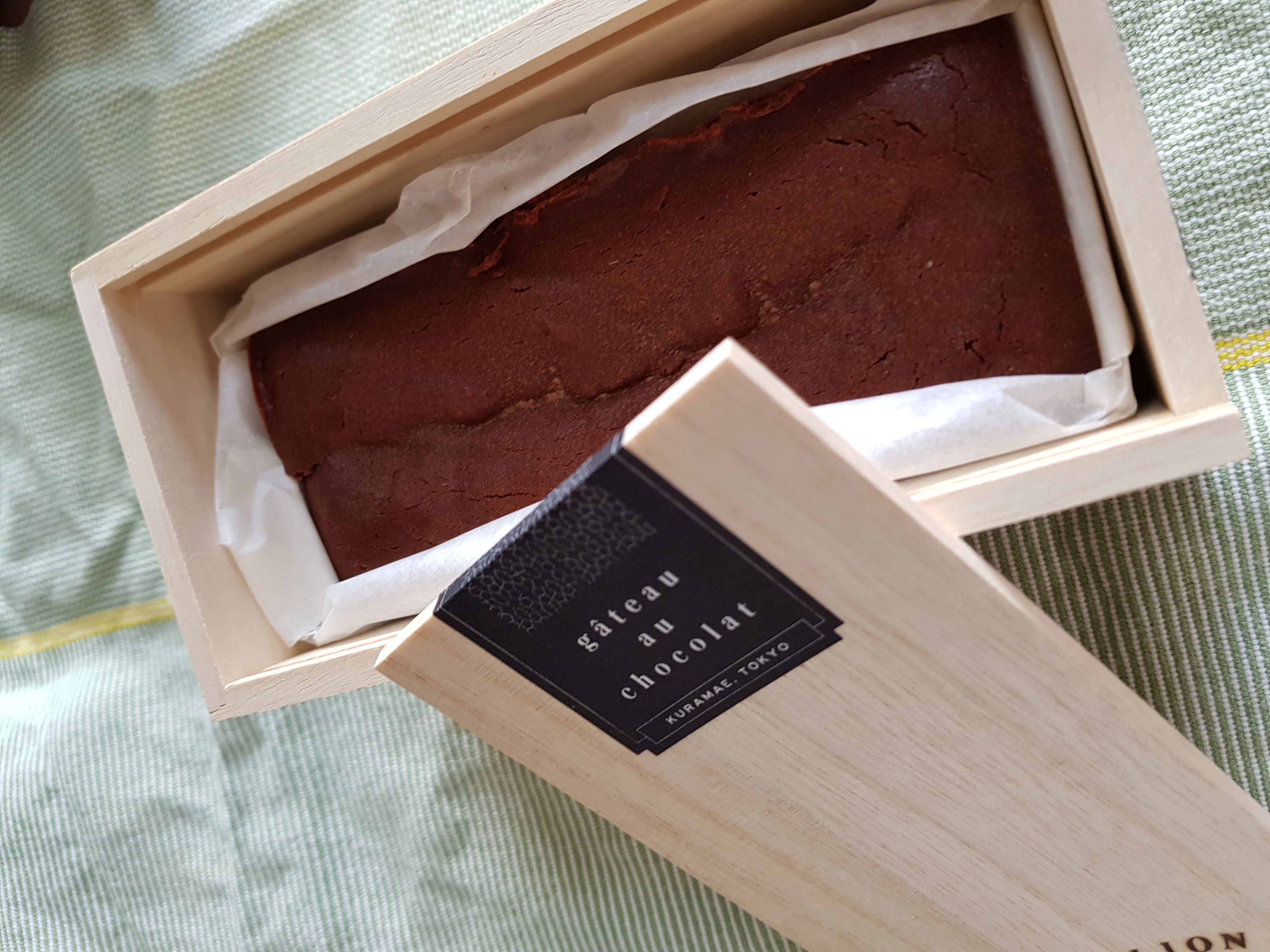 ガトーショコラはとっても上質な桐の箱に入っていて箱の上には上品にデザインされた黒いラベル箱の下には店名のロゴの焼き印が入っておりシンプルながらも高級感がいっぱい。