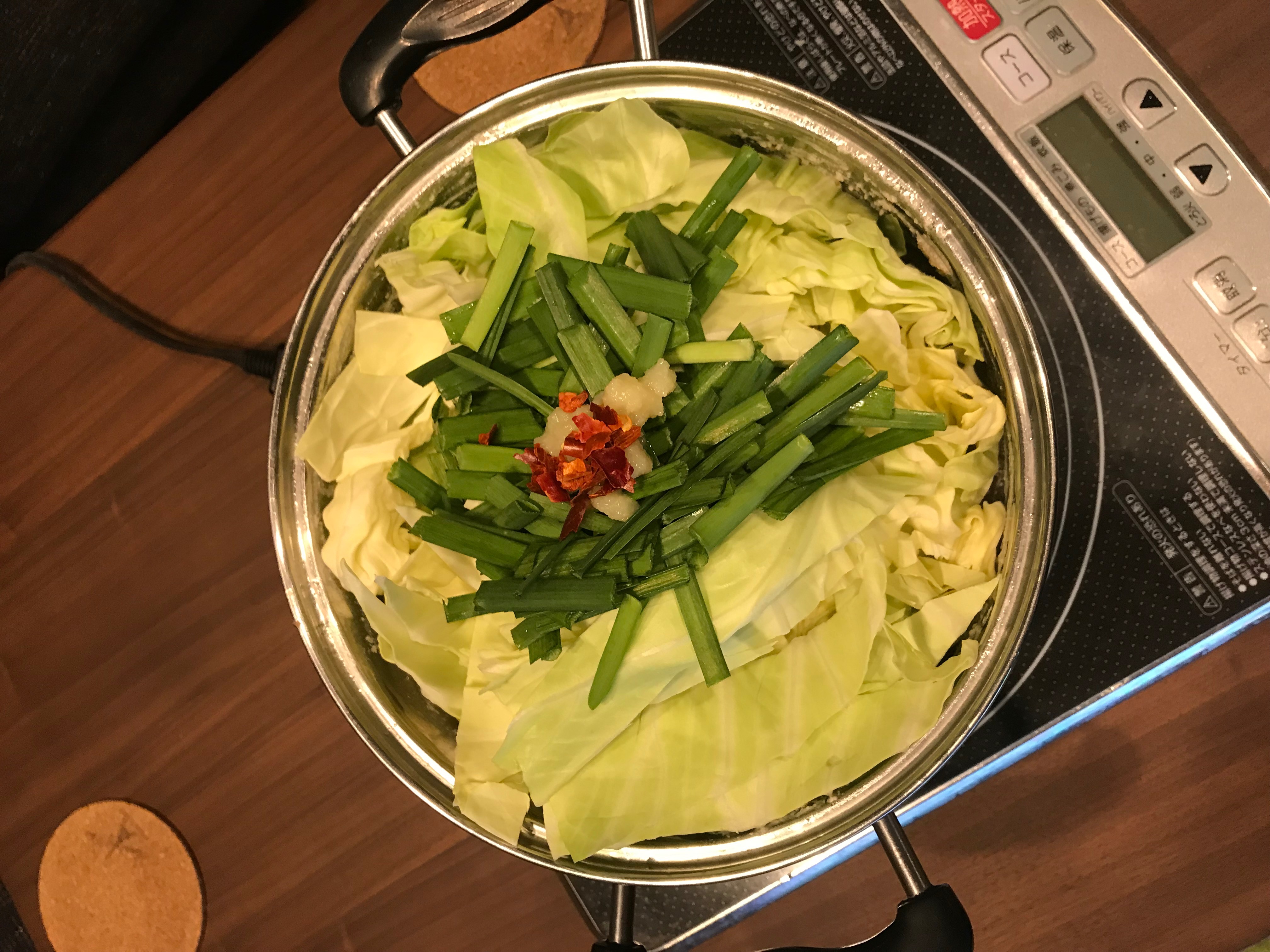 スープの中にもゴボウやニンジンが入っているし、キャベツも沢山入っているのでもつだけでなく、お野菜も楽しめました。