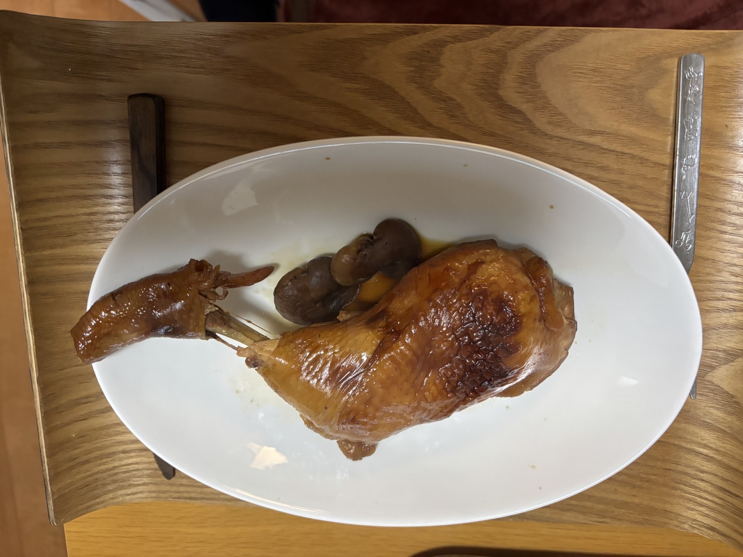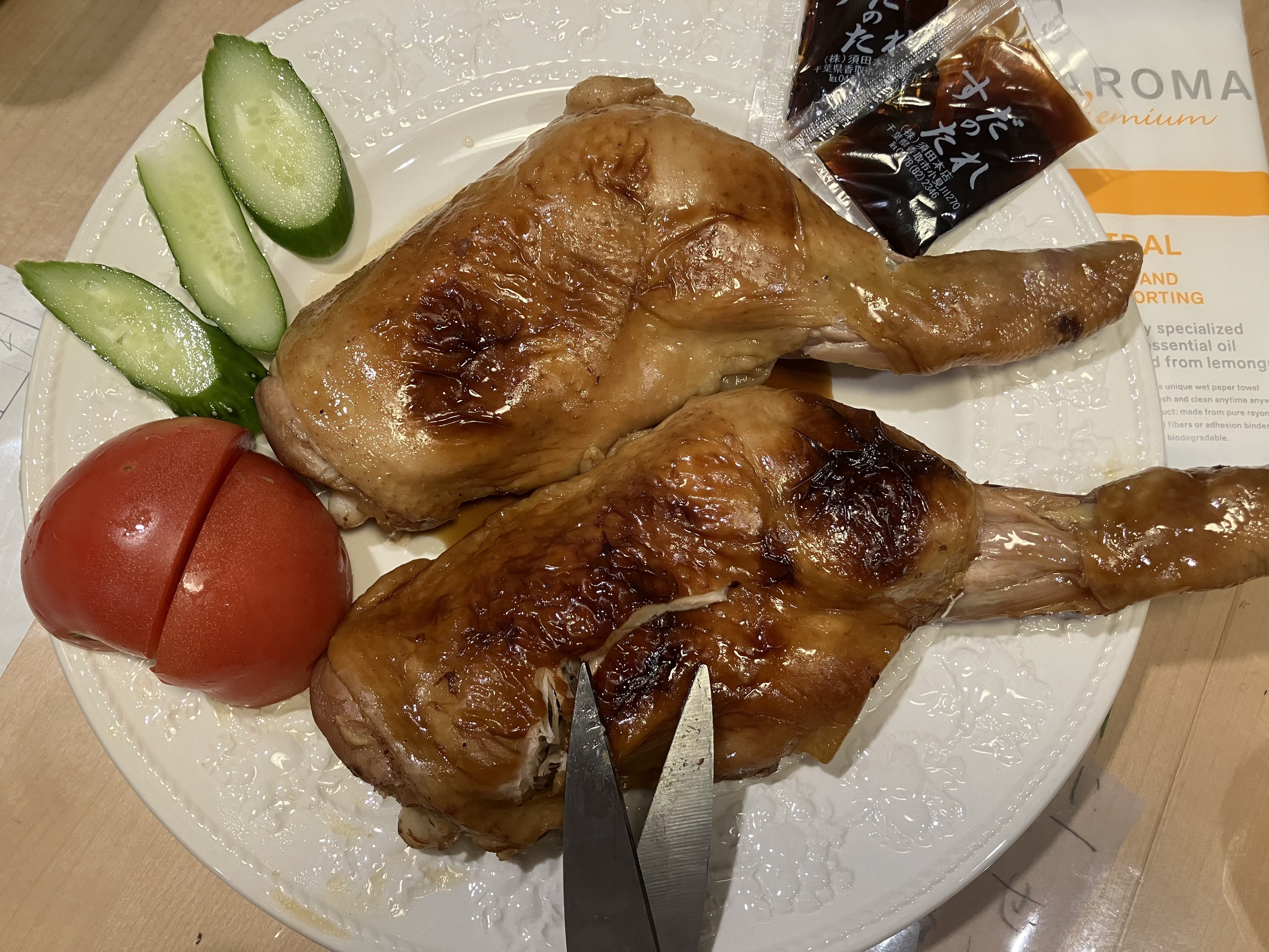 実際にローストチキンを見てみると、想像していたよりもとっても大きなサイズで嬉しい誤算でした!本当に拳2〜3つ分くらいのサイズがあるのでボリューム満点です。