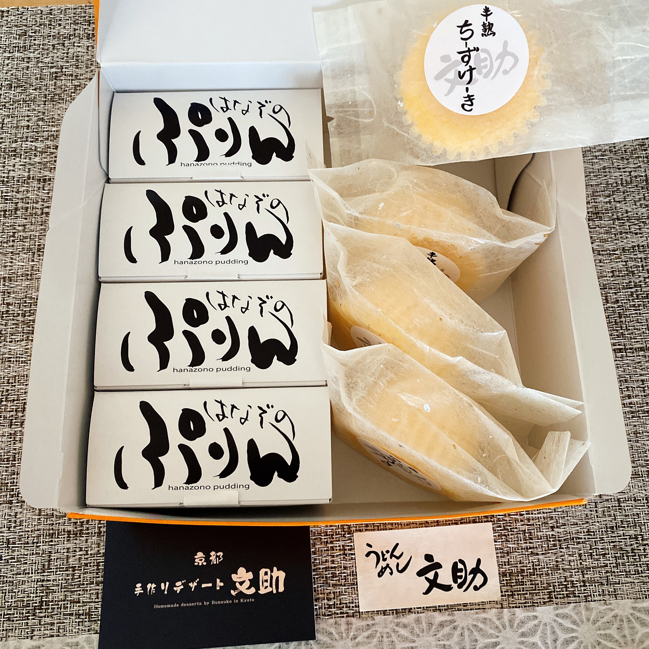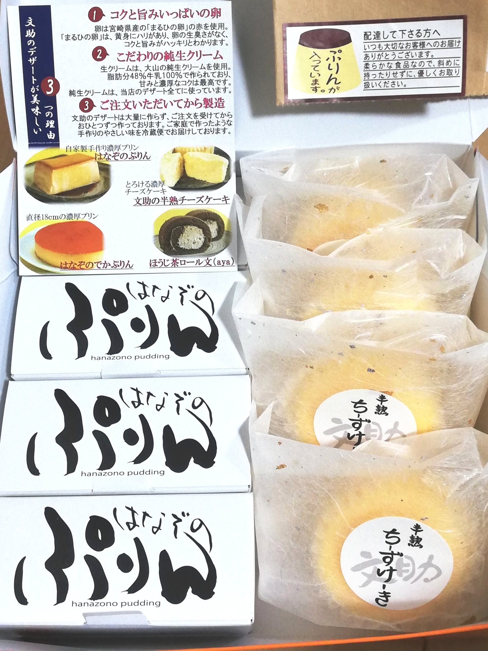 半熟チーズケーキとはなぞのぷりんのセット 京都手作りデザート 文助