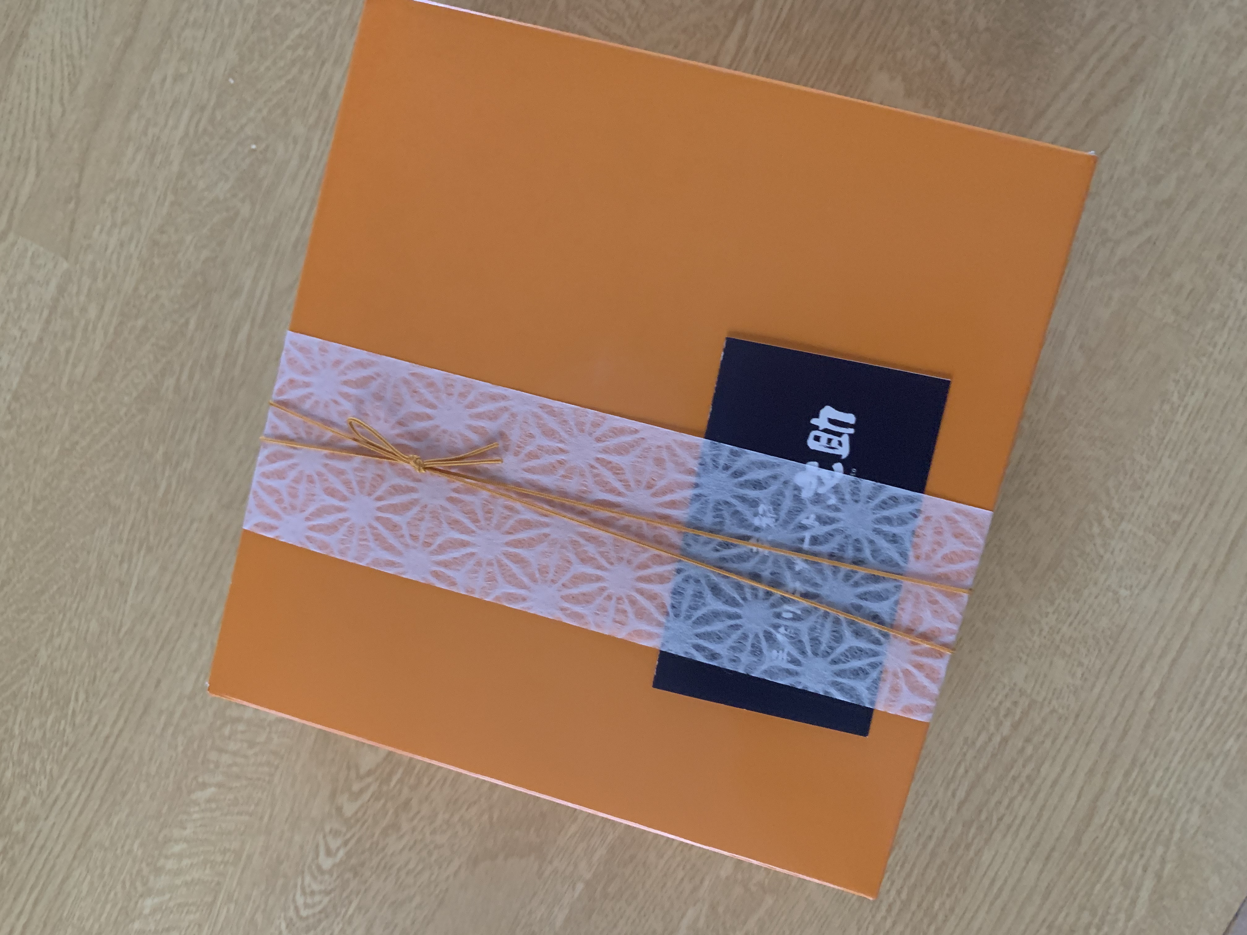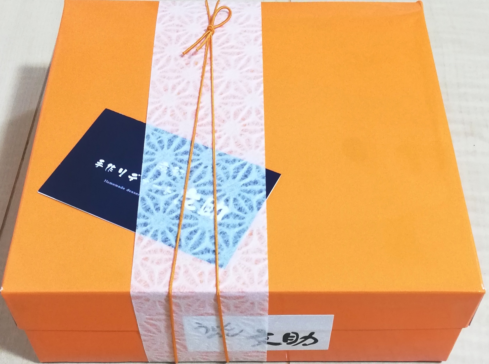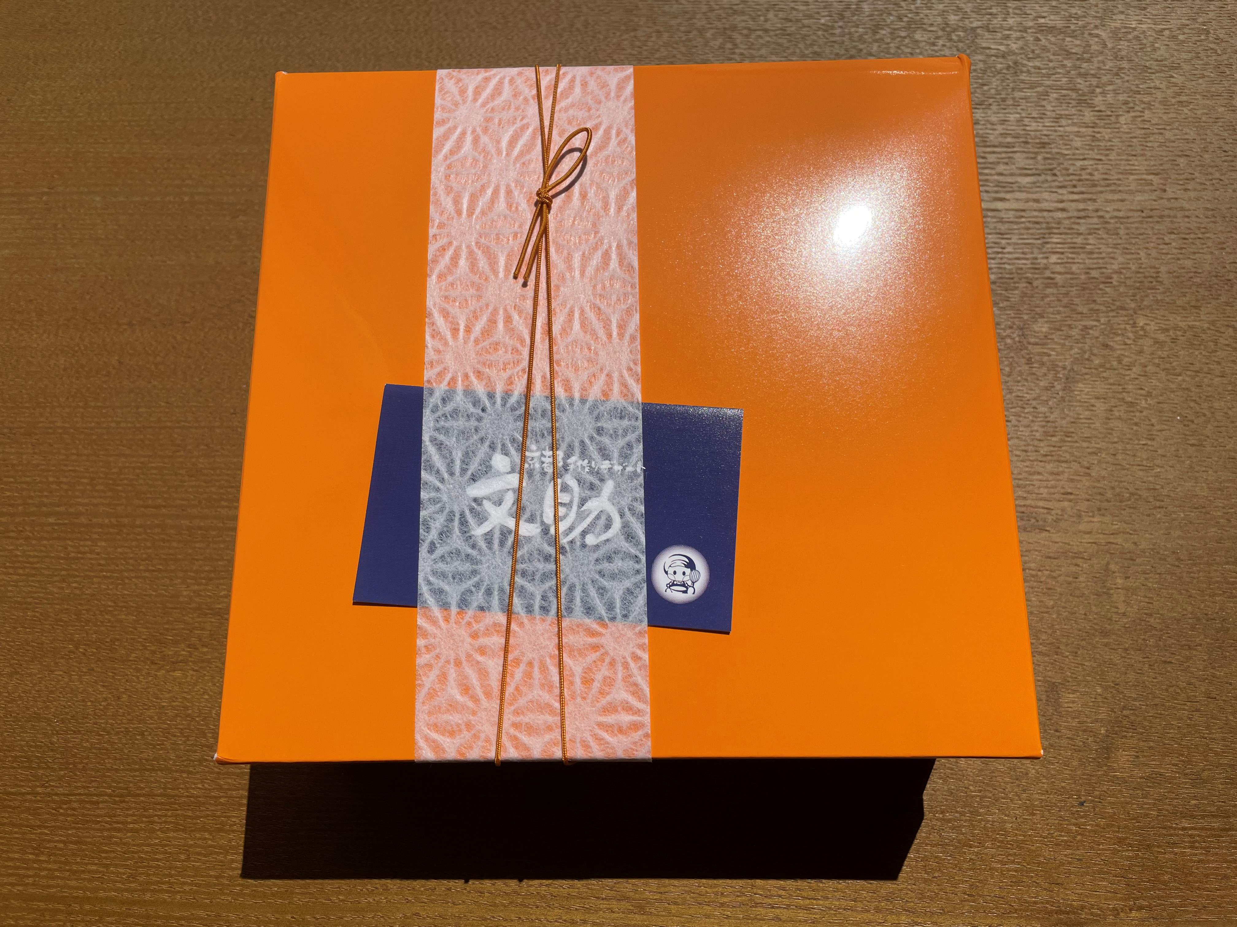しっかりした紙袋から中身を取り出し、ぐるりと巻いてあった緩衝材(プチプチ)を外すと、ショップさんのサイトで紹介されている通りの、ビタミンカラーのオレンジ色の化粧箱が確認出来ました。ここで2枚の目写真を撮りました。