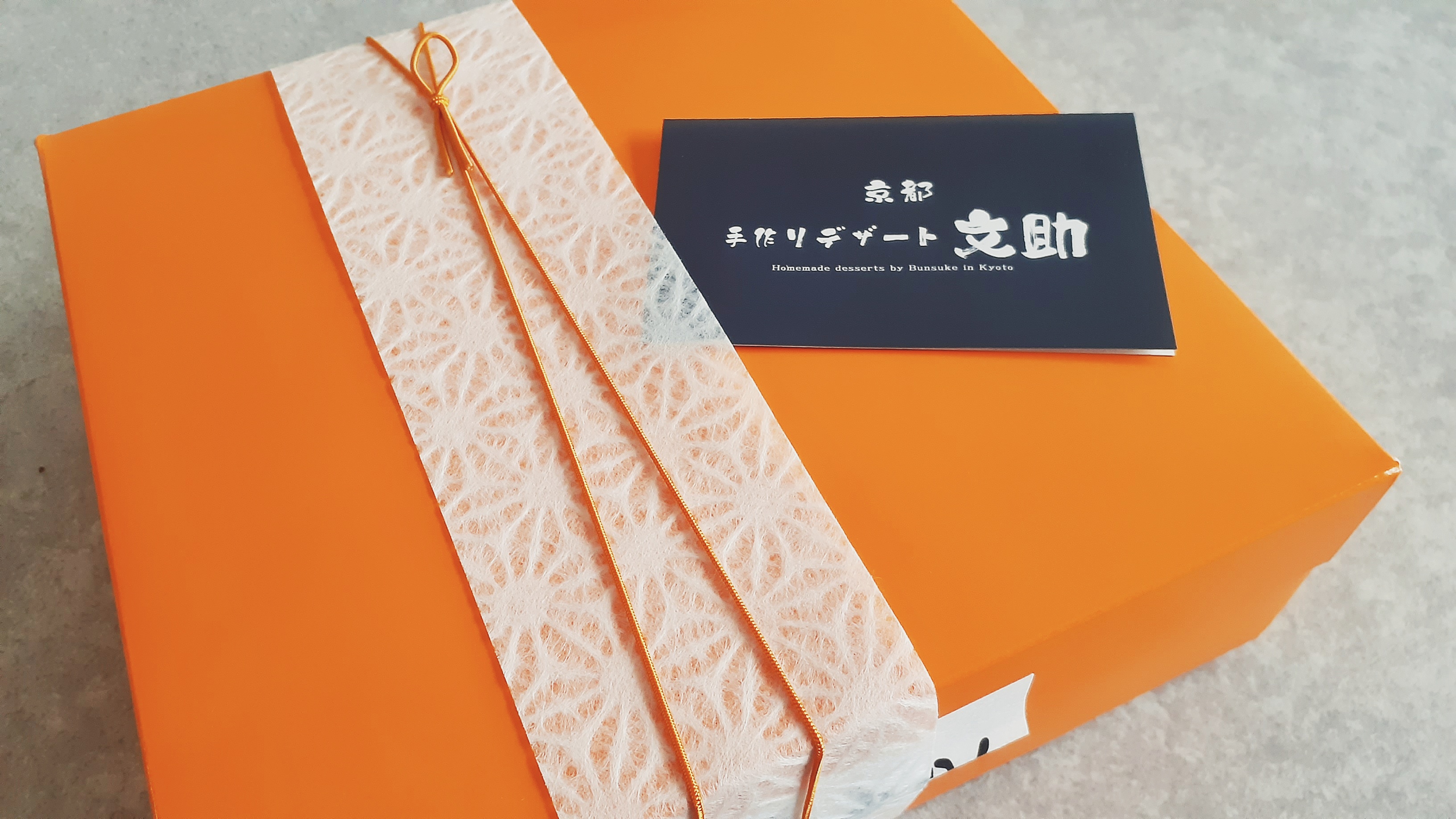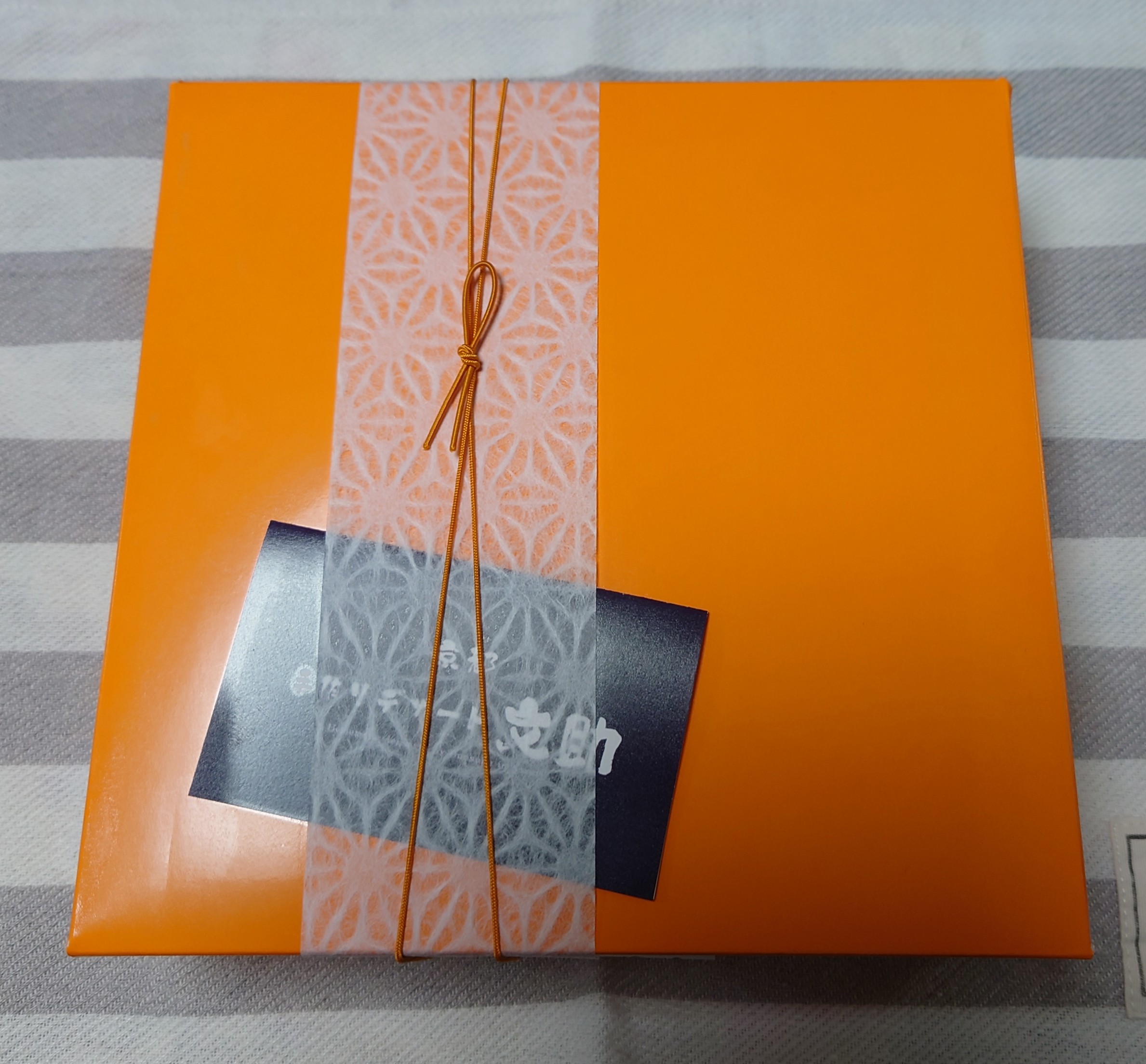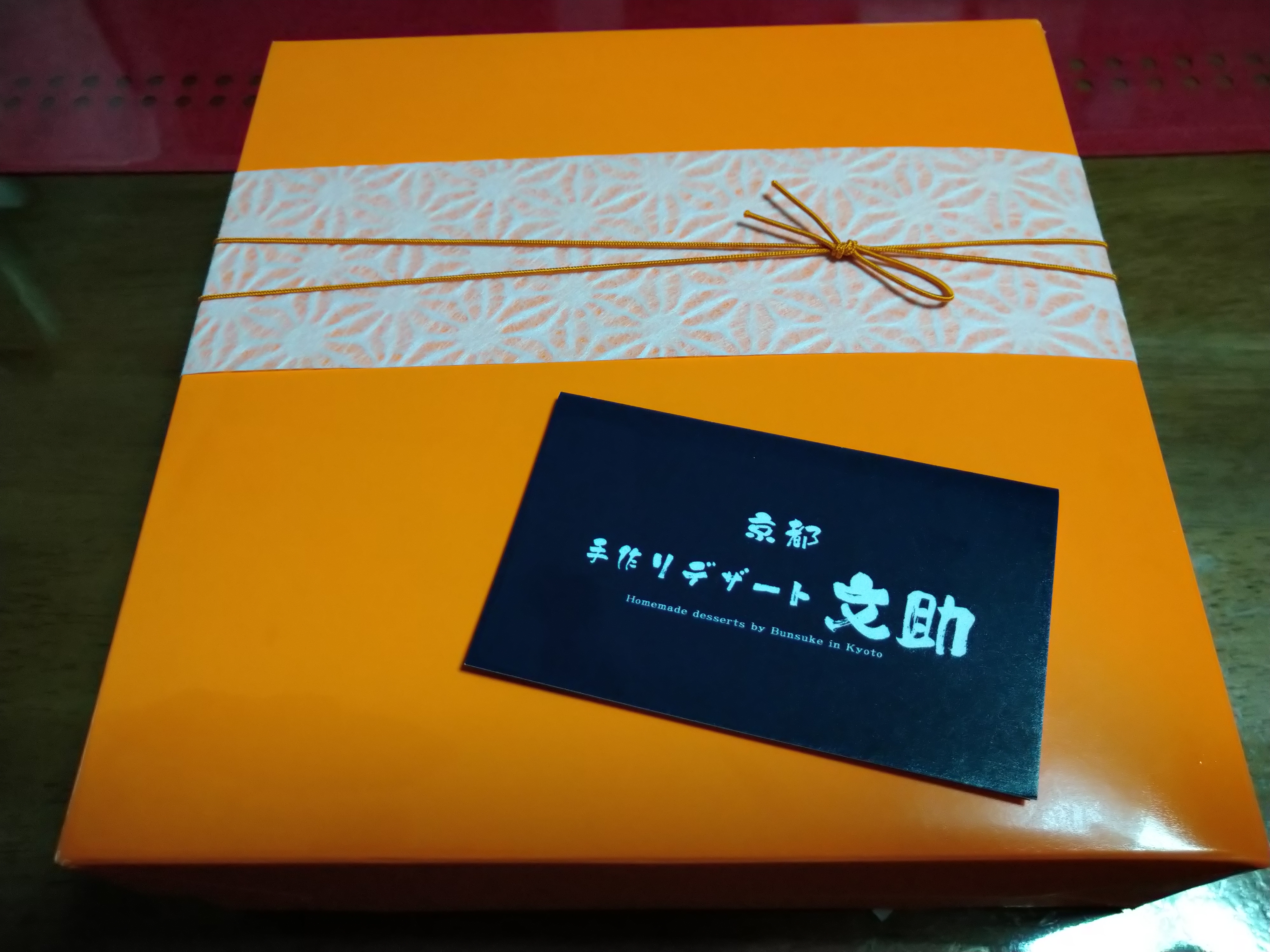 しっかりした紙袋から中身を取り出し、ぐるりと巻いてあった緩衝材(プチプチ)を外すと、ショップさんのサイトで紹介されている通りの、ビタミンカラーのオレンジ色の化粧箱が確認出来ました。ここで2枚の目写真を撮りました。