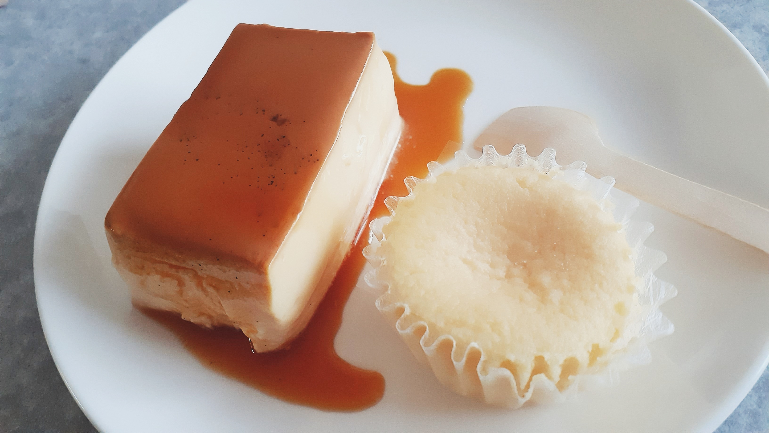 このままで十分美味しいのに、カラメルソースが別容器に入れて添えられているので、味変まで楽しめます♪