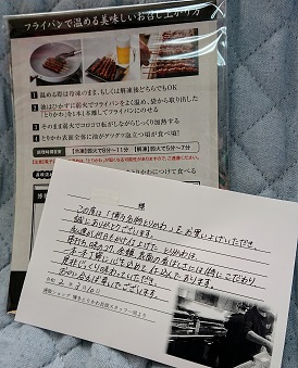 同封の紙を見て、フライパンで、表面から泡が出るまで弱火で焼いてから、いただきました。