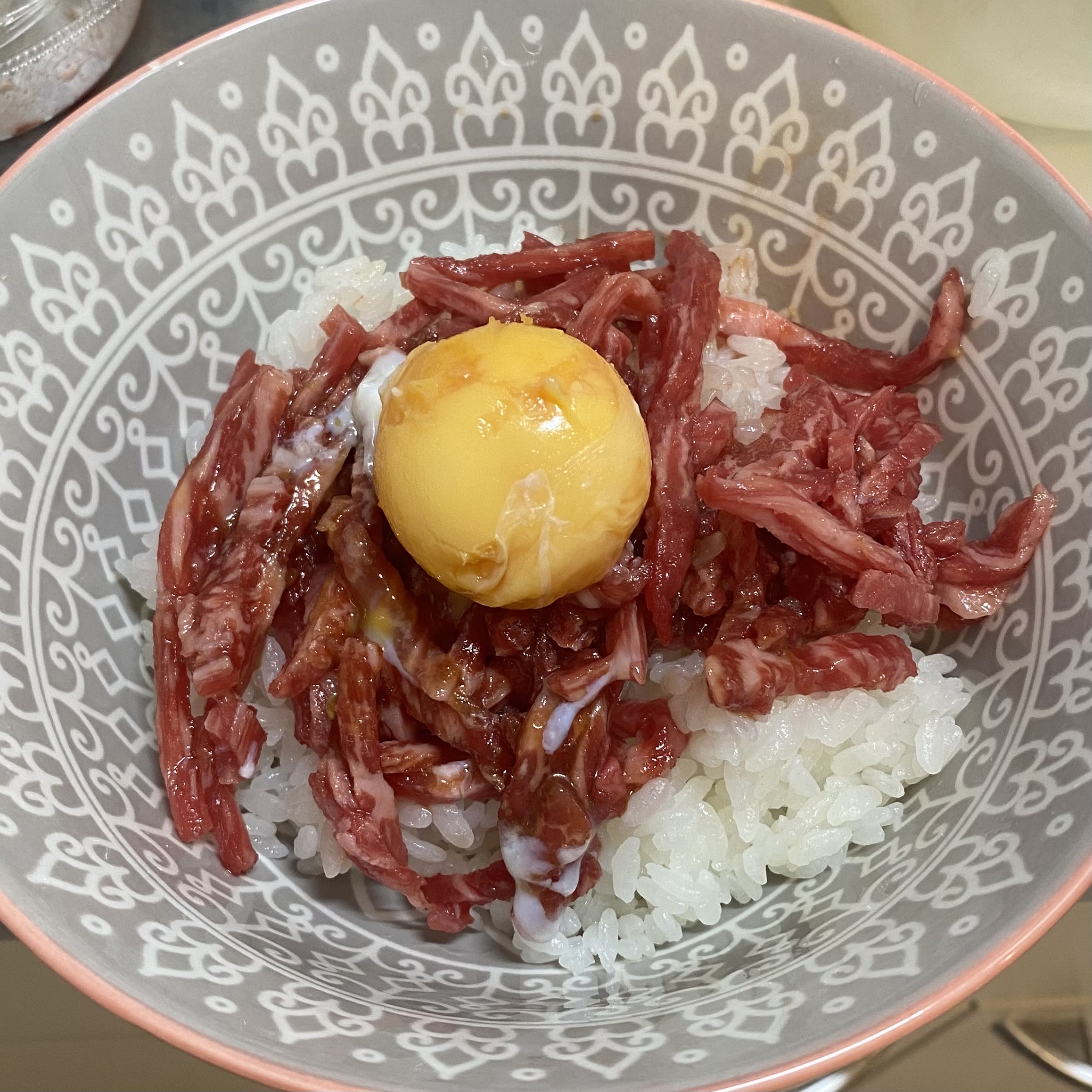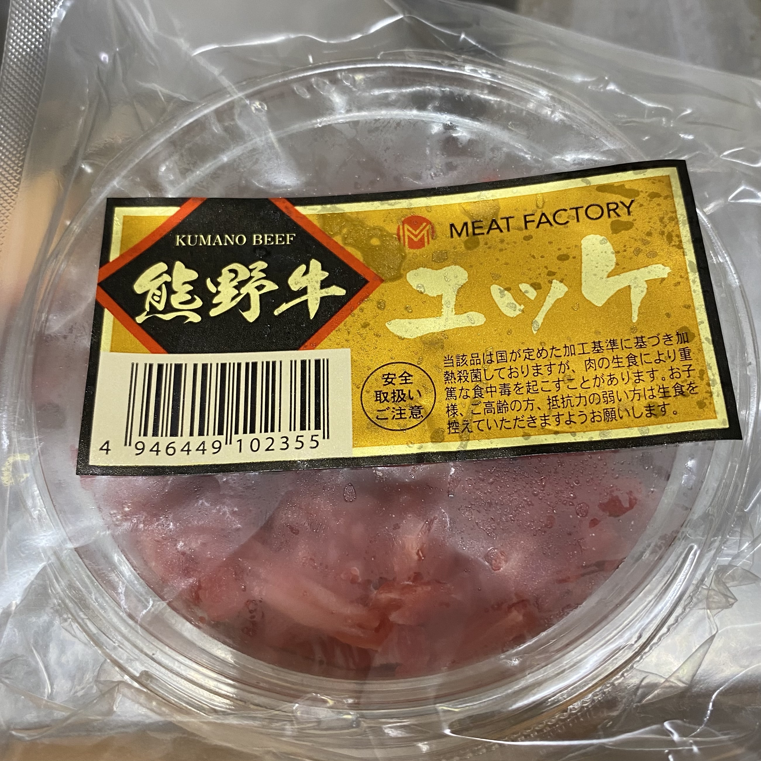 ユッケというと赤身のイメージがあったのですが、適度にさしが入っていて、口の中で赤身部分のくにゅっとした食欲の後にその脂が口の中で溶けていき、非常に美味しかったです。また、今回チョイスした薬味が後味をさっぱりさせてくれてあっという間になくなってしまいました(笑)