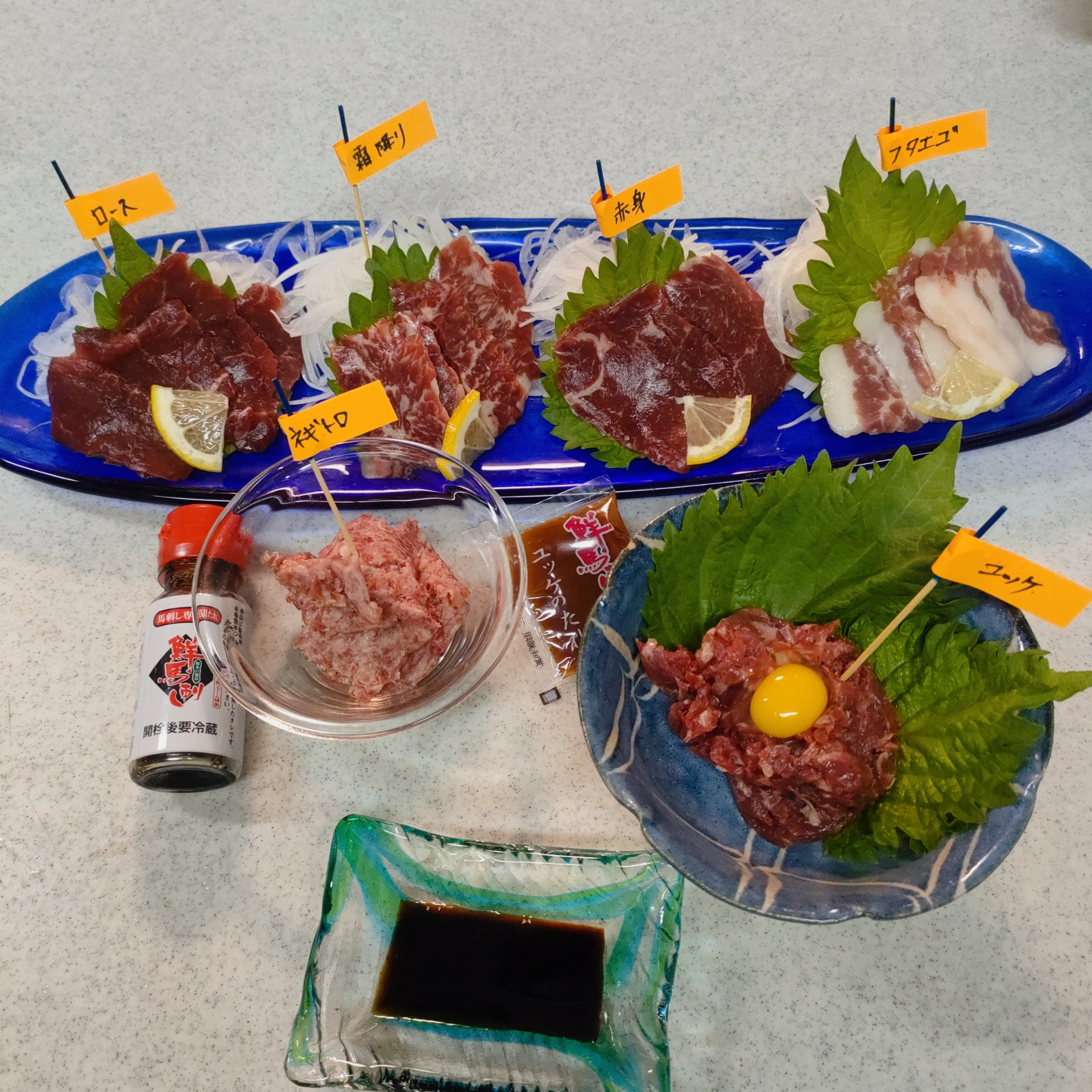 食べ盛りの男子2人と夫と私で食べましたが、馬肉三昧で楽しめました。