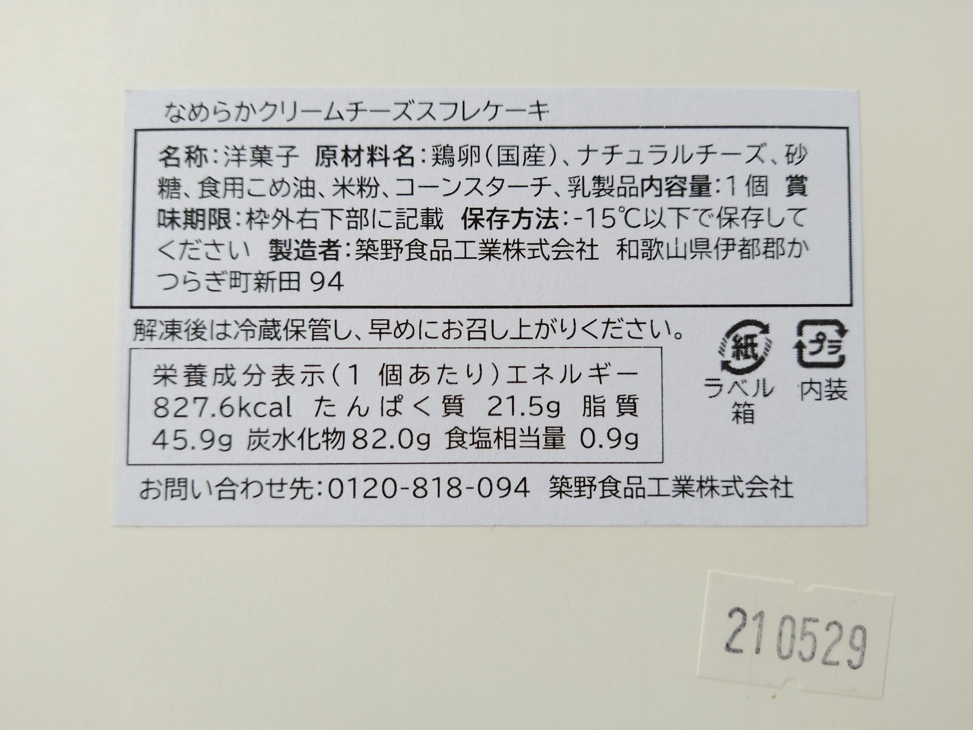 とても食べやすい、あっさりとしたしゅわしゅわのチーズスフレでした!保存料など添加物を含んでいない、グルテンフリーの身体にやさしいチーズスフレとのことでしたが、2歳の娘もパクパク食べやすい、美味しいケーキです!はじめ、結構おっきいなあと思ったのですが、食べてみると、本当に書いてある通り、ワンホールぺろっと食べてしまいそうなくらい、軽い食感のチーズスフレでした!家族みんなで美味しくいただきましたが、贈り物としても喜ばれると思います。嫌いな人はいないんじゃないでしょうか!変にチーズの味もしないので、チーズケーキが苦手な人でも食べやすいと思います!賞味期限が解凍から48時間と短いところがありますが、我が家は関係なくぺろでした!素敵なスフレありがとうございました!