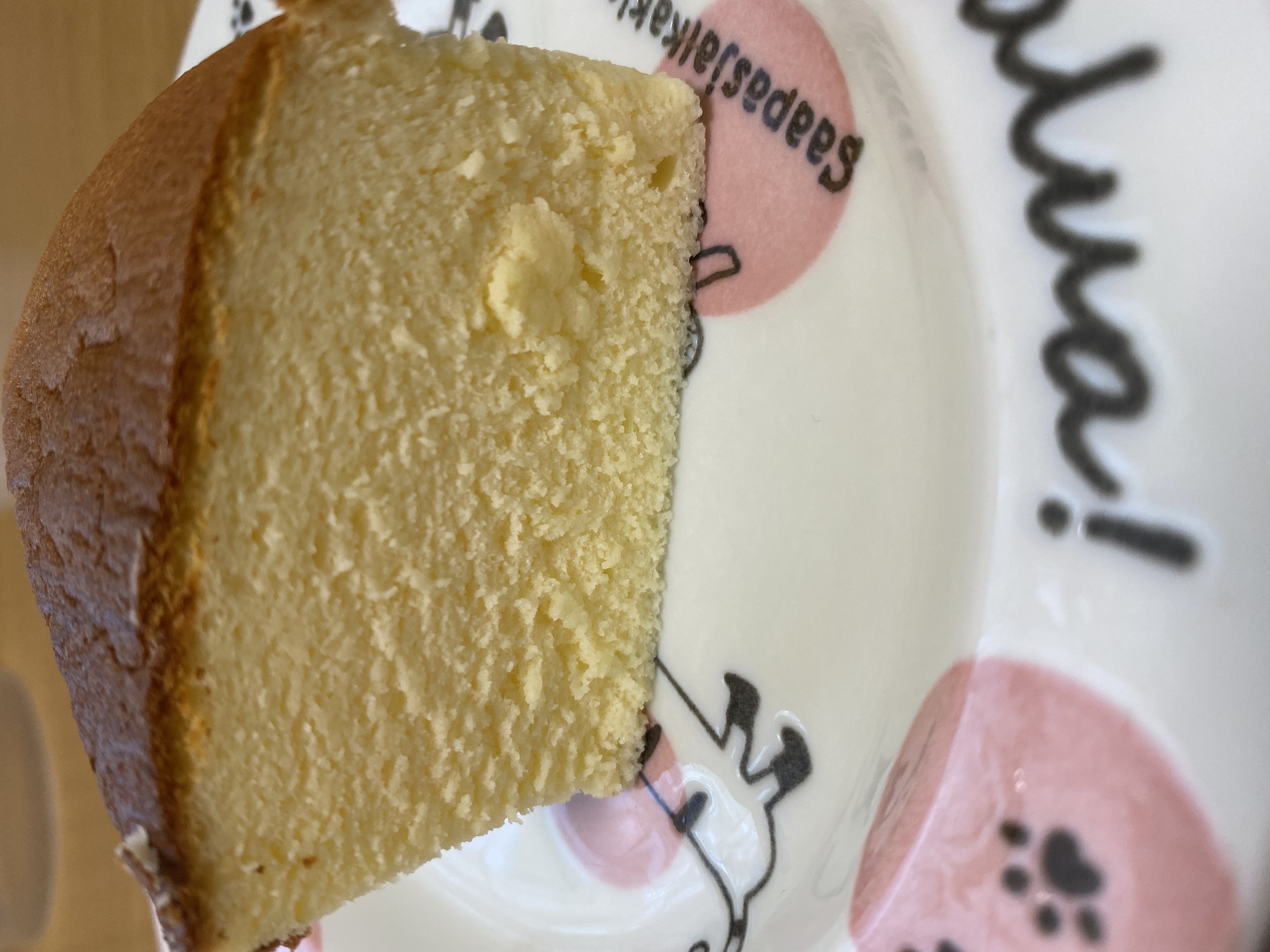 スフレとあったので、生地にスポンジ状の気泡が見えているかと思っていたのですが、その断面はなんと滑らかな、均一の、しっかりとした、でもフアフアの、キメの細かい仕上がりになっています。これって、米粉だからできることなのかもしれません。