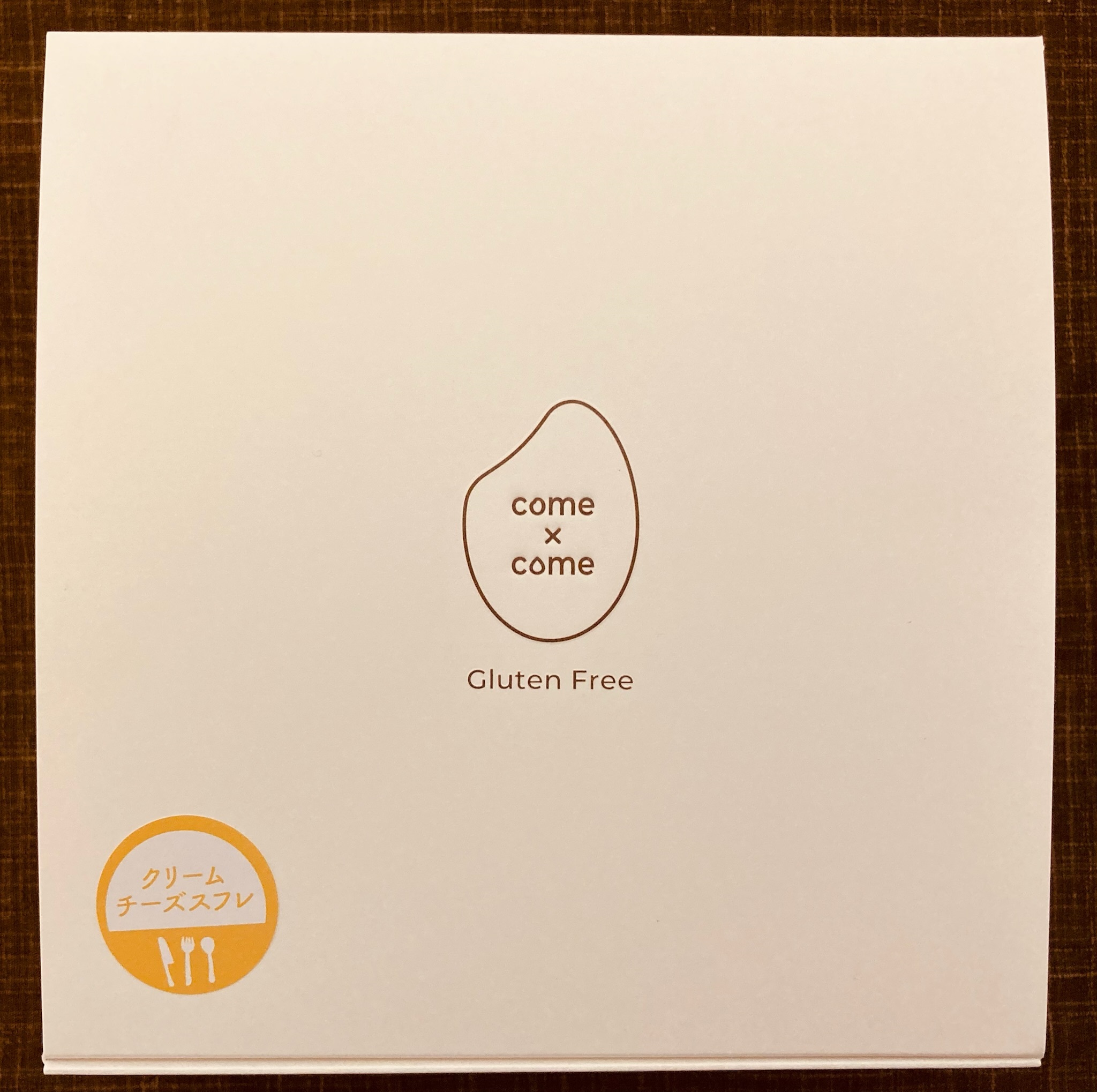 白を基調としたシンプルで清潔感のある箱にグルテンフリーの文字とケーキの名称。