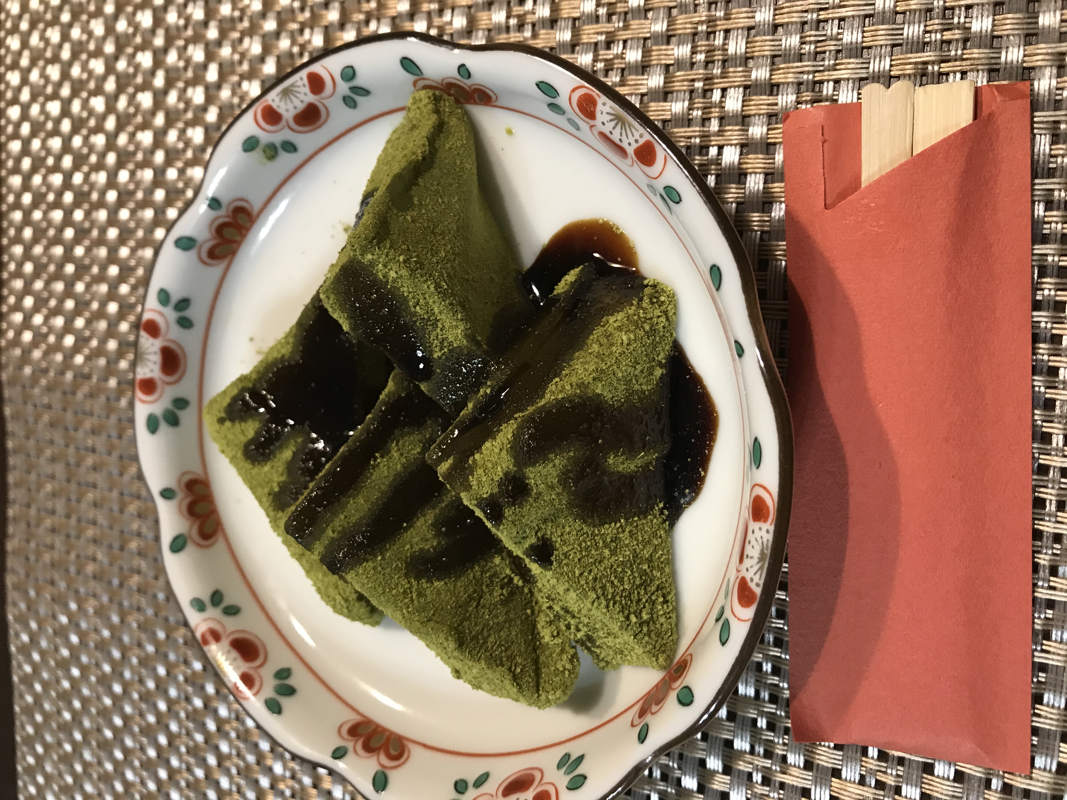 抹茶きな粉のほうは色が鮮やかな黄緑で見た目が綺麗でした!抹茶きな粉のわらび餅は冷やして頂きました。もっちりとした弾力を口の中で楽しんでいるとすぐに溶ろけてなくなるくらいとろっとろです!
