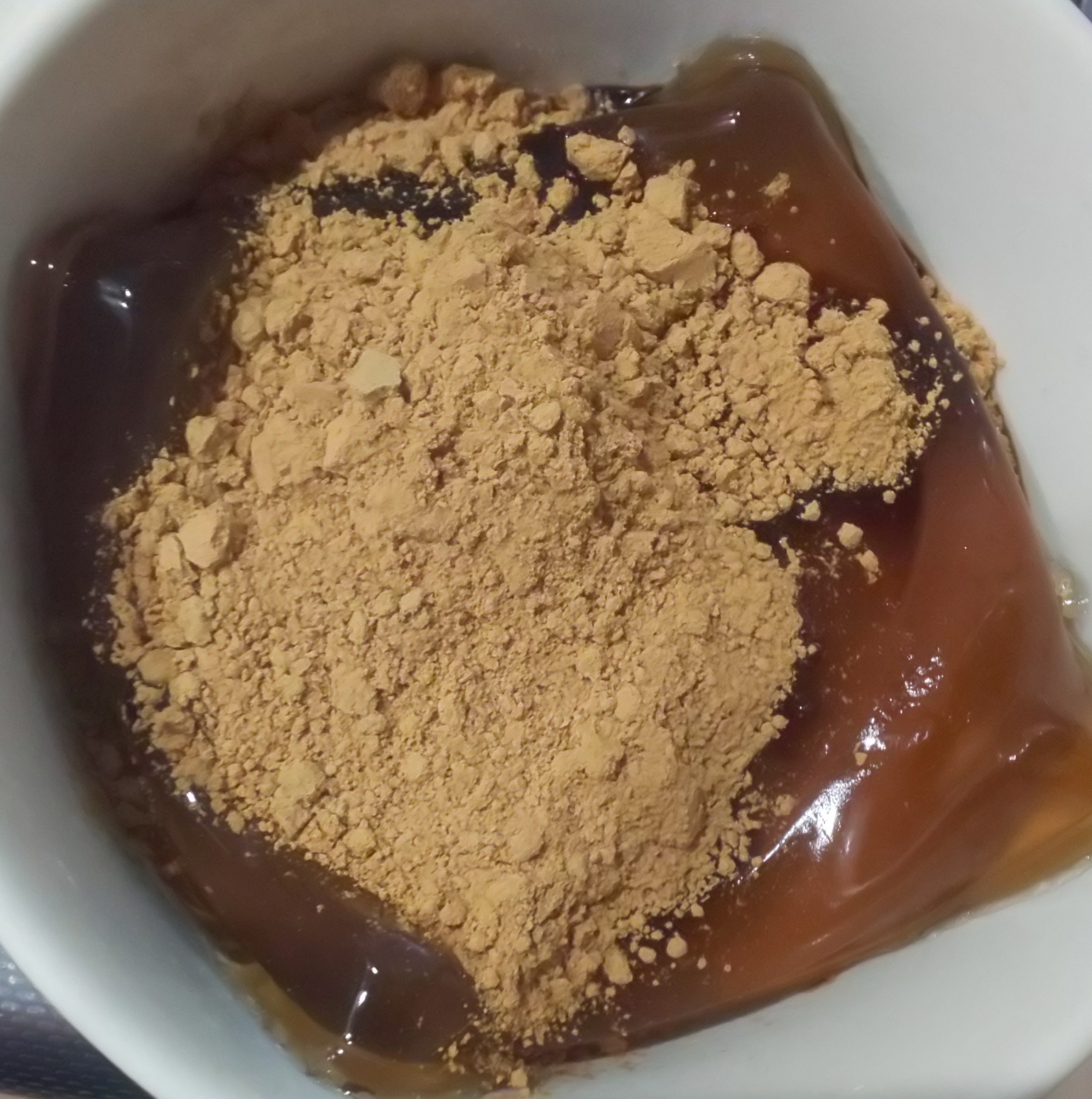 お好みで冷やしてもホットにしてもいいとありますが、常温で黒糖きな粉のわらび餅をいただきます。