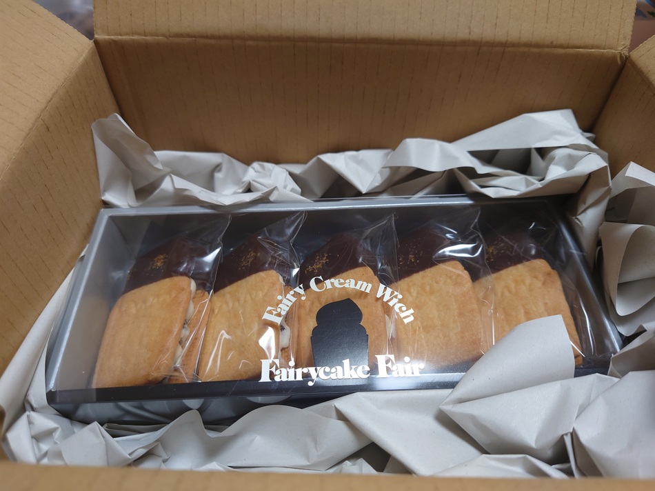 添えられているメッセージも全てに“可愛い”が詰まったフェアリーケーキフェアさんの『フェアリークリームウィッチ レーズン生バターサンド』。