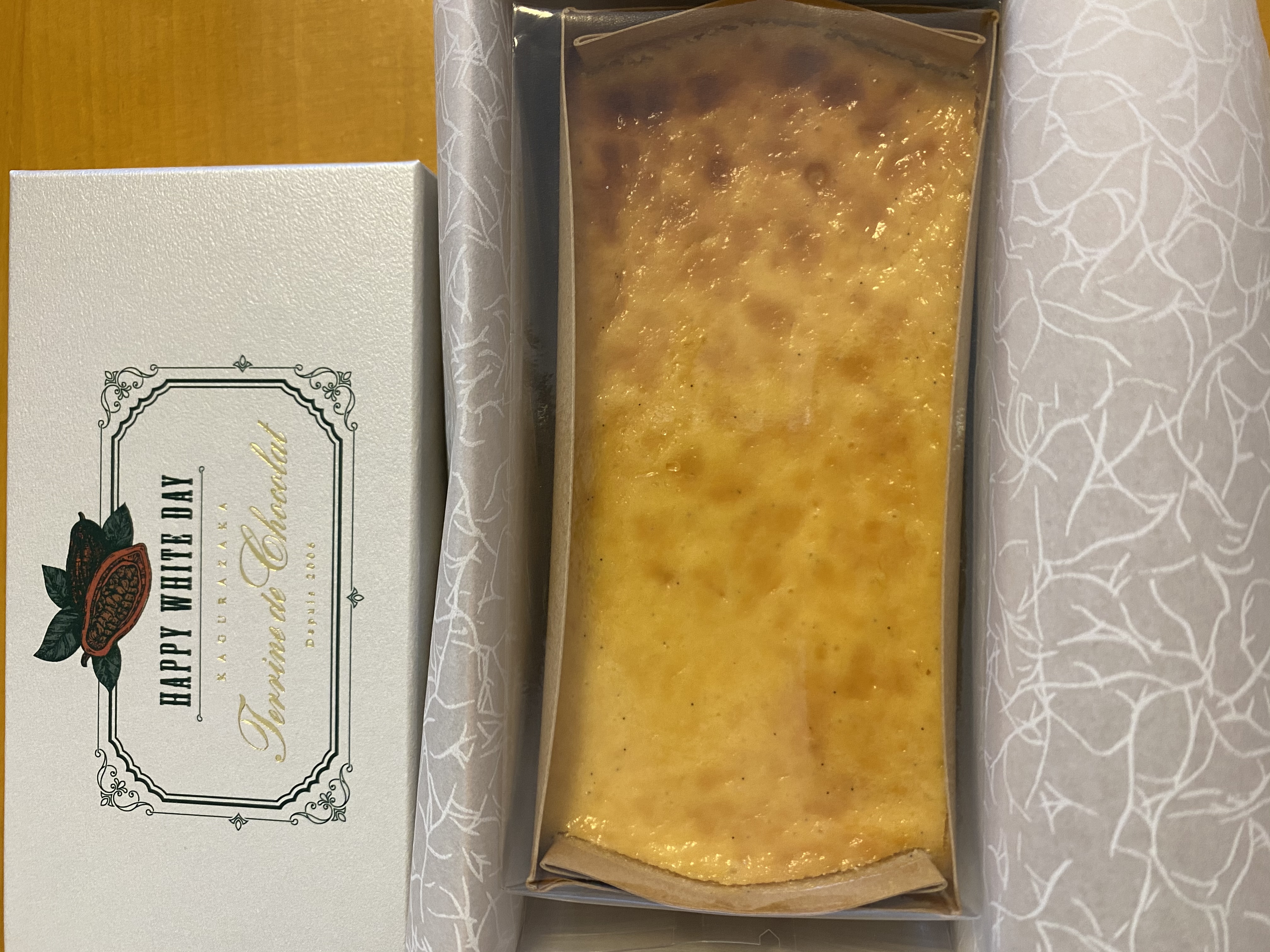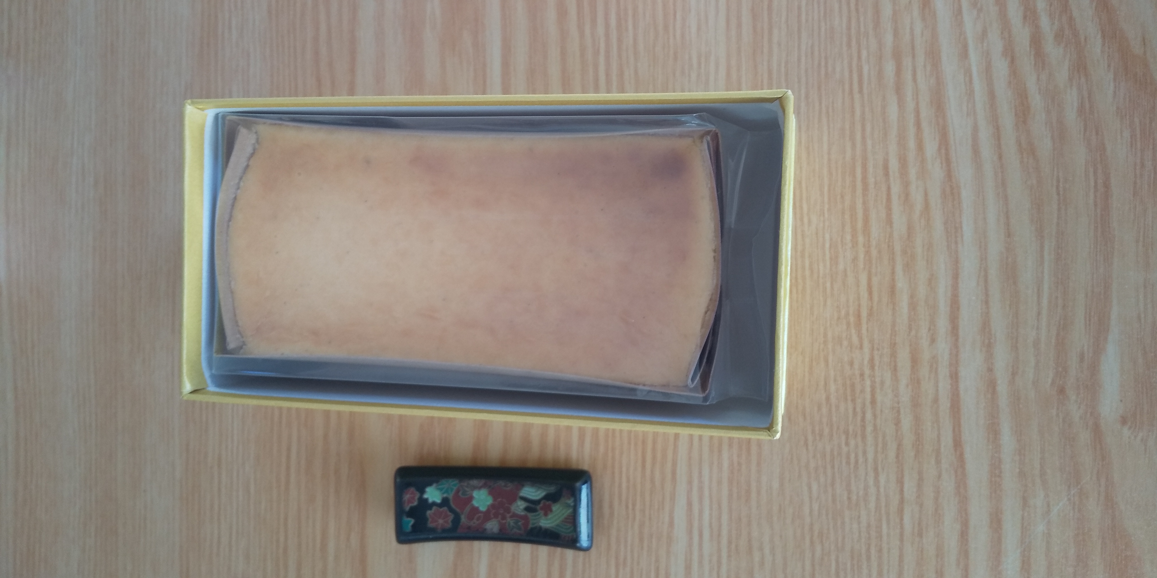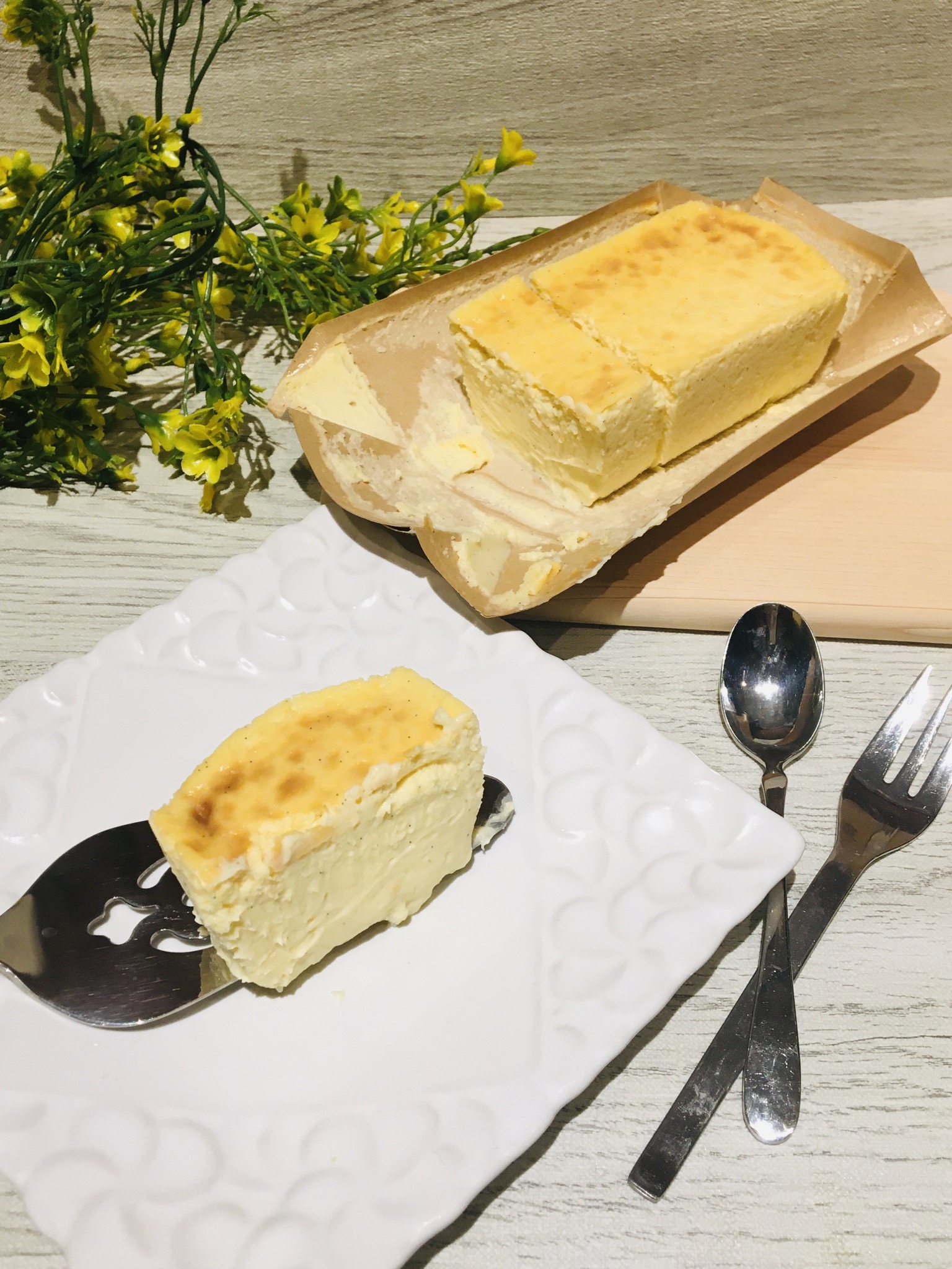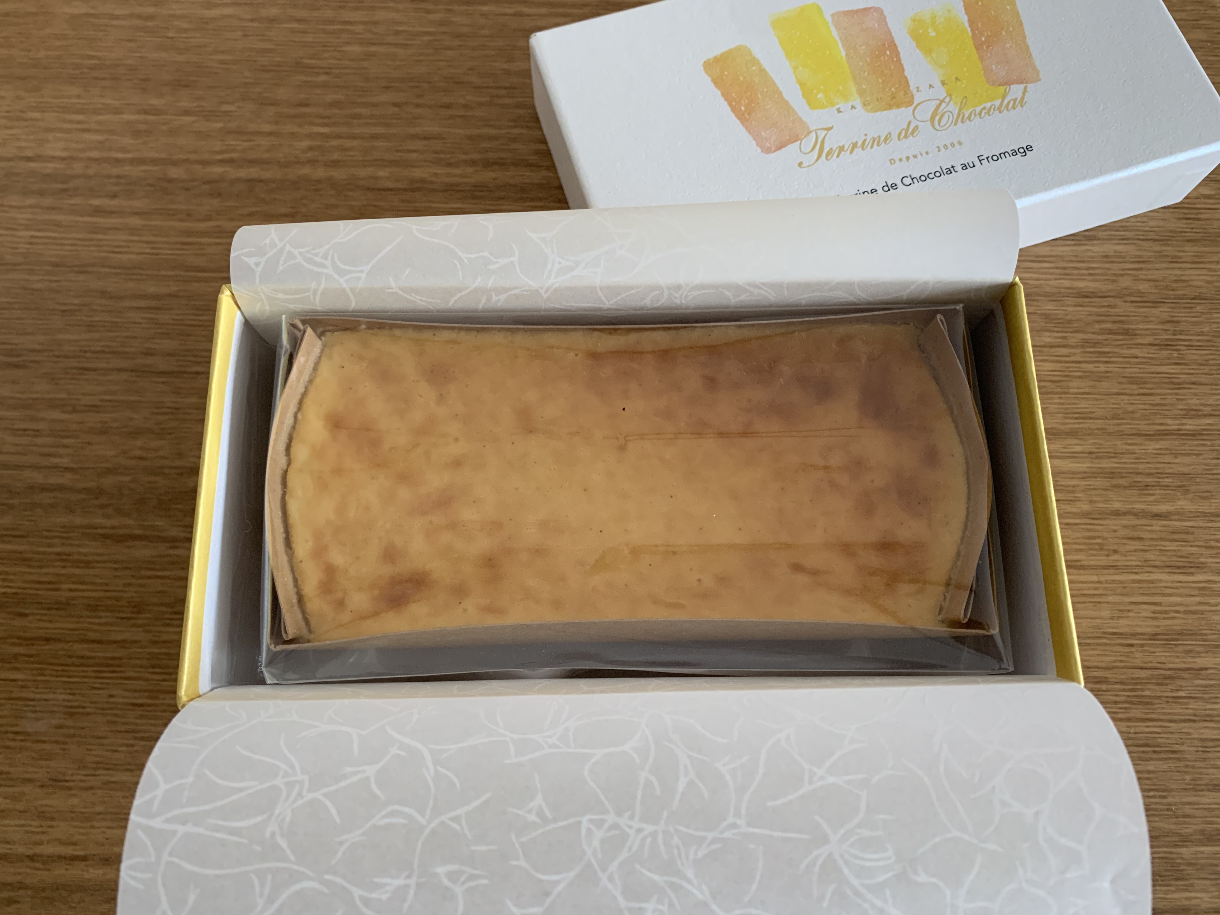 しっかりとした箱を開けてみると綺麗なチーズケーキが! (小さめに見えますが、満足感あるので十分!)食べてみると酸味があり、さっぱりしています。なんと言っても口の中でトロッと溶ける感覚がわかるほどの滑らかさに驚きました! 表面はベイクドチーズケーキに見えますが、中はレアチーズのように濃厚!感動しました!