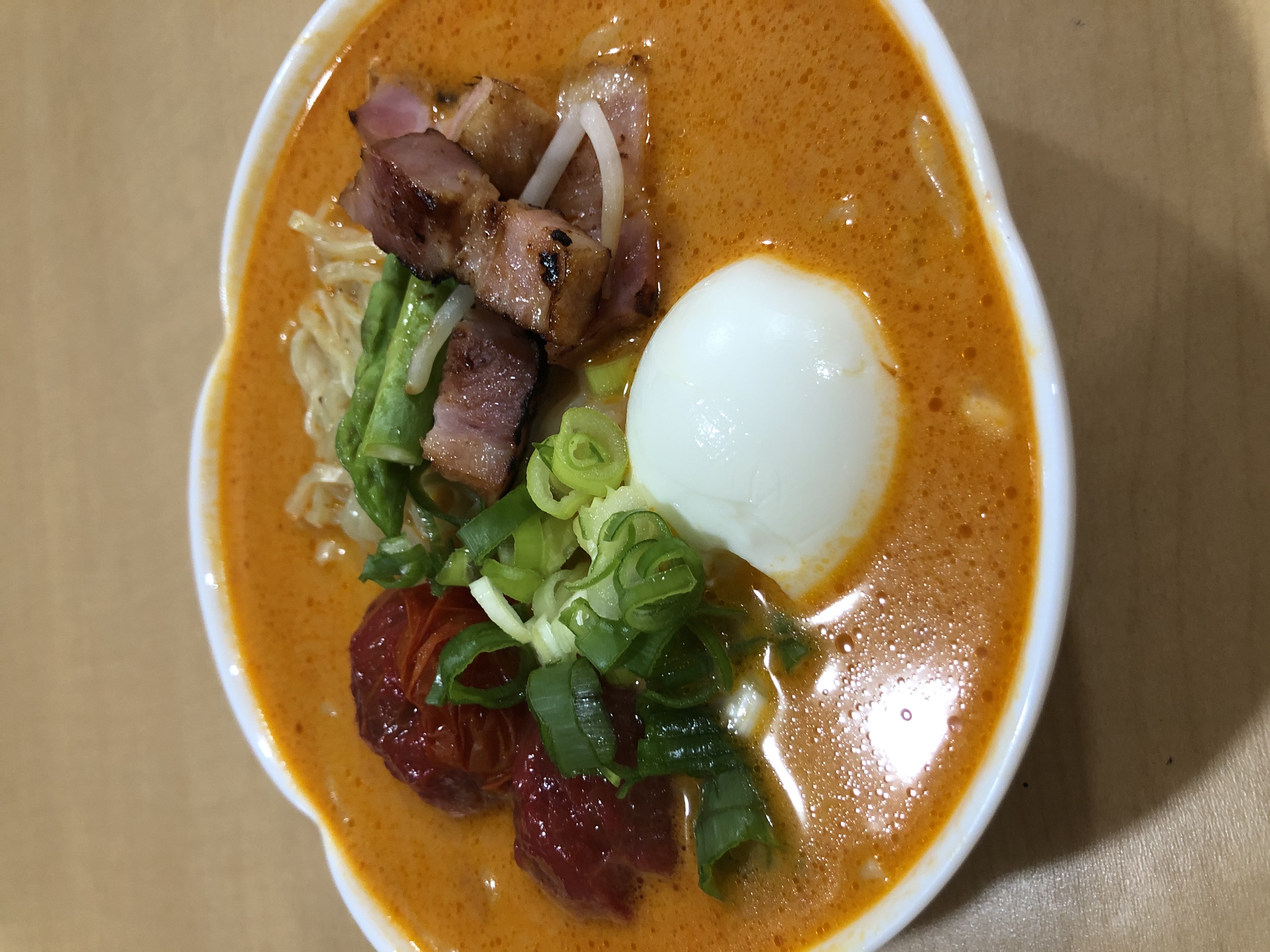 豚骨ラーメンは、結構こってり系でした。豚骨の臭みはなかったです。細麺で食べやすかったです。コクがあるけど、しめのラーメンでも食べれる感じでした。