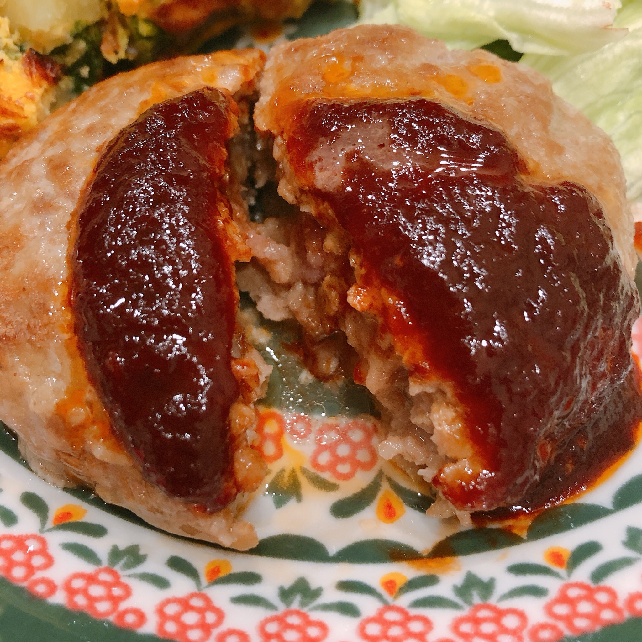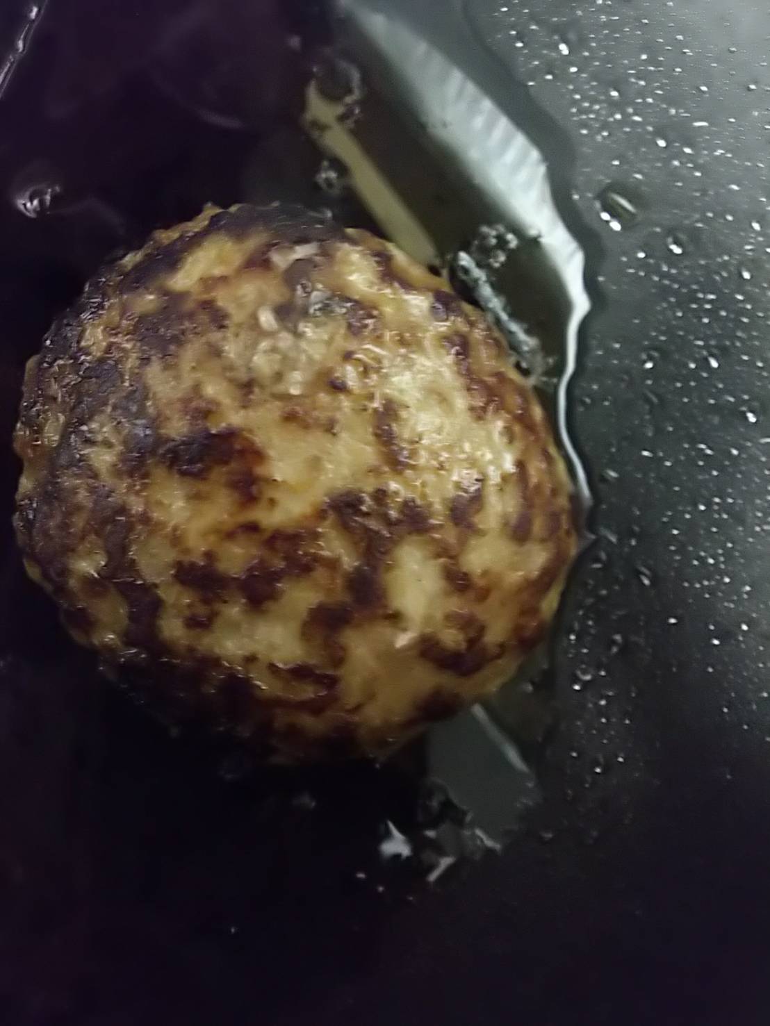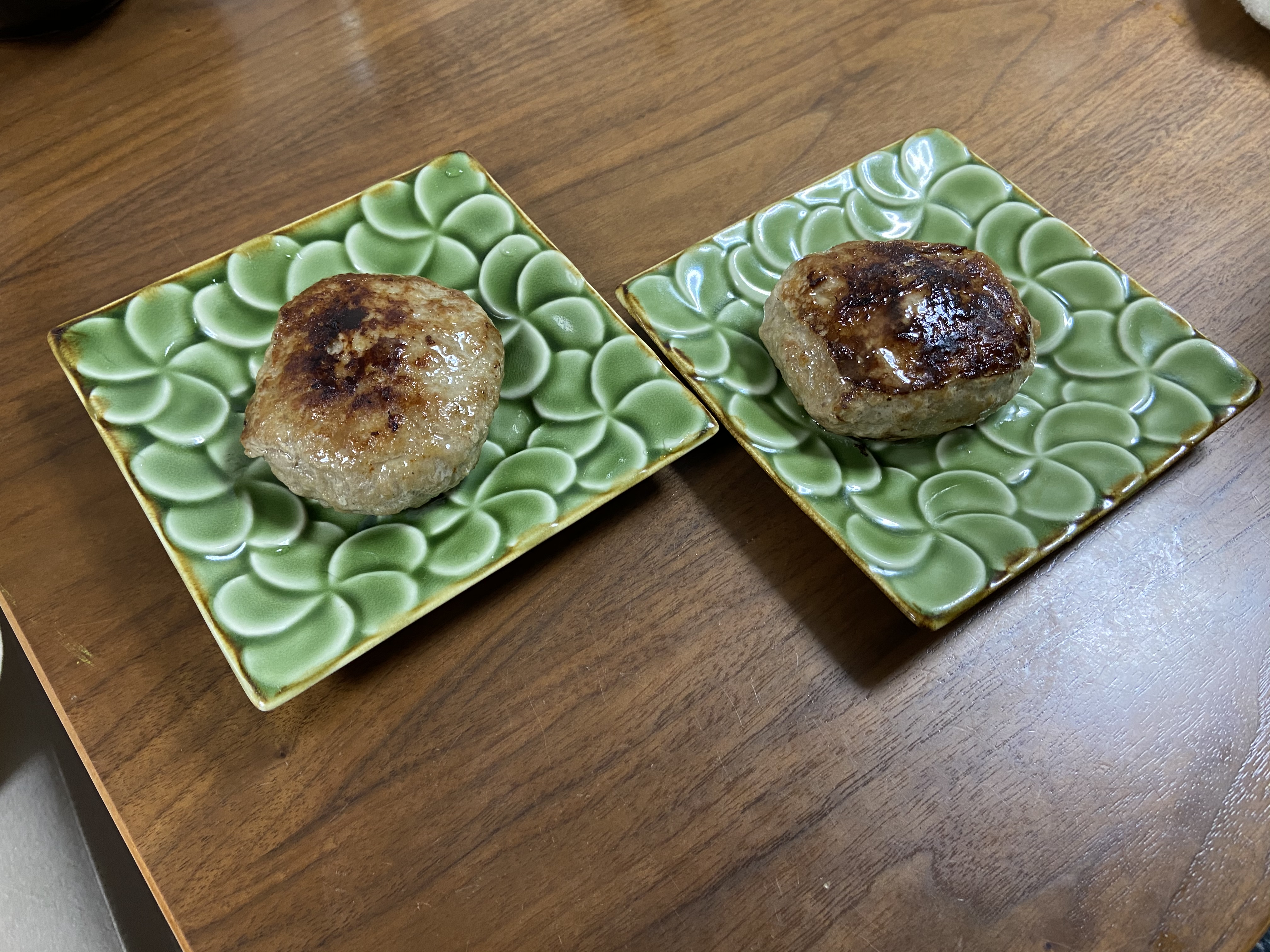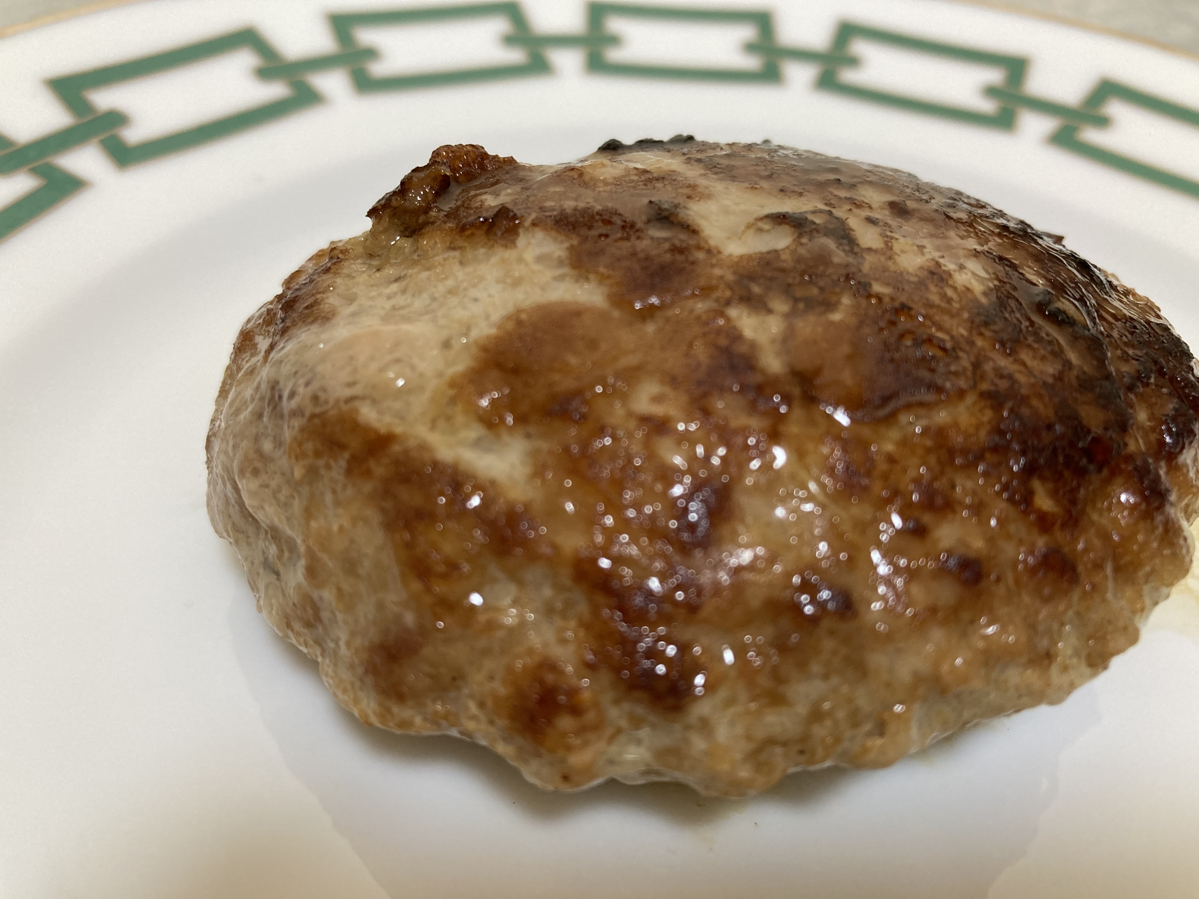 ぺったんこだったハンバーグが焼き上がりのときはまんまるに。