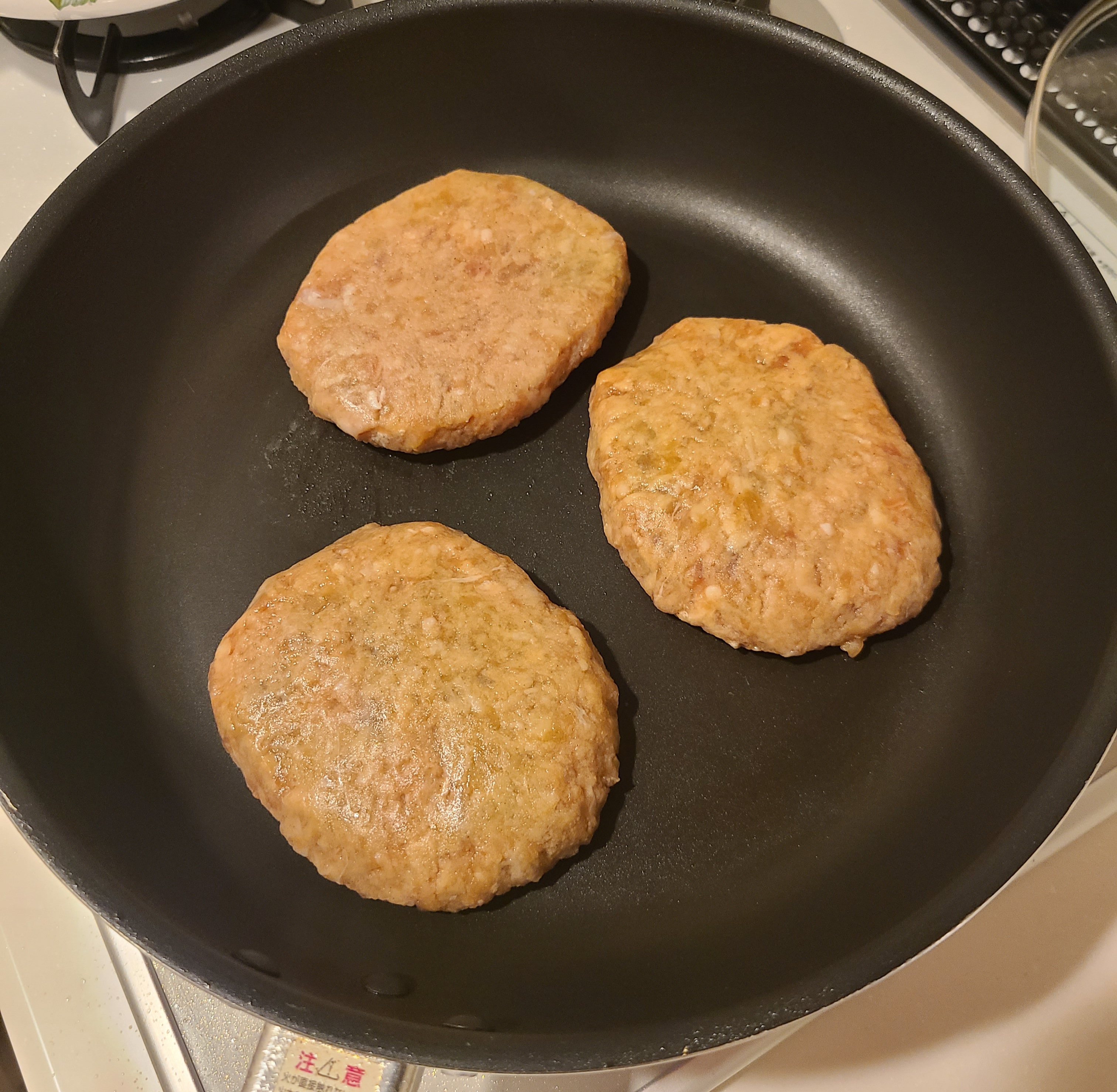 「これが薫格ハンバーグか!」と感心しつつ良い薫りにつつまれながら、両面5分ずつ焼きました。