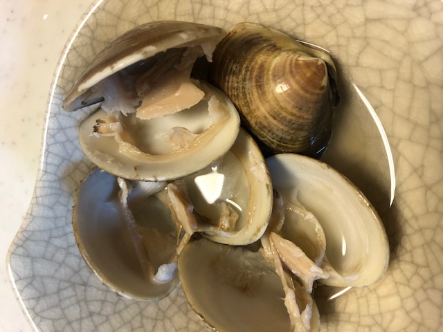 白菜、人参、えのき、しめじ、豚バラ、豚つみれ、椎茸、白ネギ、糸コン、はまぐり、わかめ、ボトルに入った生姜と実に具沢山です。加えて蜂蜜などで甘味をつけた美味しい醤油ベースのお出汁がついてきました。