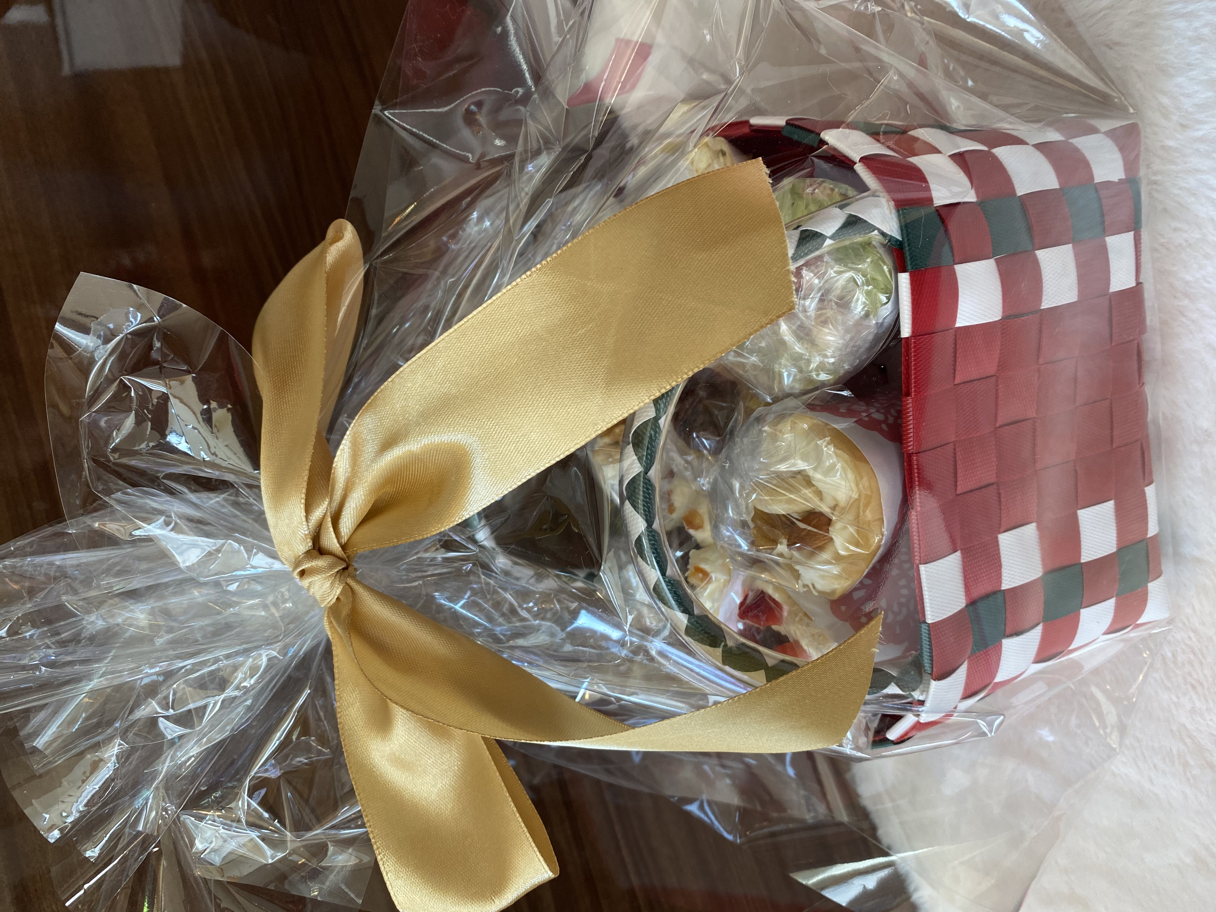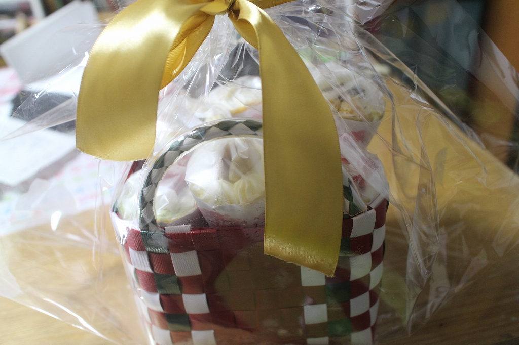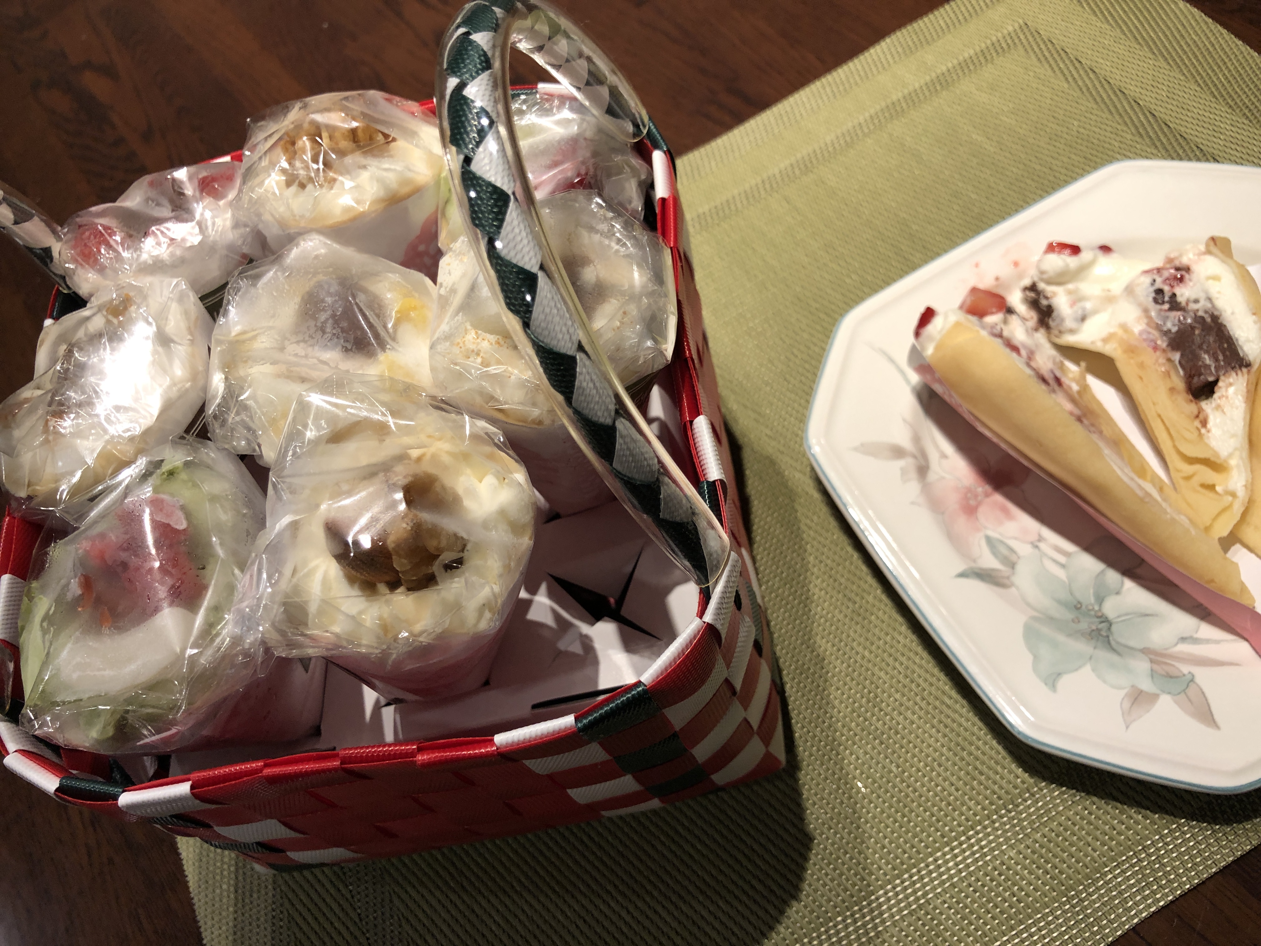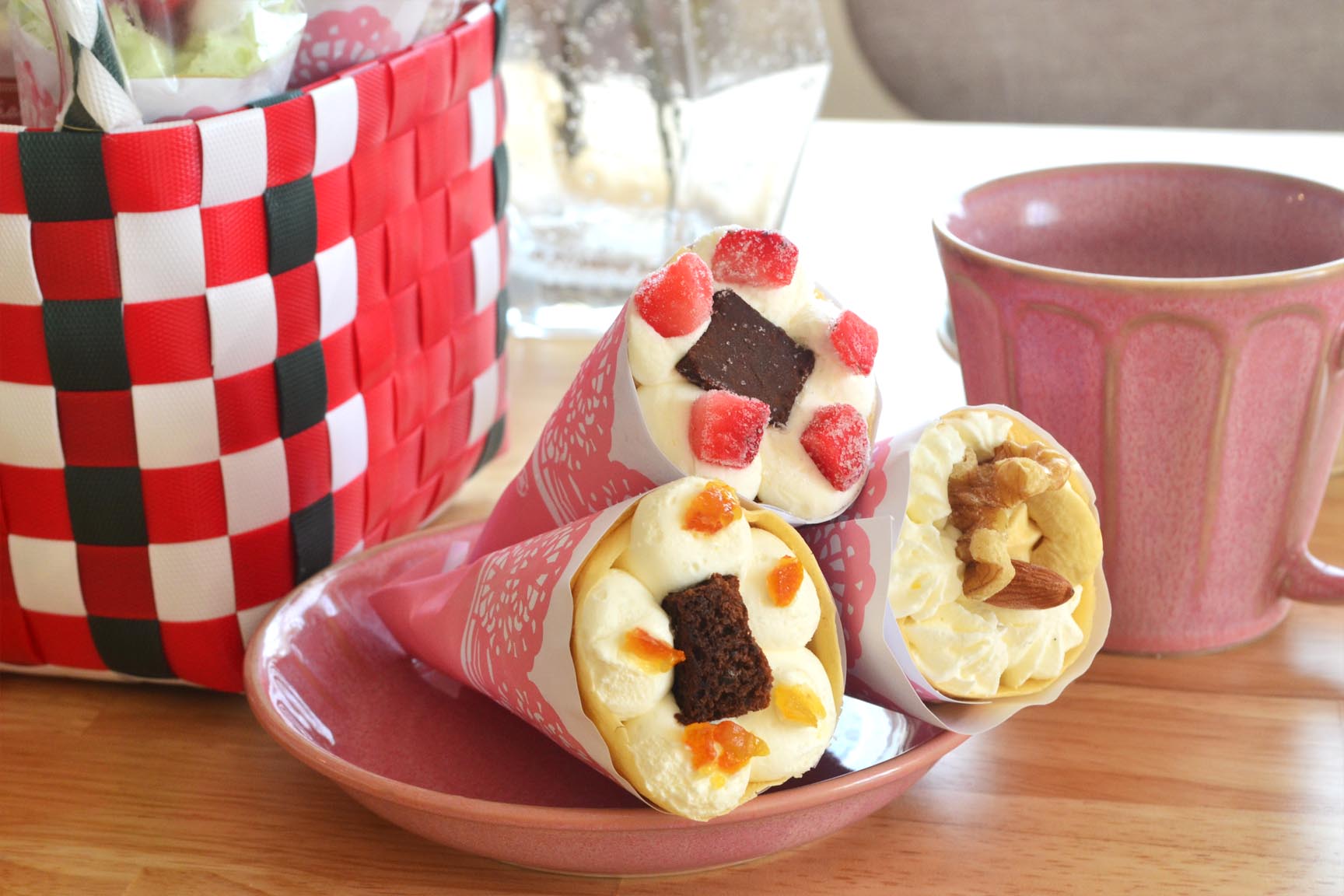 赤いリボンにかけられた、カゴ入りのクレープに心躍りました。