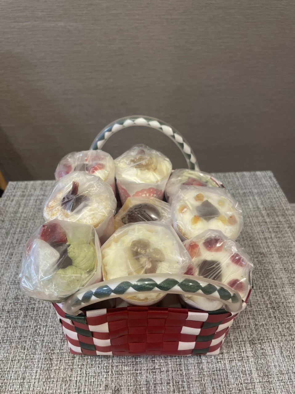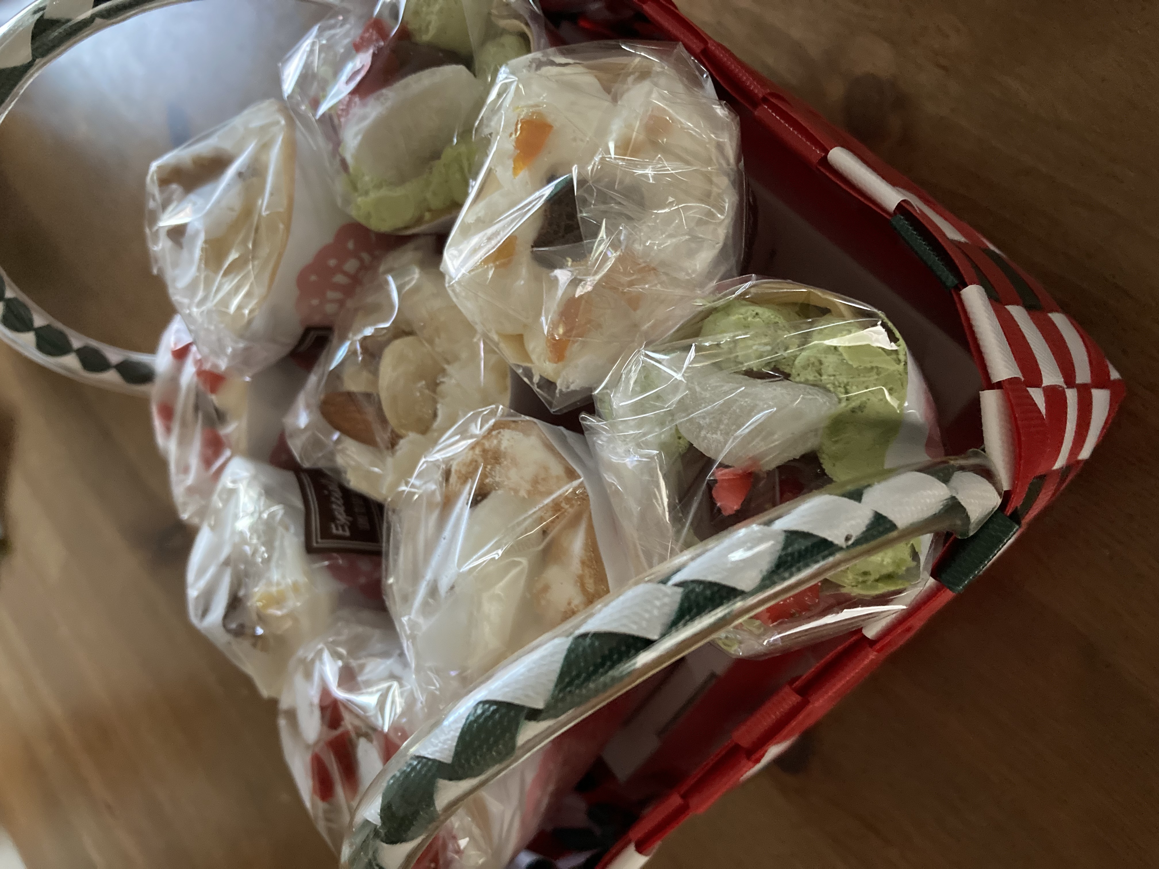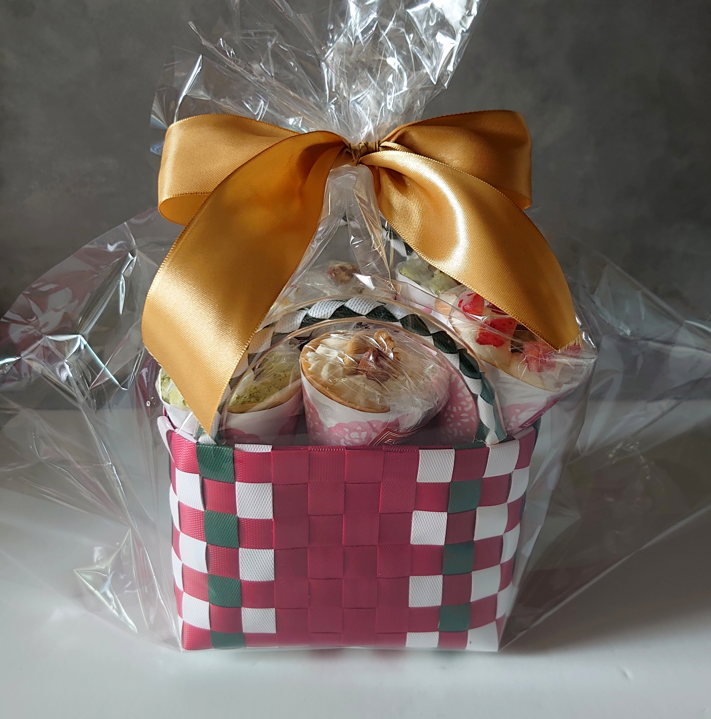 赤いリボンにかけられた、カゴ入りのクレープに心躍りました。