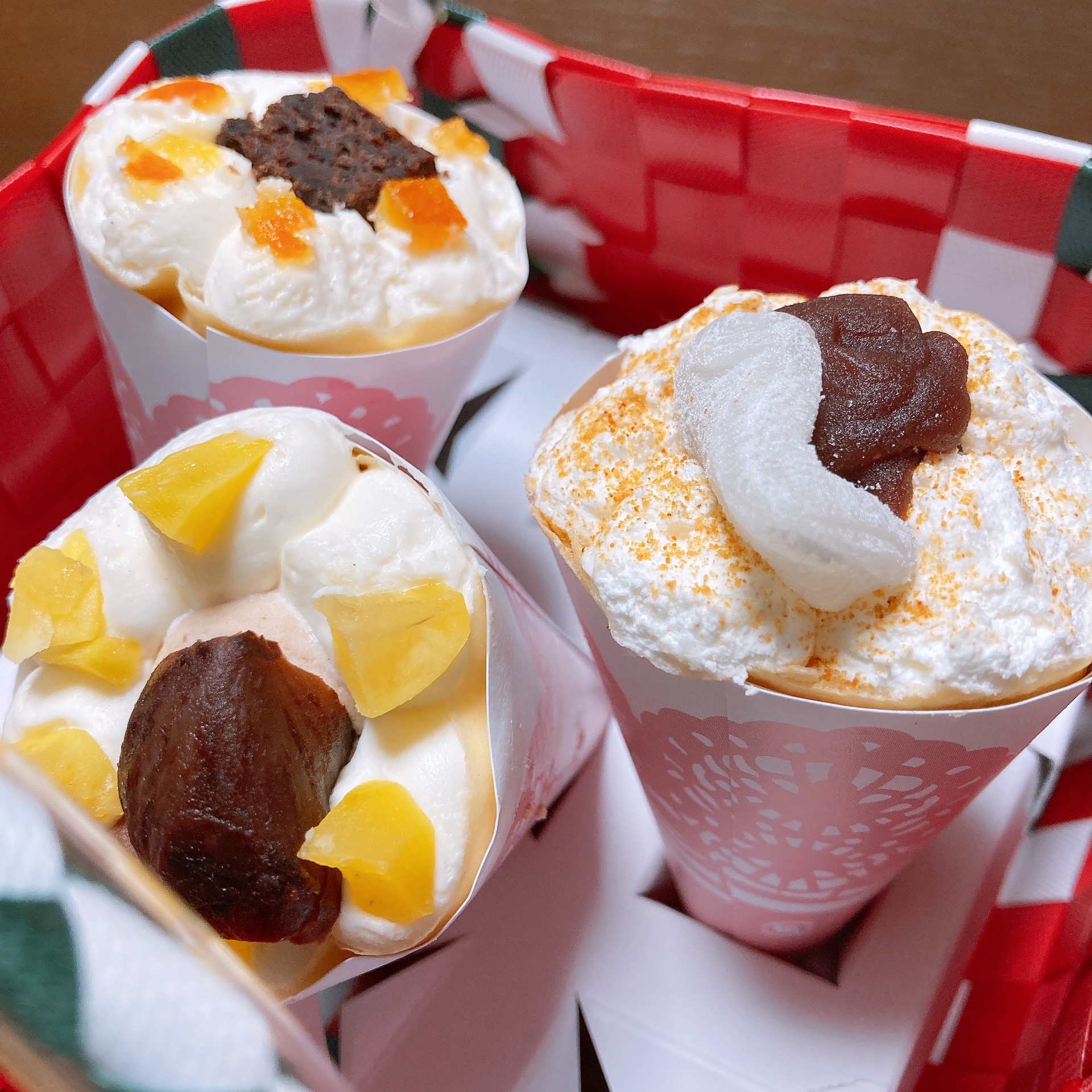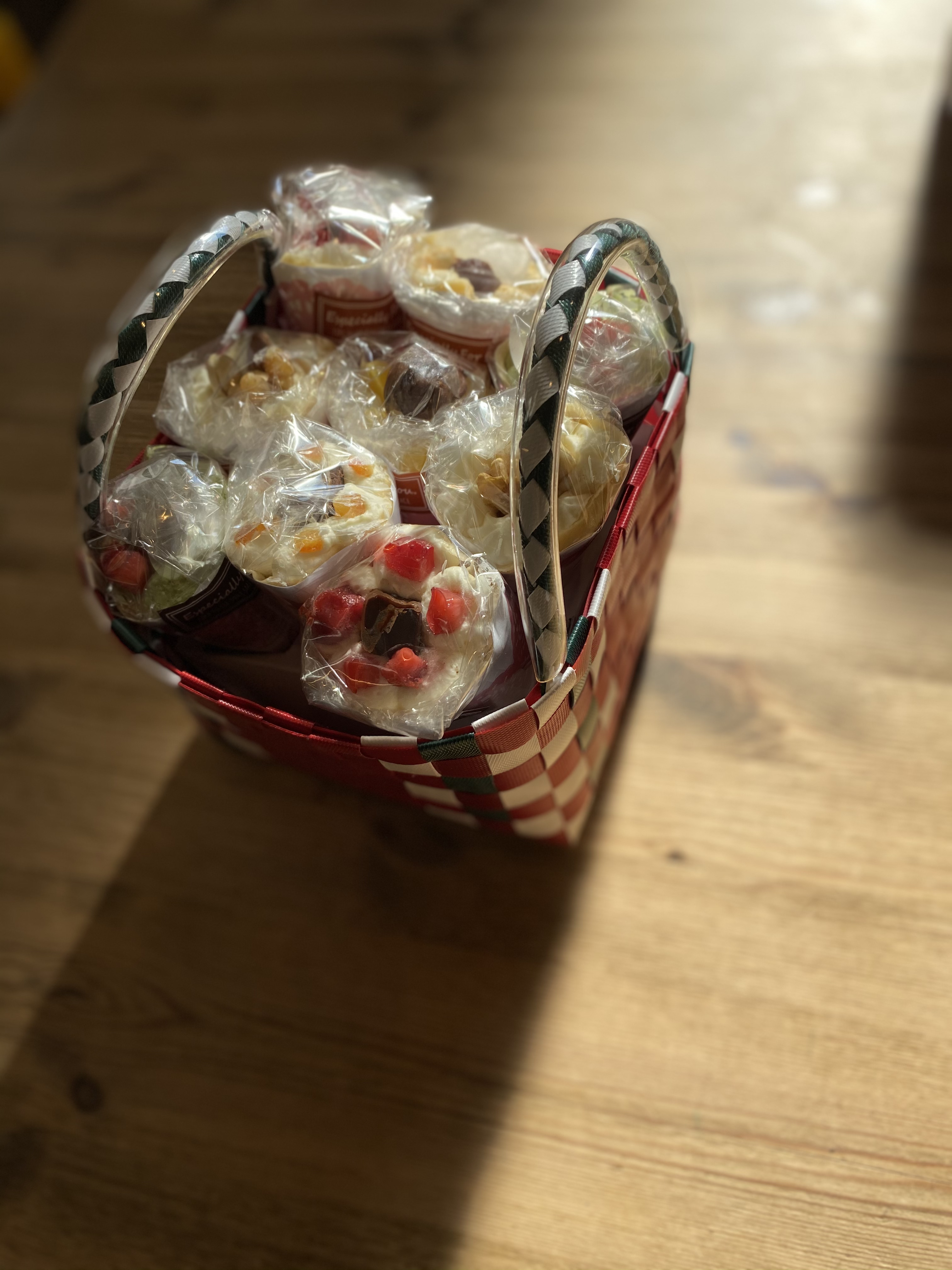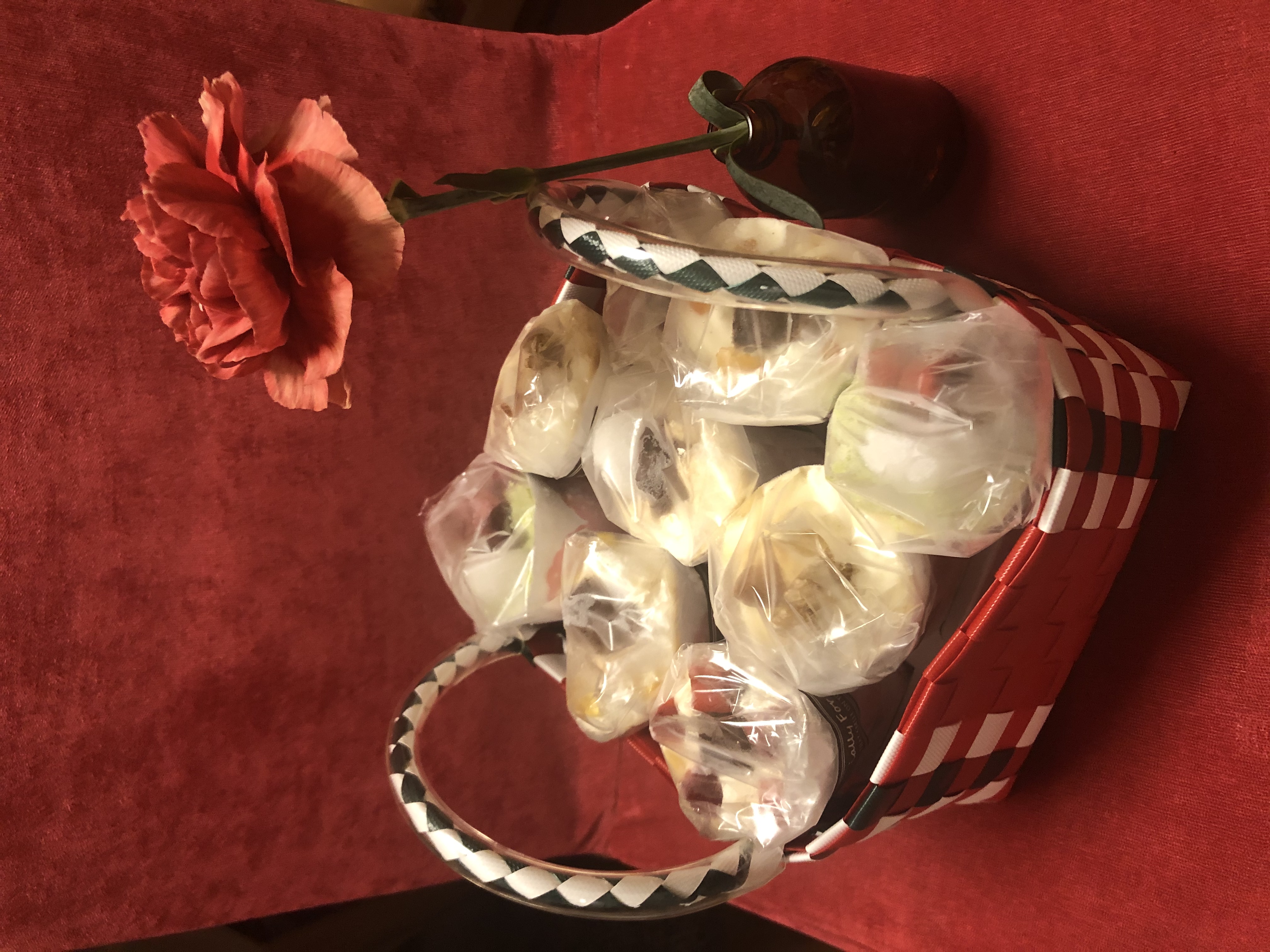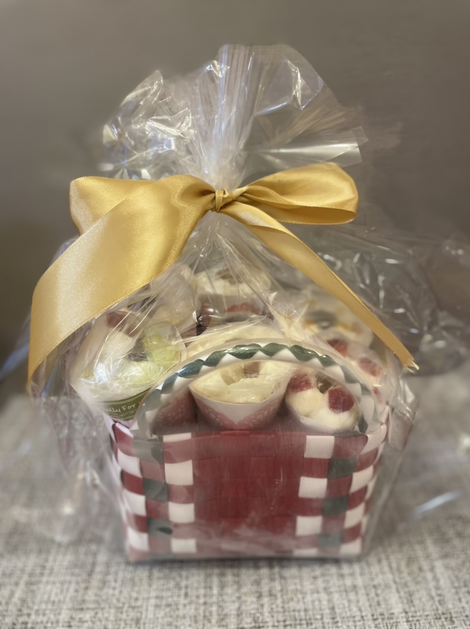 赤いリボンにかけられた、カゴ入りのクレープに心躍りました。