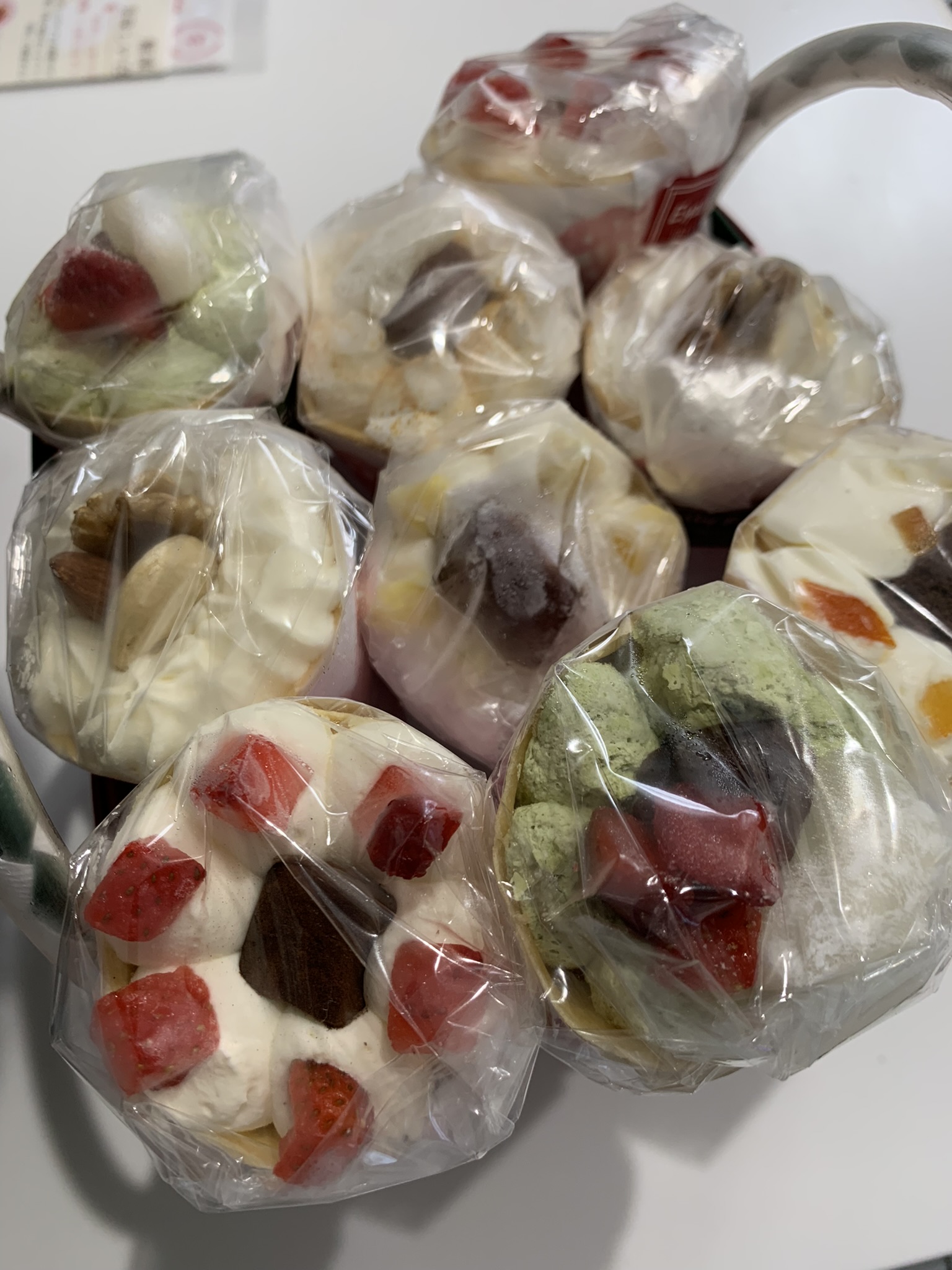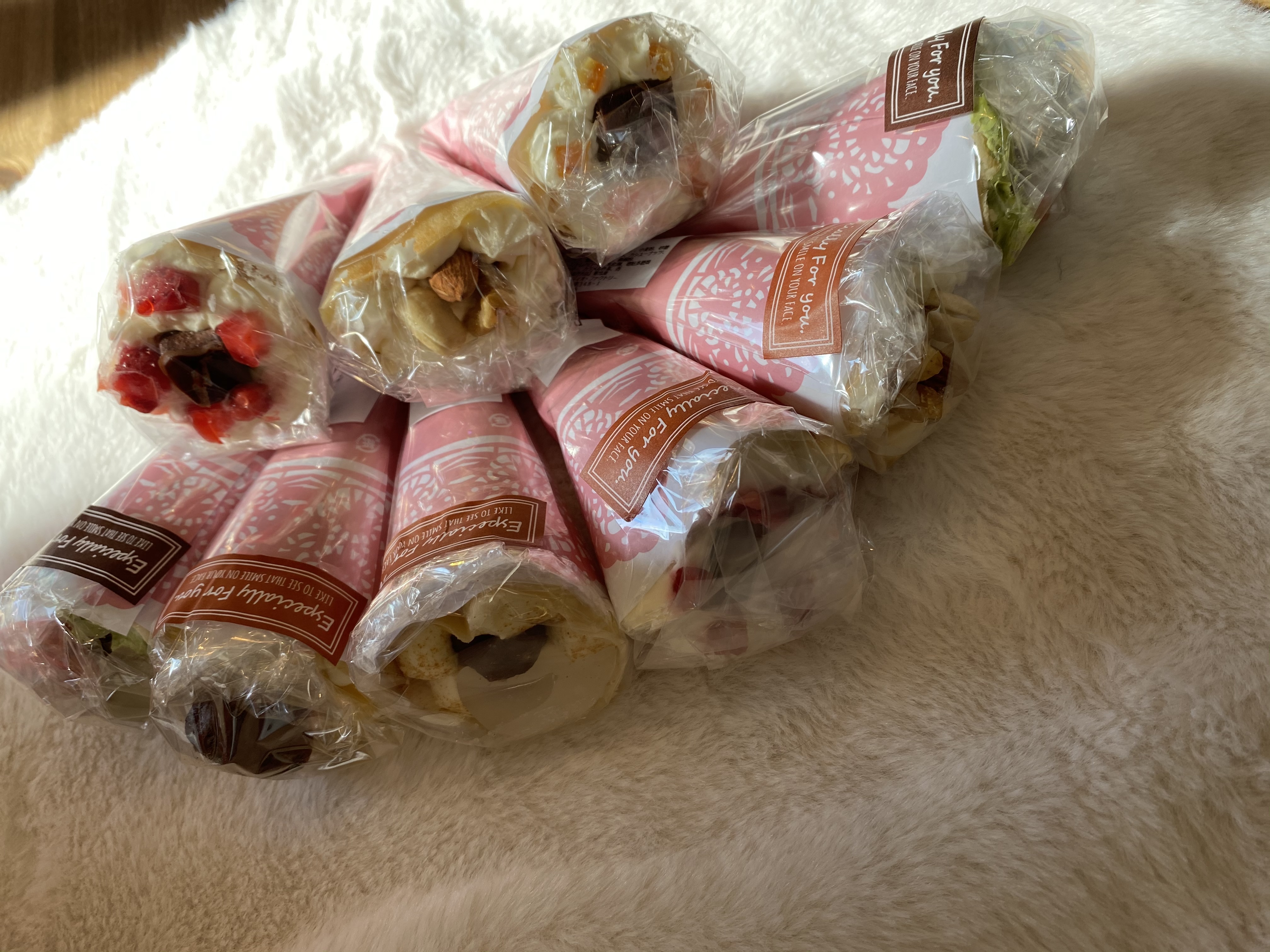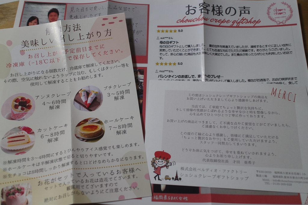とても丁寧に梱包されており、ラッピングもクレープも全く崩れていなかったので驚きました。