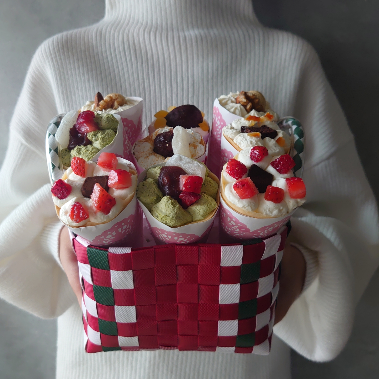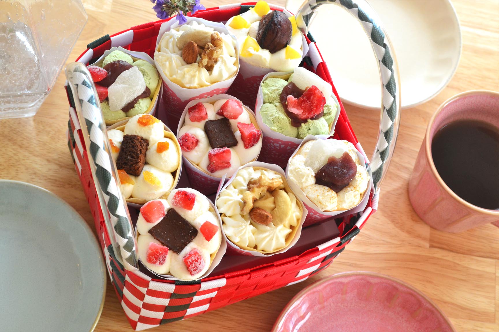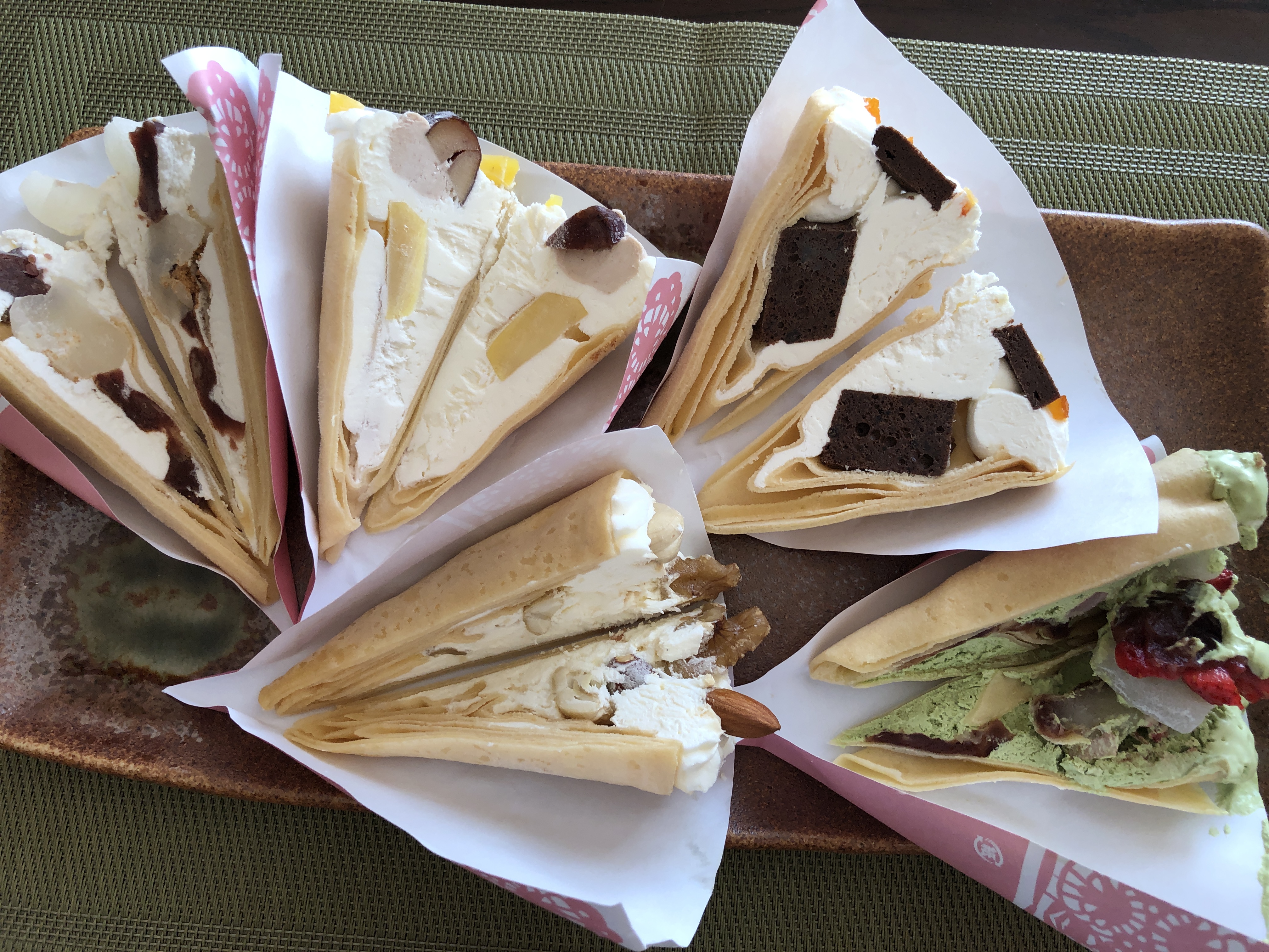 花束のようにカゴに詰められた6種類のクレープがとても可愛らしくて、見ただけでも幸せな気持ちにしてくれます。