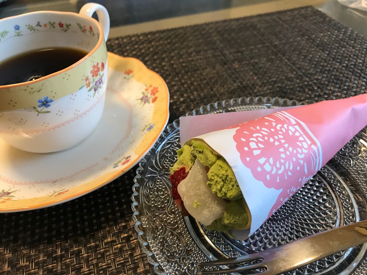抹茶クリームがなかなか本格的で(ちゃんと抹茶の風味と苦味が楽しめます)、あんことおもち、いちごとの相性抜群。おもちはかたくなく、柔らかいです。食べ進めると、クレープの中にもおもちを発見してラッキーな気持ちになりました。