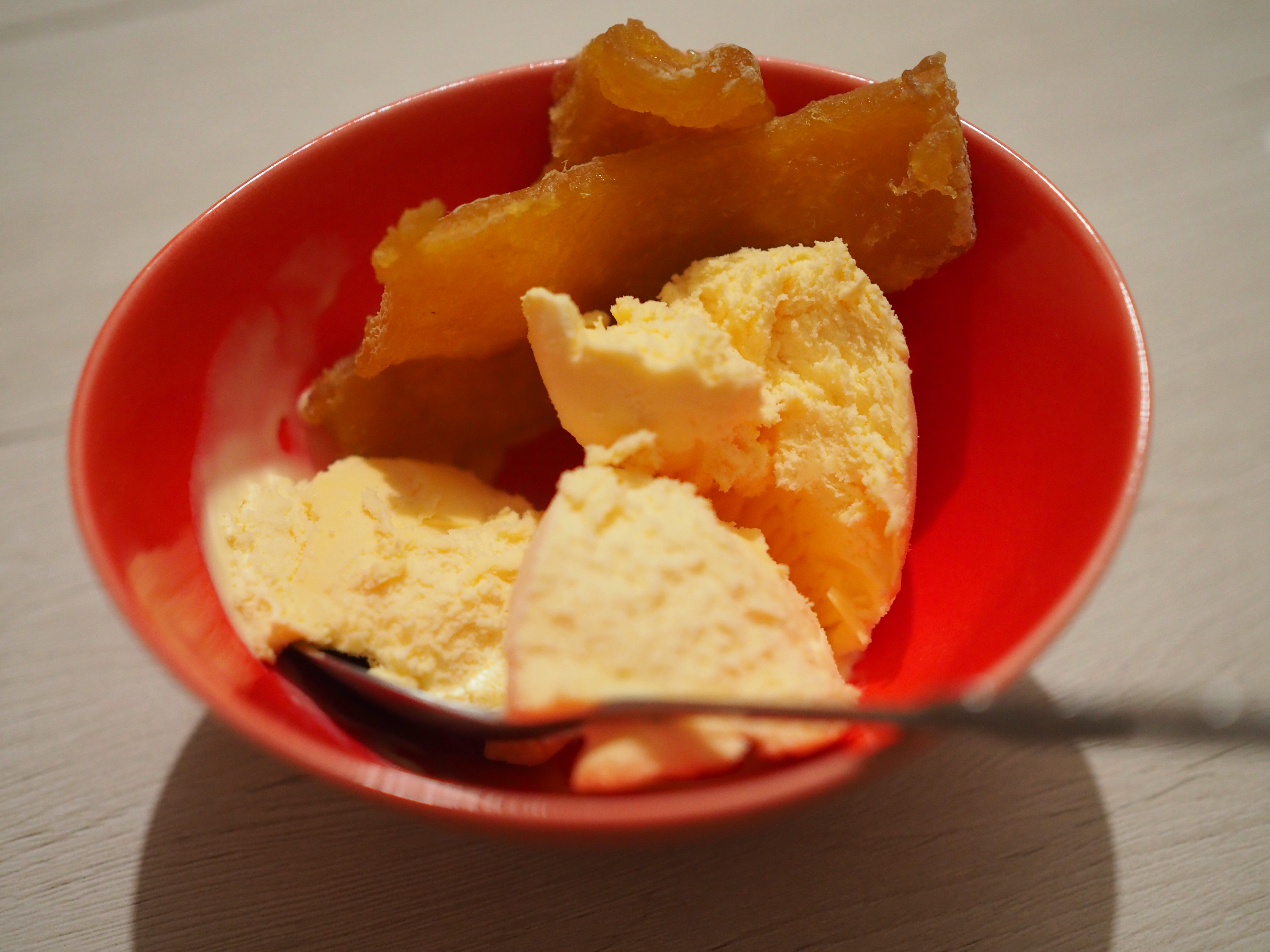 ・温めた干し芋にバニラアイスをのせるこれ、めちゃくちゃおいしいです。