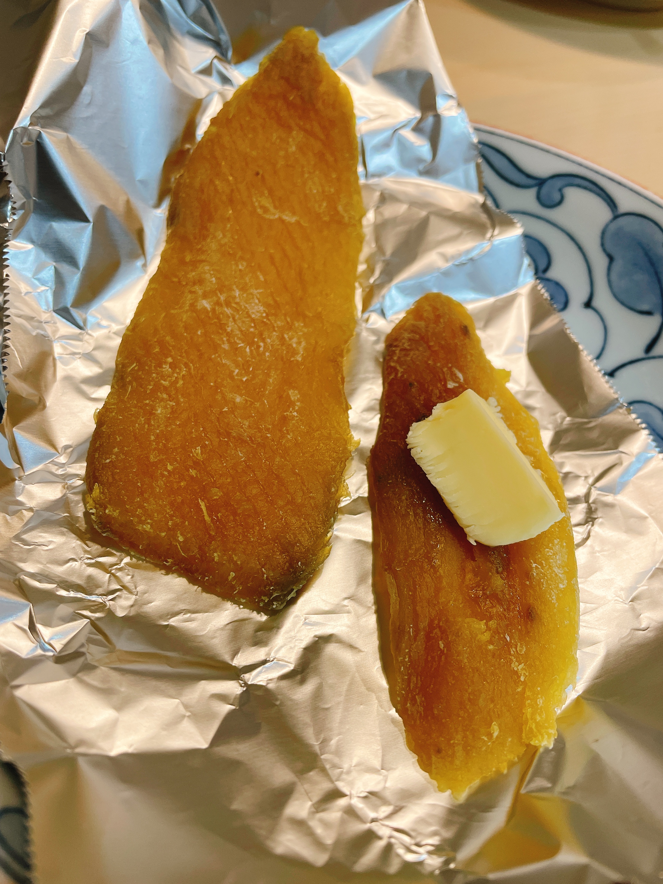 ・トースターで2分(お好みで調整)温めるホクホク食感になって、香ばしさもでて美味しい。焼き芋が好きな方はぜひ。