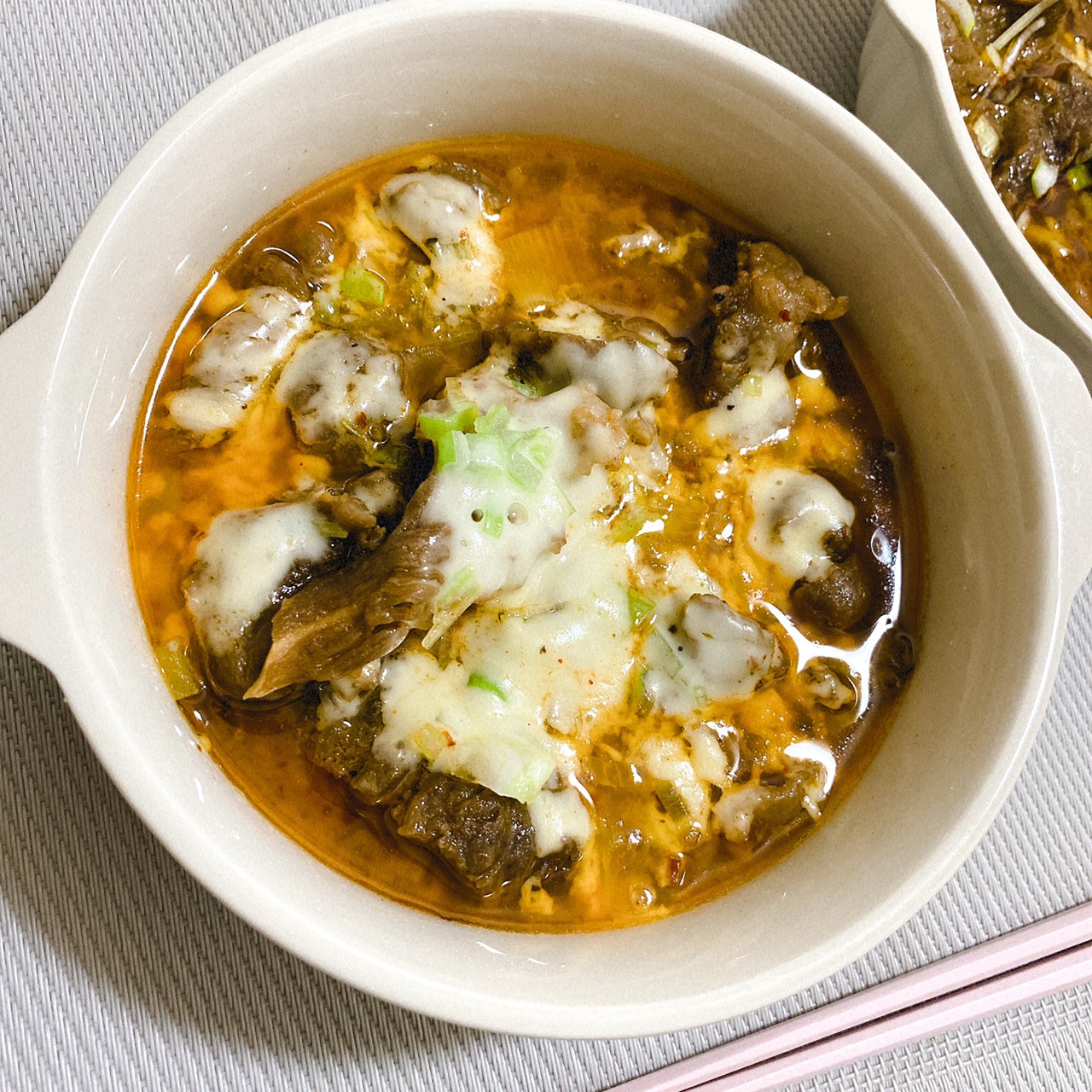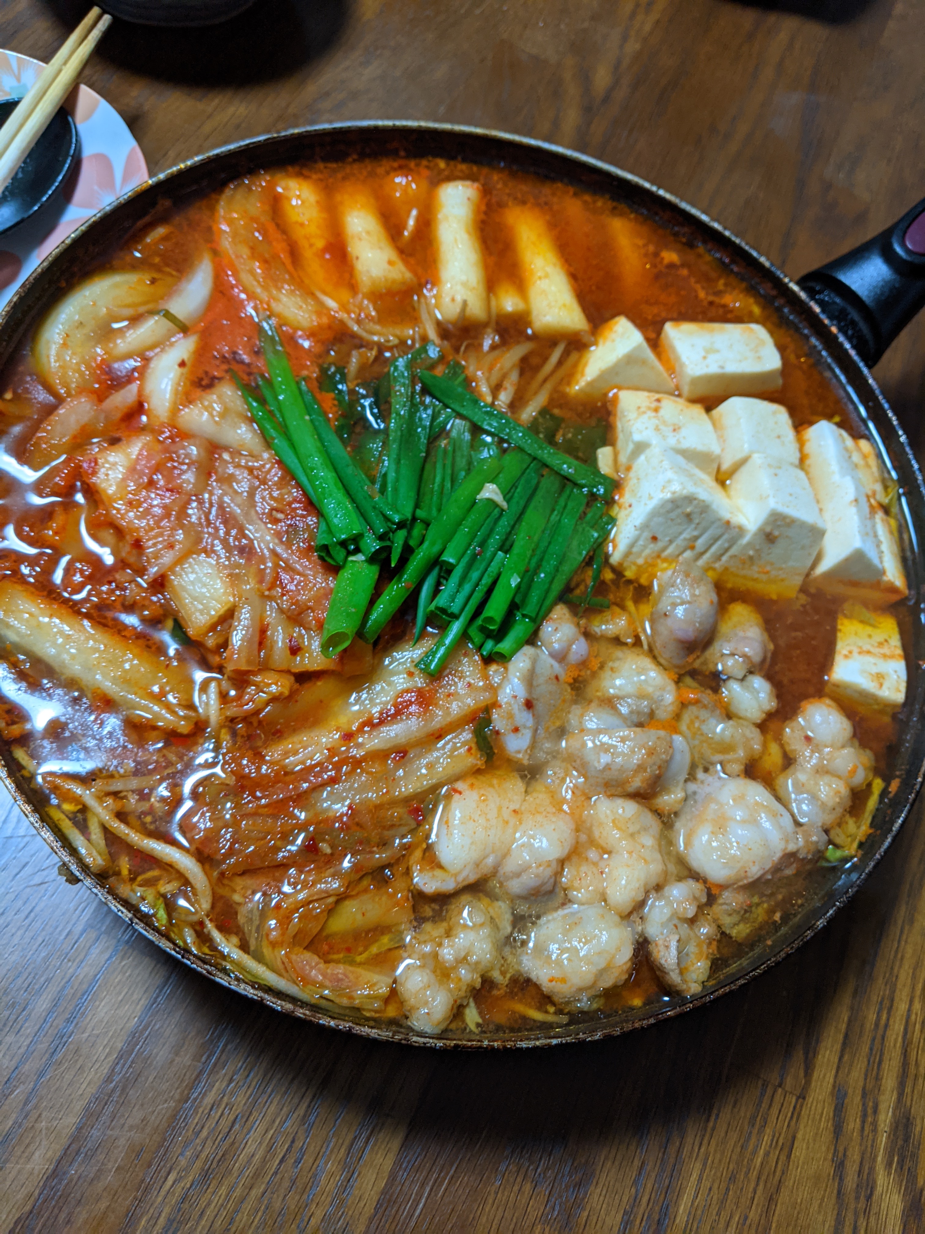 お鍋は真っ赤でとても辛そうに見えたのですが、スープを飲むと和牛もつの脂と野菜からの甘みがコチュジャンたれと混ざって旨みになりマイルドで辛さは少なめかな?と思いました。でも本格的な香りやコクがあり美味しくて家族でどんどん箸が止まらなくなりお野菜や豆腐もおかわりして食べました。たまに食べるトッポギやキムチの白菜のシャキシャキ感も最高です。ぷりぷりもつもたくさん入っているのですが脂はのっているのにしつこくないので美味しくて気づくとあっという間に無くなり、今回は市販の冷凍うどんを足して〆として楽しみました。説明書のおすすめのご飯も捨てがたかったです。