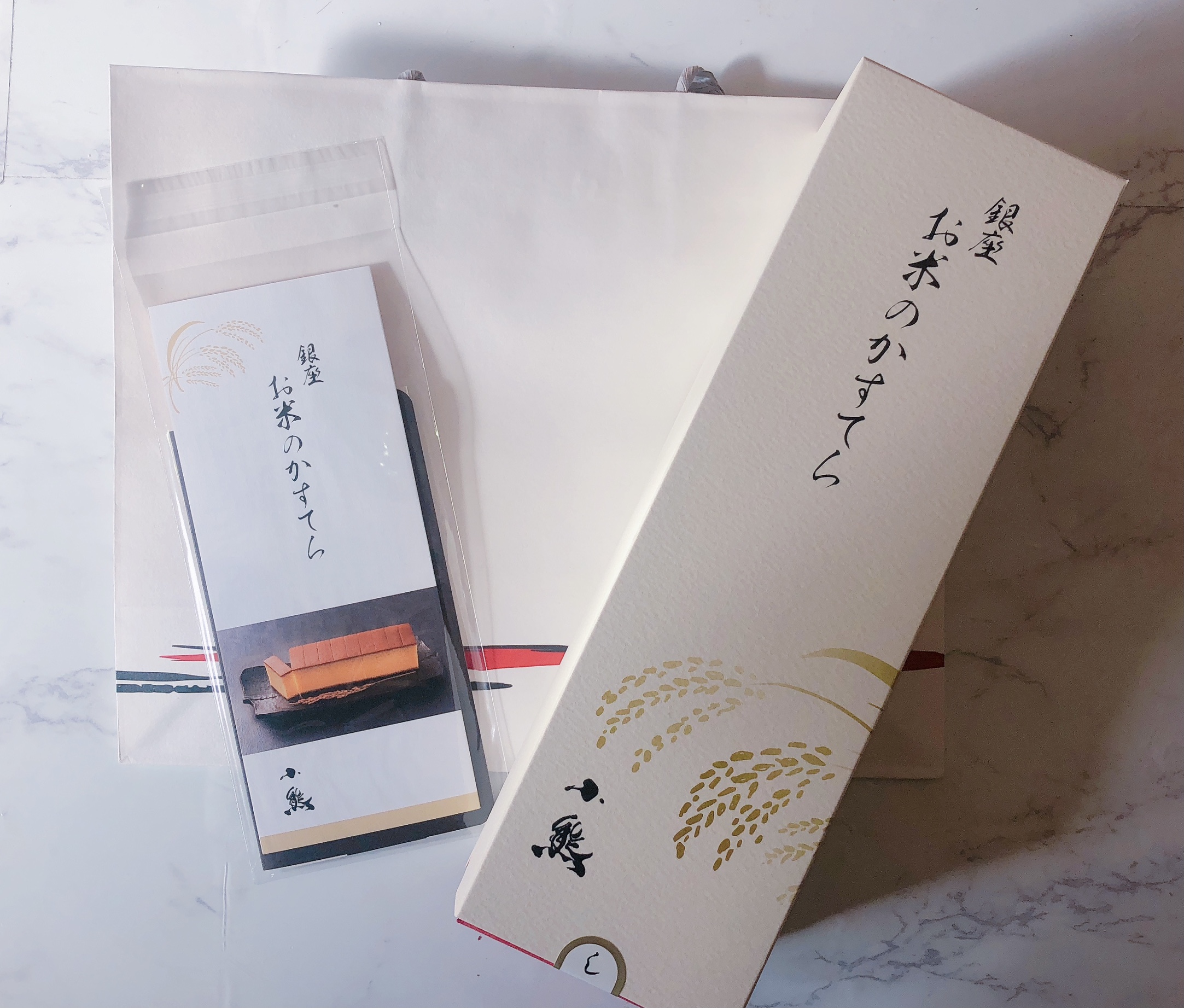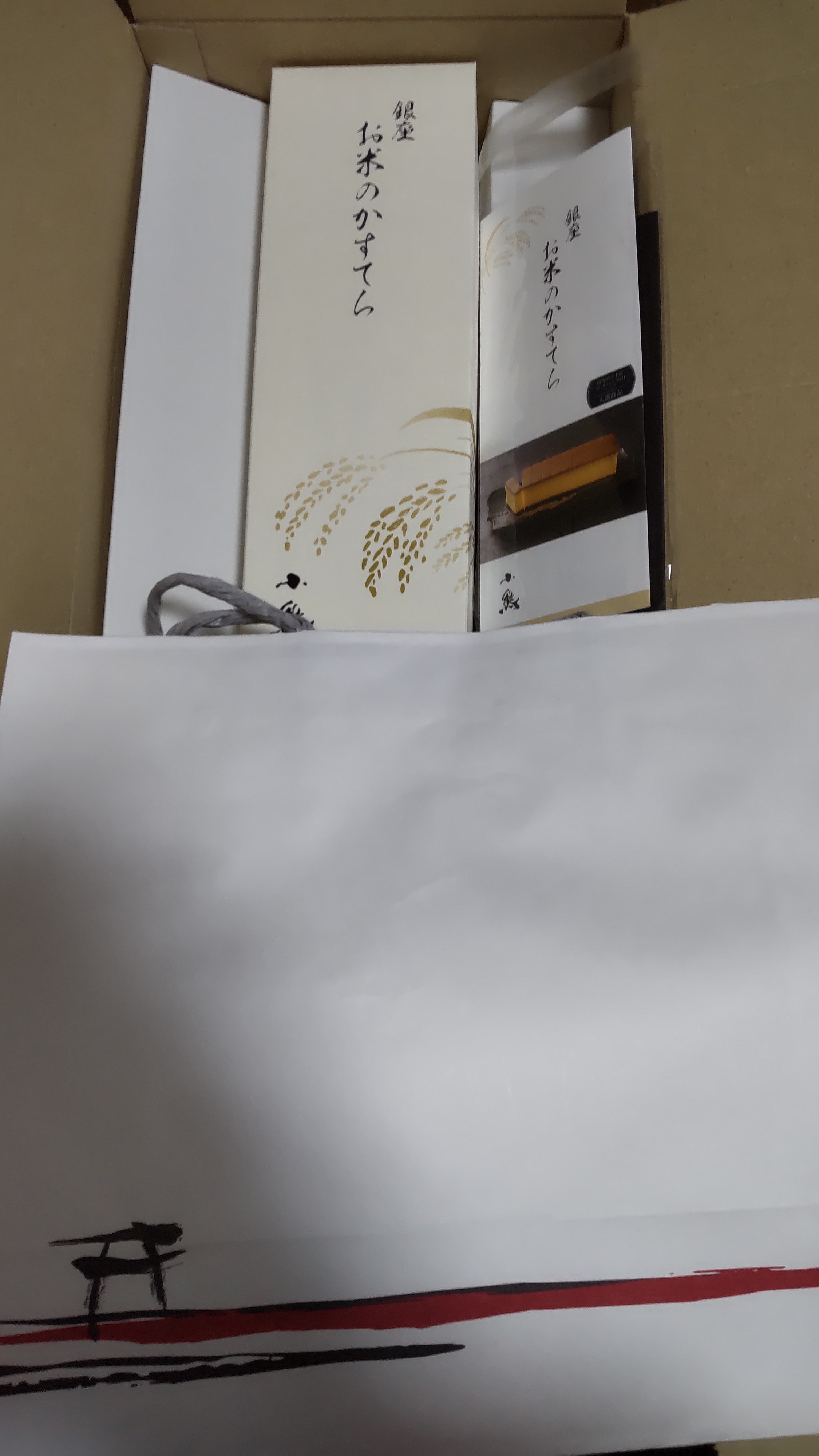 箱の中に入ったカステラは上質な和紙のような紙に包まれている。