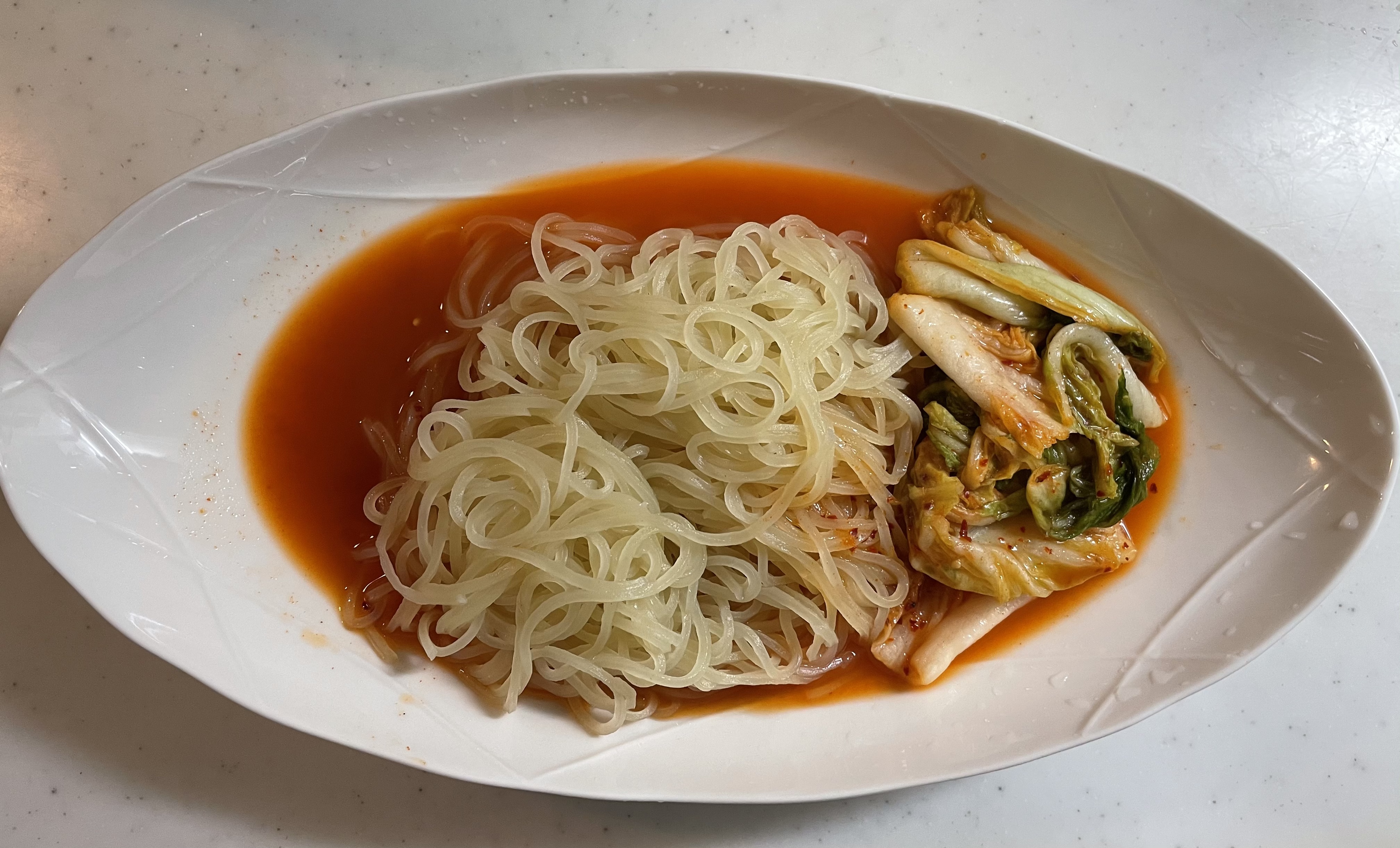 「韓国風冷麺」は、つるつるもちもちで、独特の歯ごたえのある食感がたまらないのが特徴。