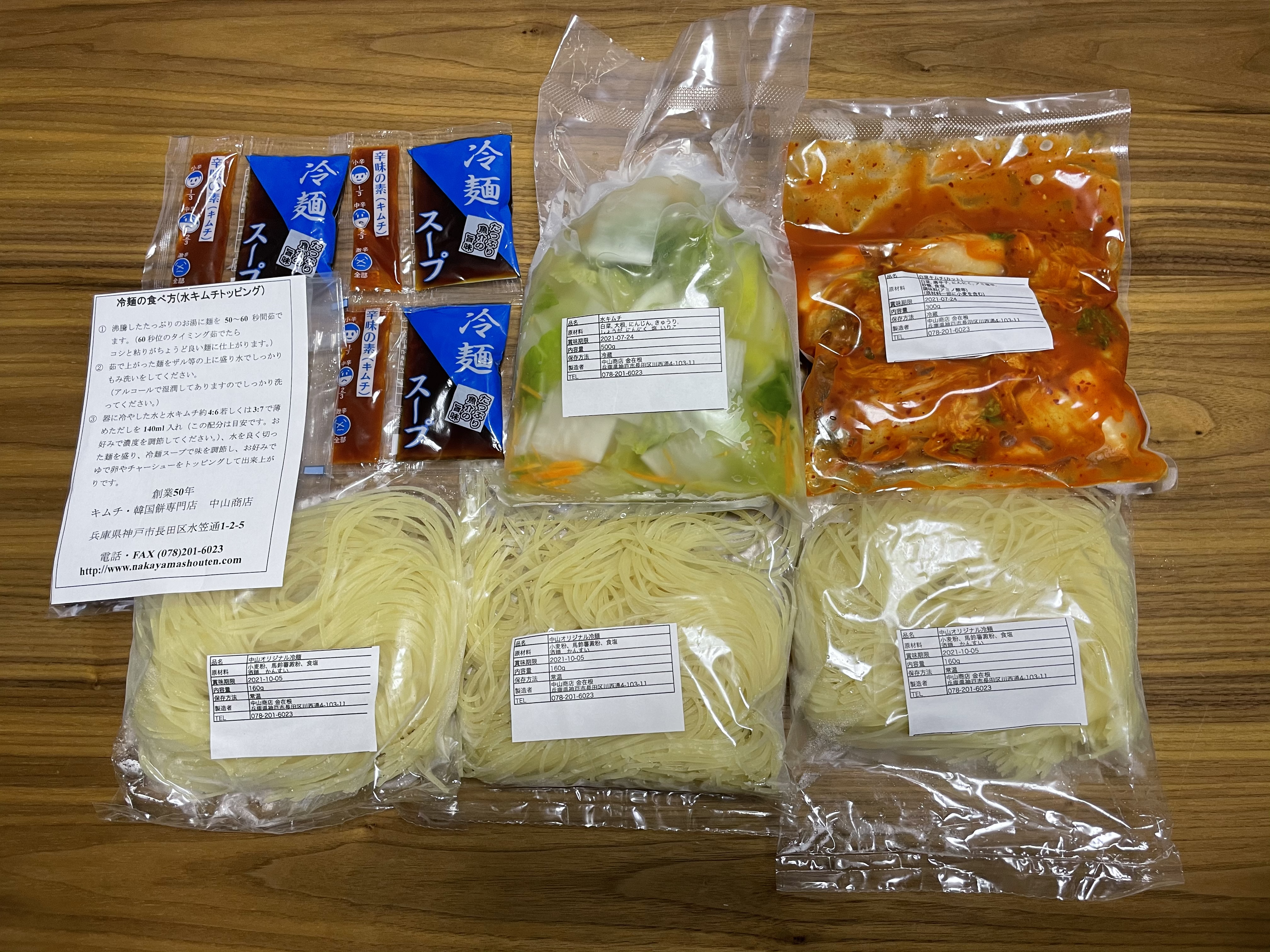 冷麺屋とショップが、麺の美味しさを追求し約3年かけて開発した「韓国風冷麺、白菜キムチ、水キムチ」のセット。