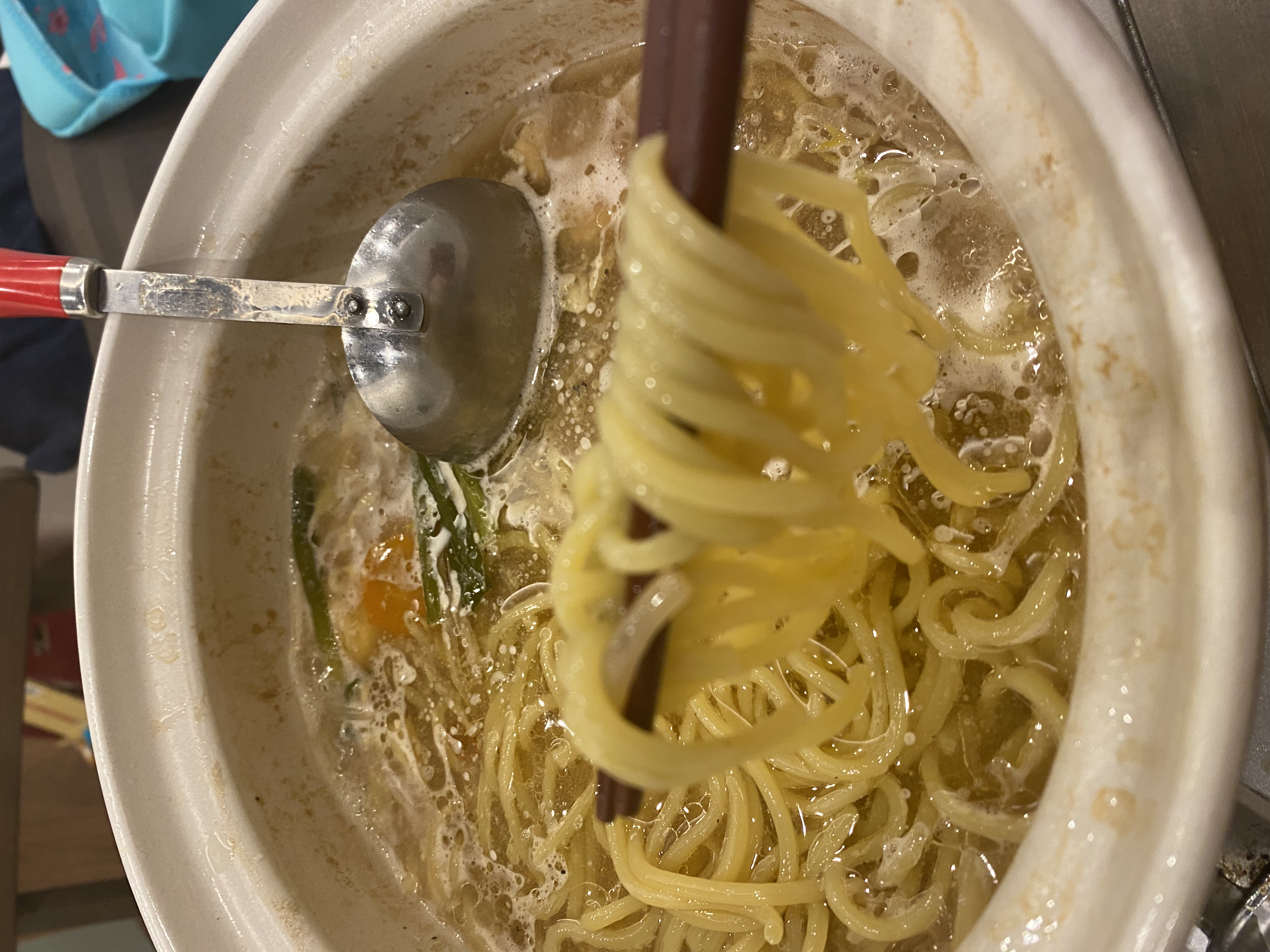うどんと合わせても美味しかったですが、もつ鍋はやっぱりチャンポン麺ですね!すっごく美味しかったです。せっかくおだしがたっぷりあるのでチャンポン麺ももう少しあると嬉しいです。
