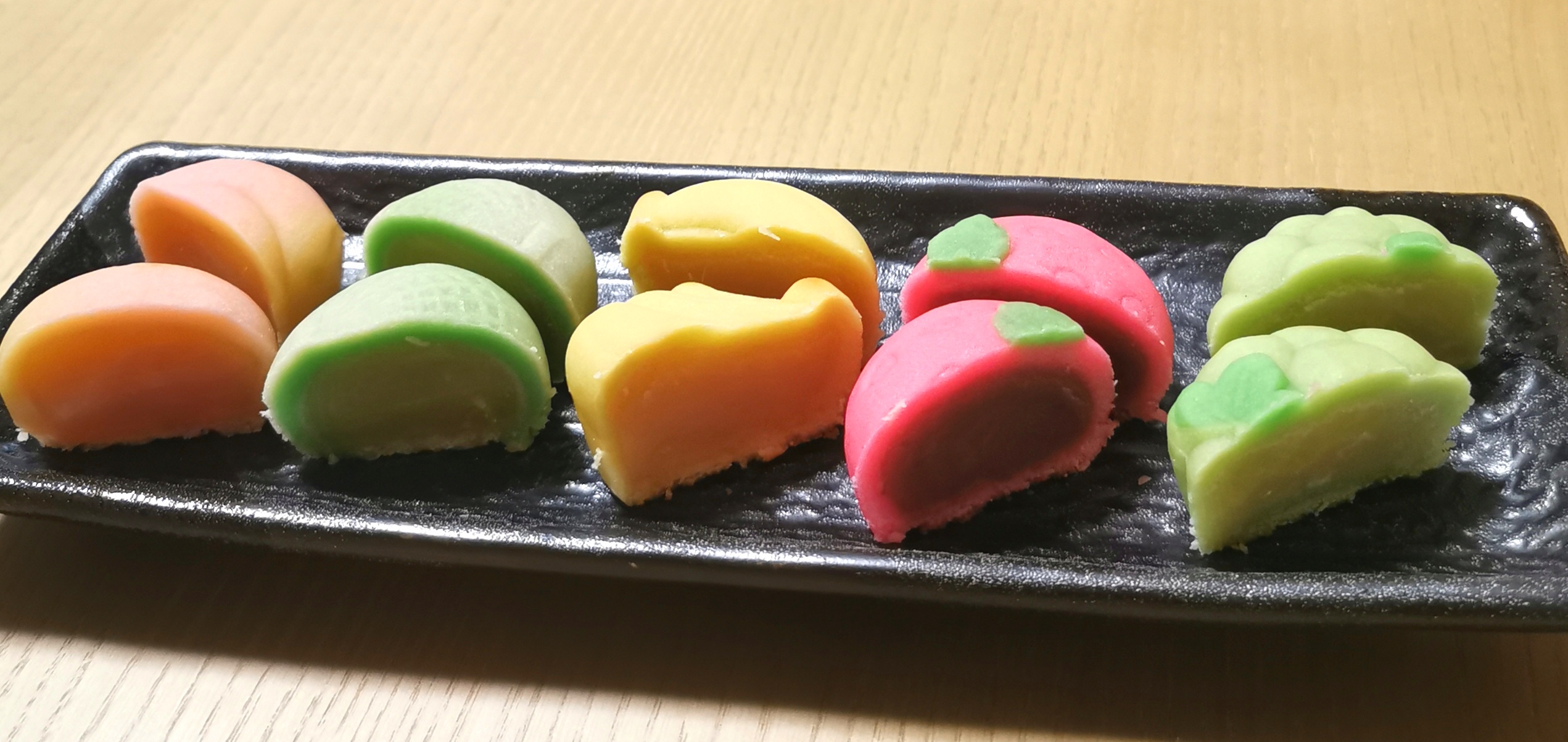 まるで本物のフルーツのような色合いの、カラフルな色をそのまま表現した新スタイルの和スイーツです。