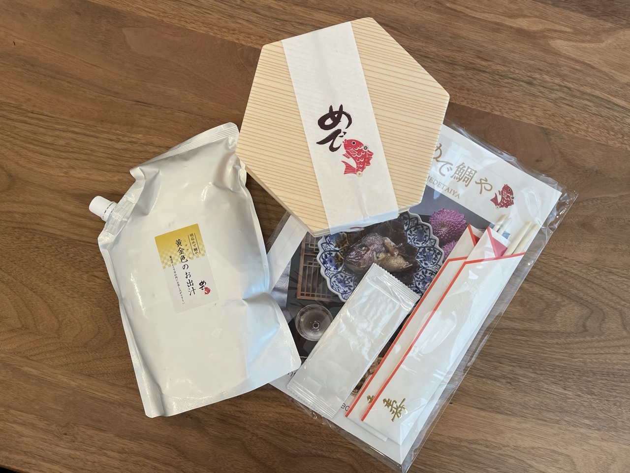 開けてみるとめで鯛のロゴののしがあり、ワクワクしました!