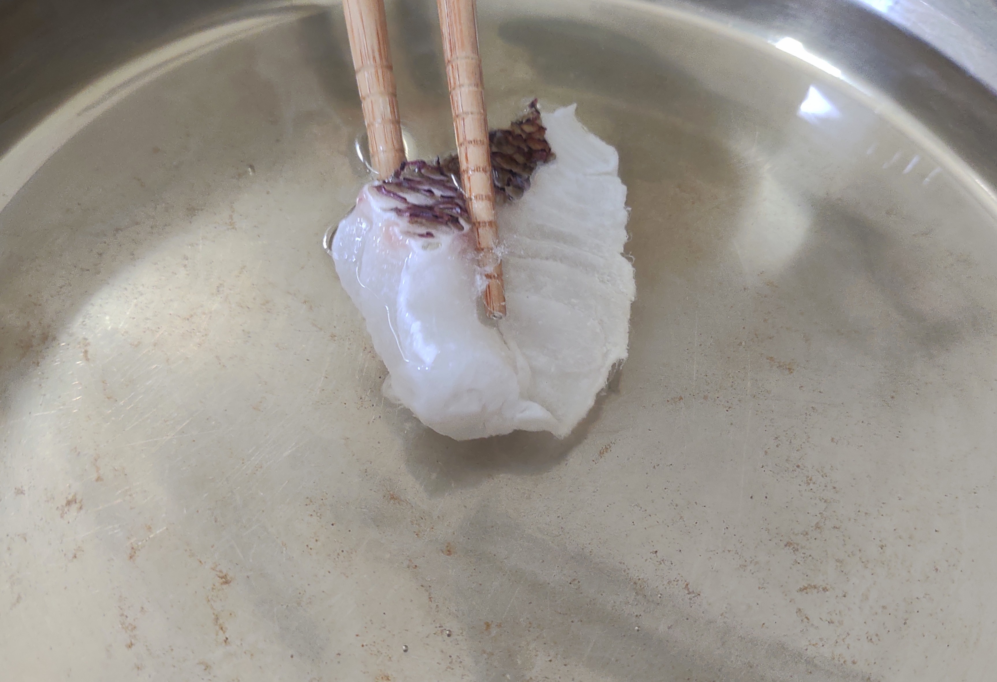 鍋に入れた瞬間に白くなってしゃぶしゃぶを7秒くらいしました。