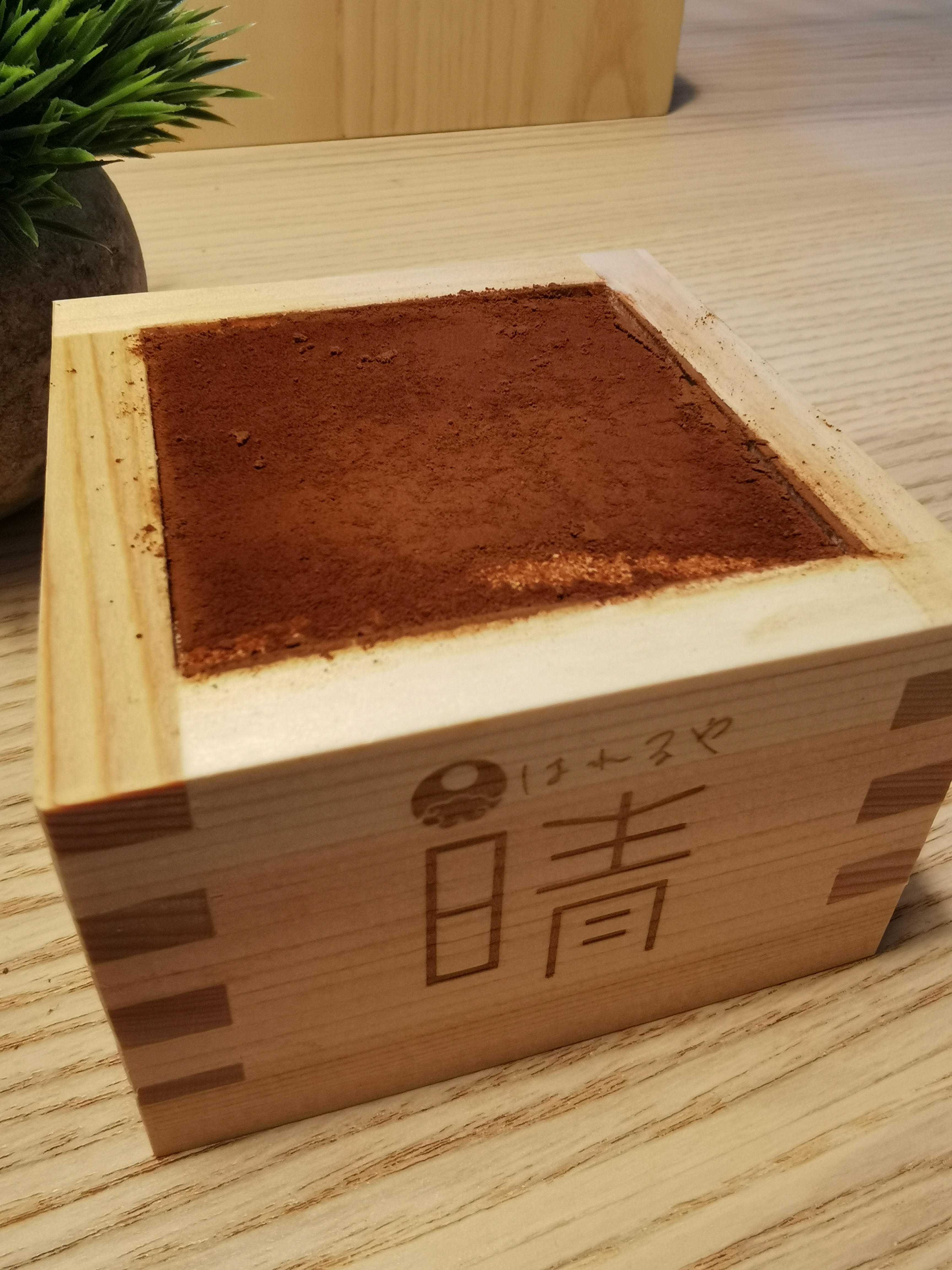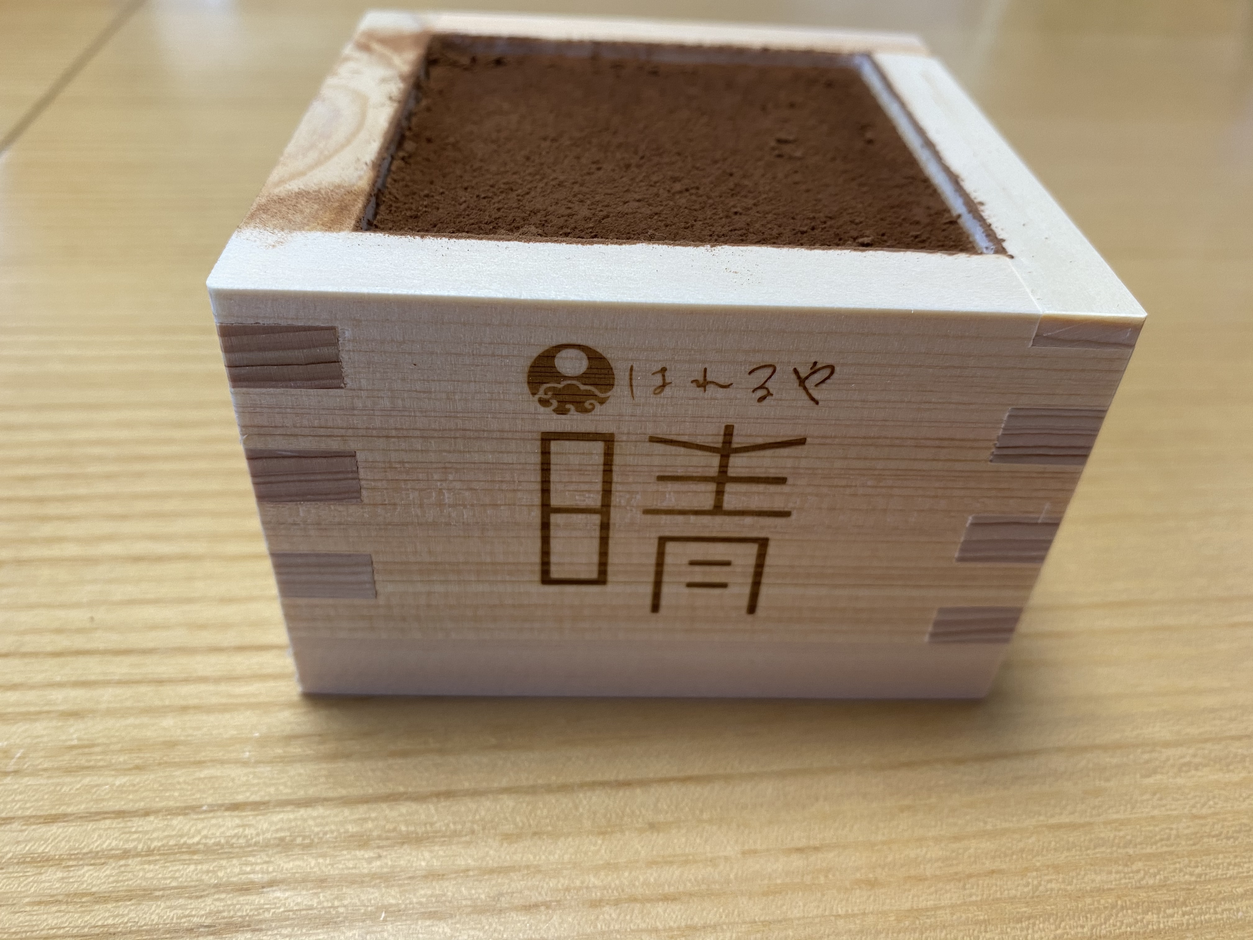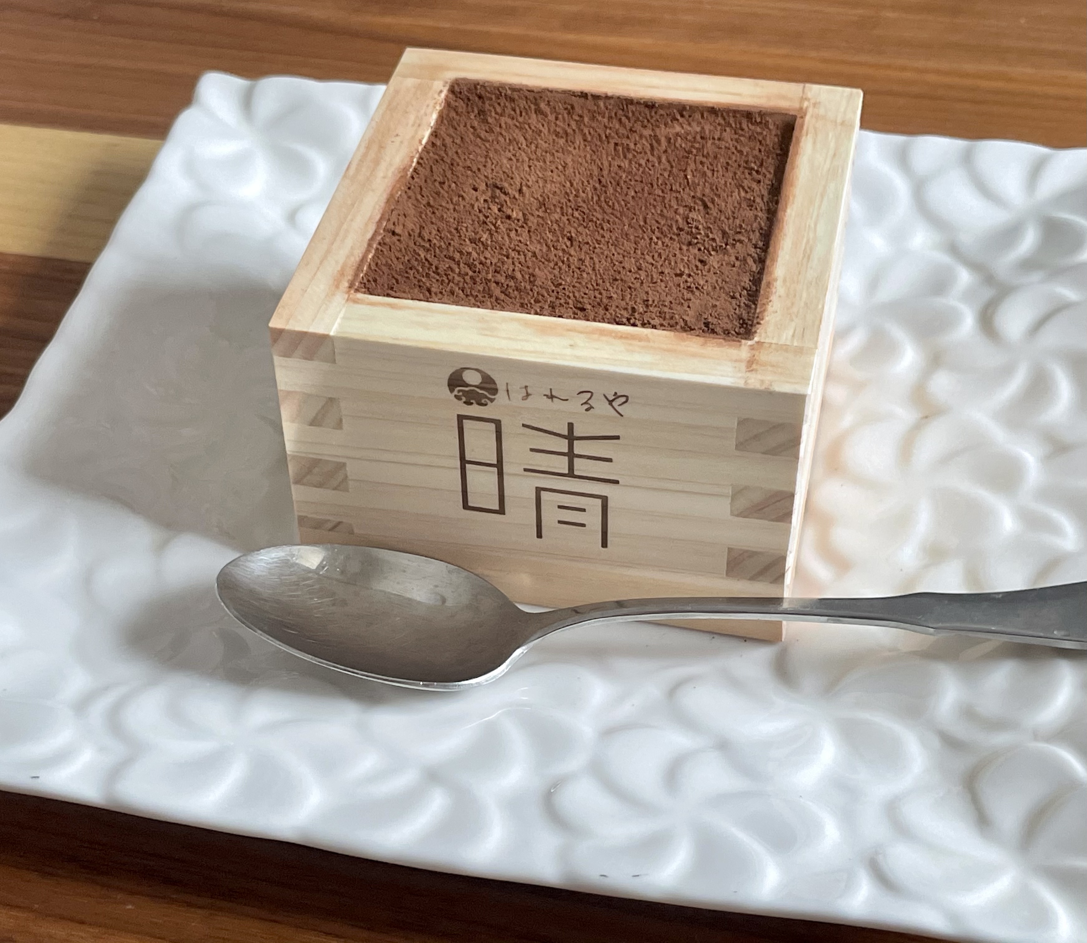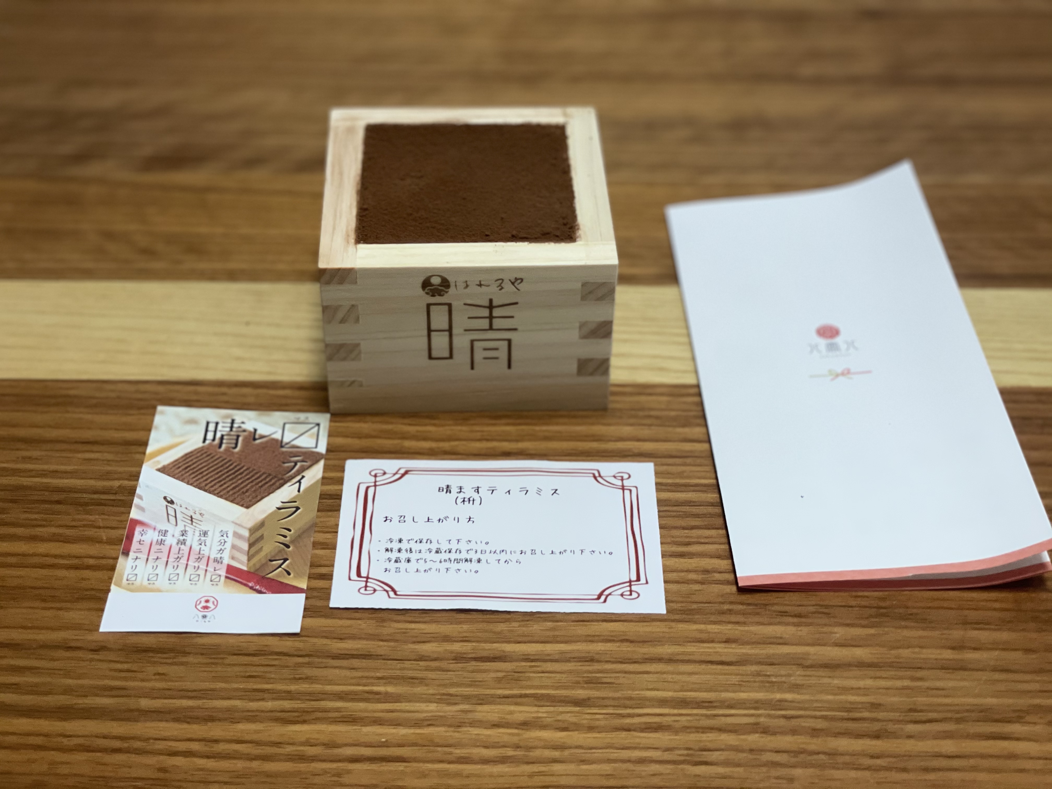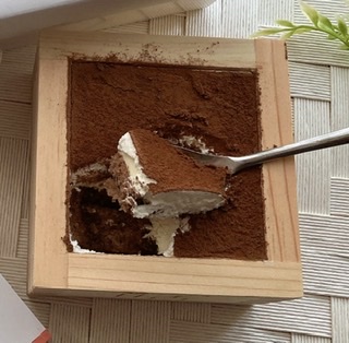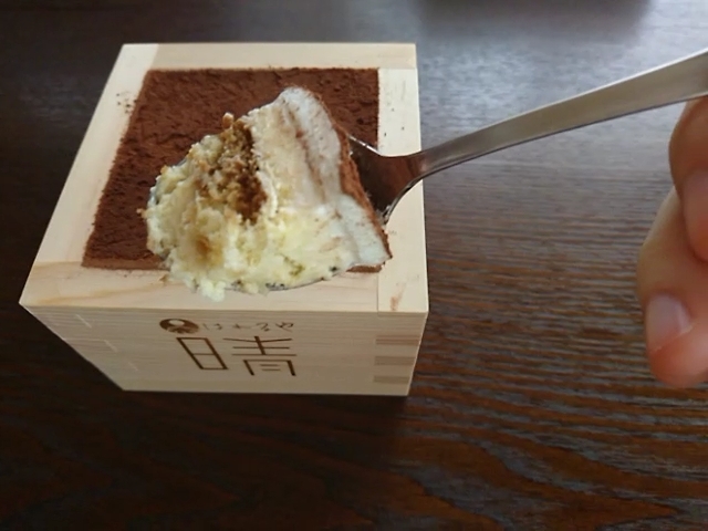 商品ですが、ティラミスという洋風なデザートですが、枡に入っているので和と洋が合わさり晴れの日にも合う高級感のあるデザートになっていると思います。