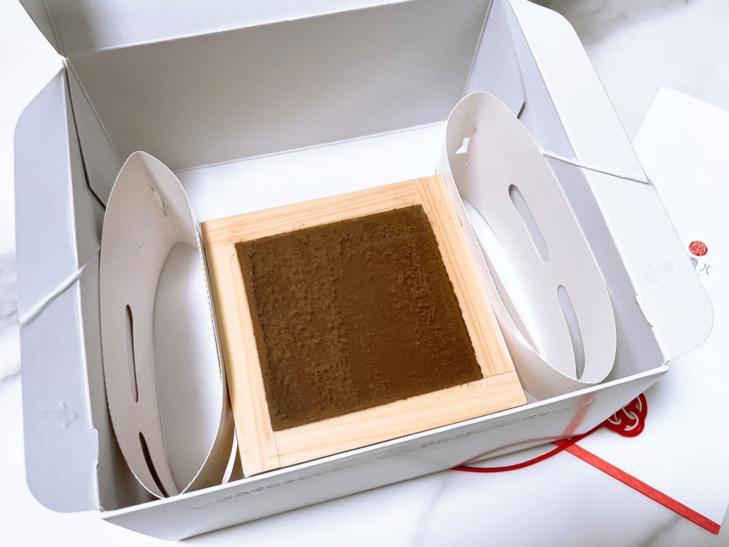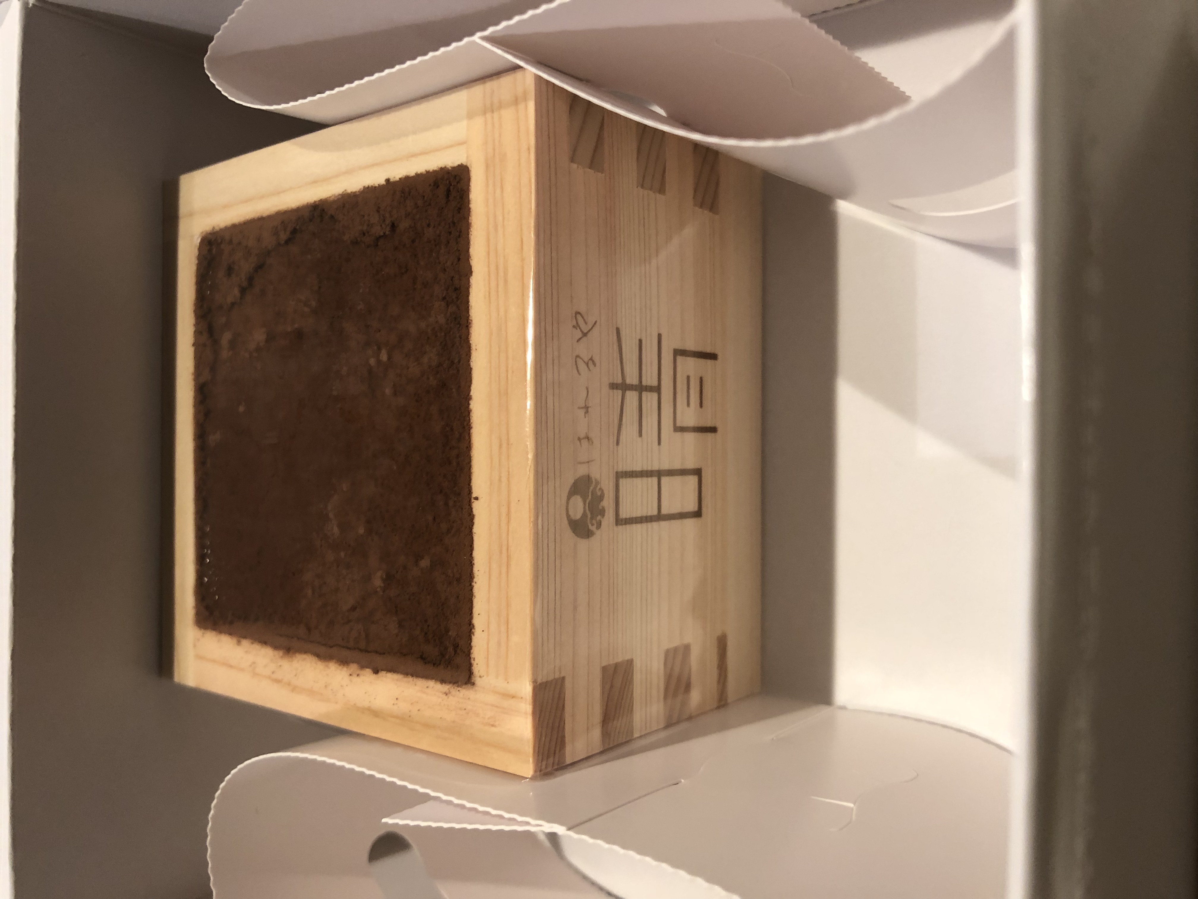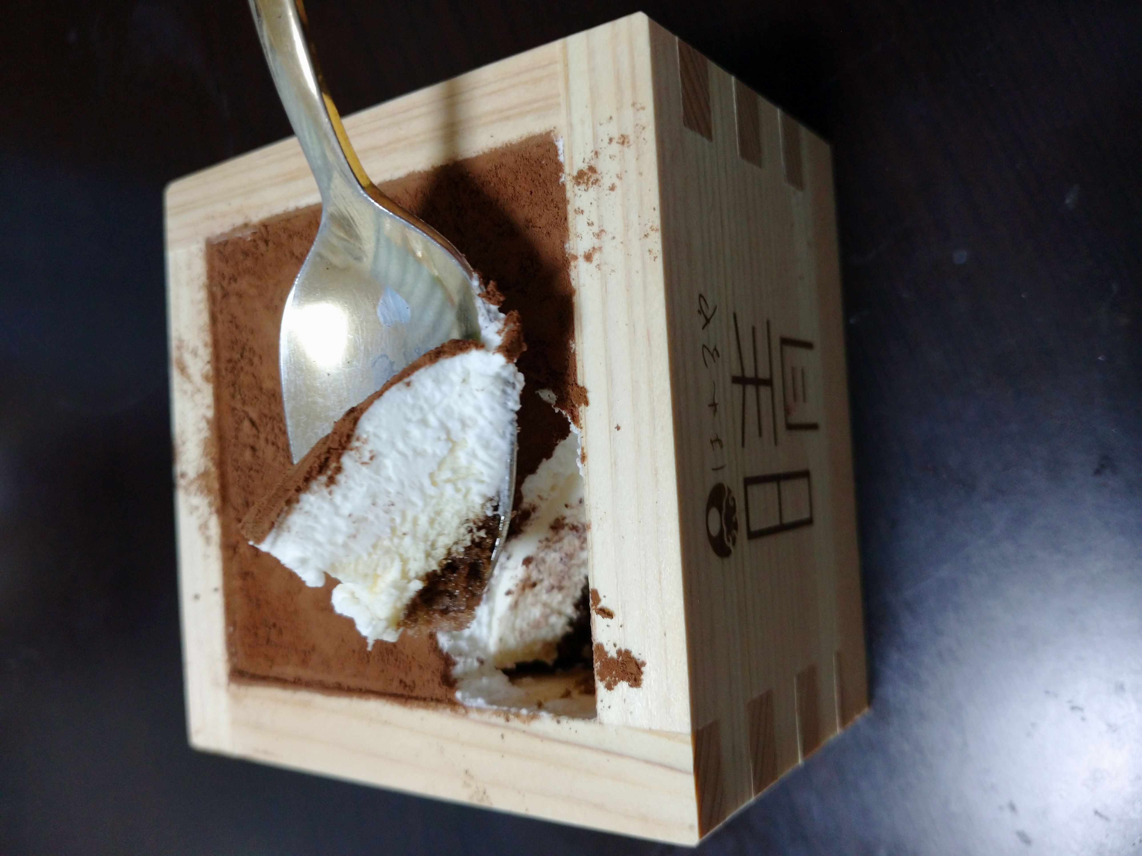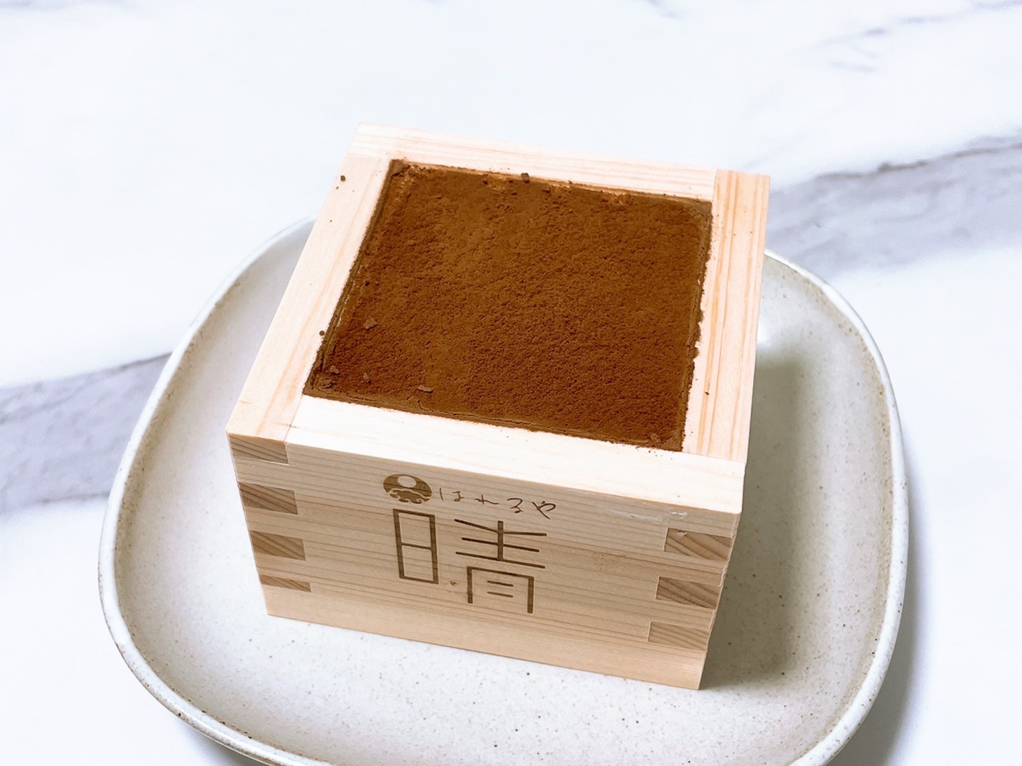 商品ですが、ティラミスという洋風なデザートですが、枡に入っているので和と洋が合わさり晴れの日にも合う高級感のあるデザートになっていると思います。