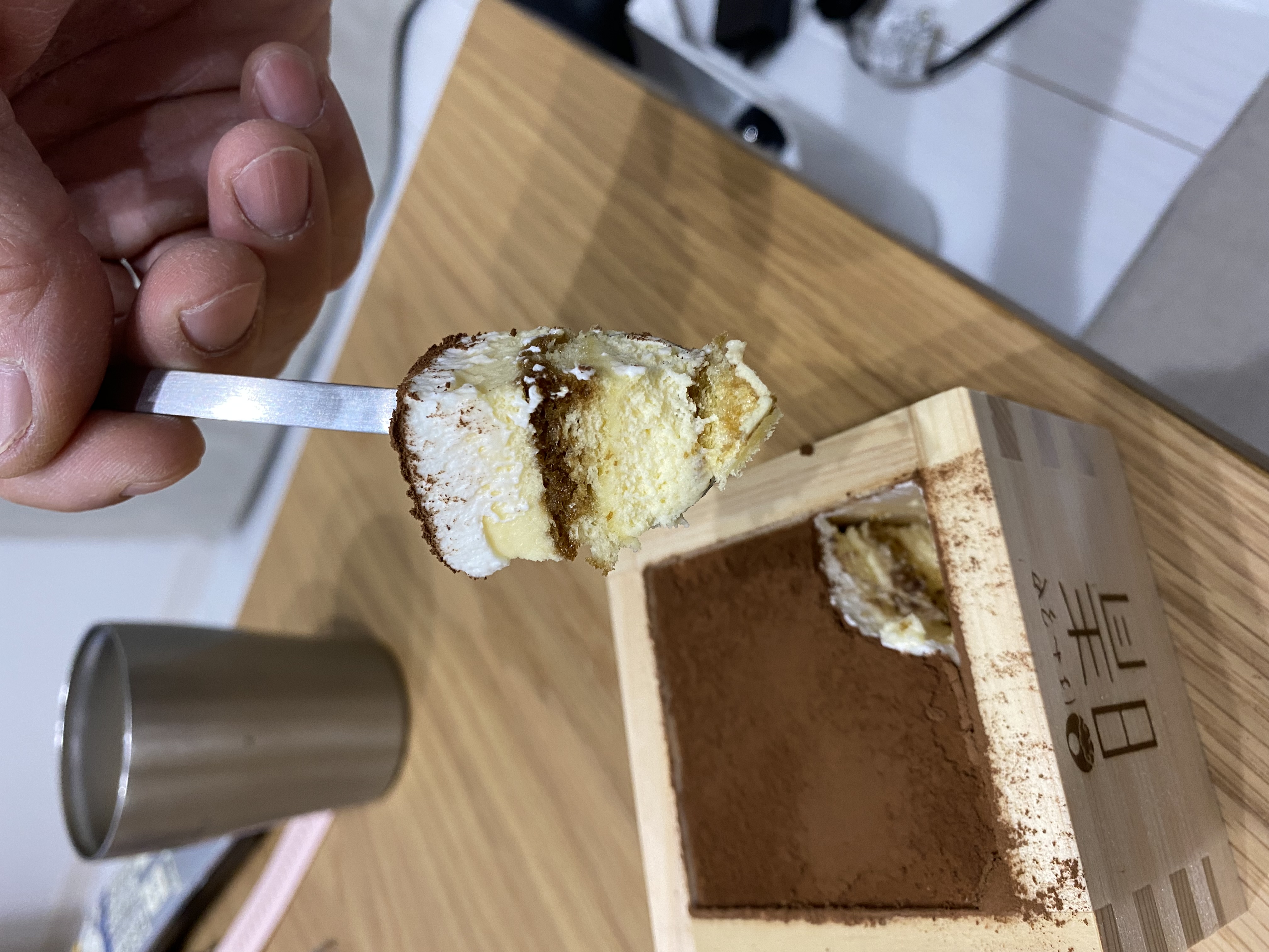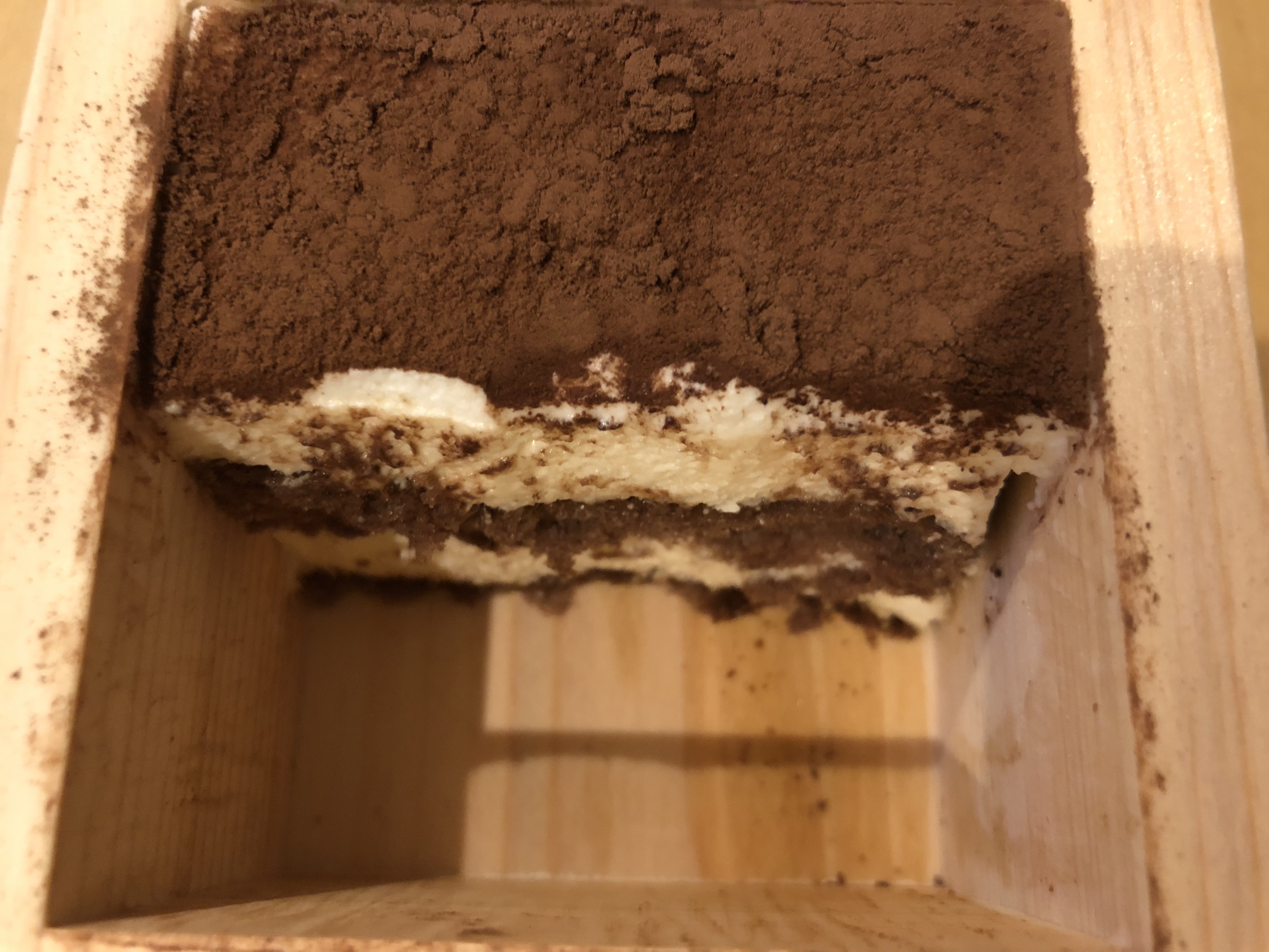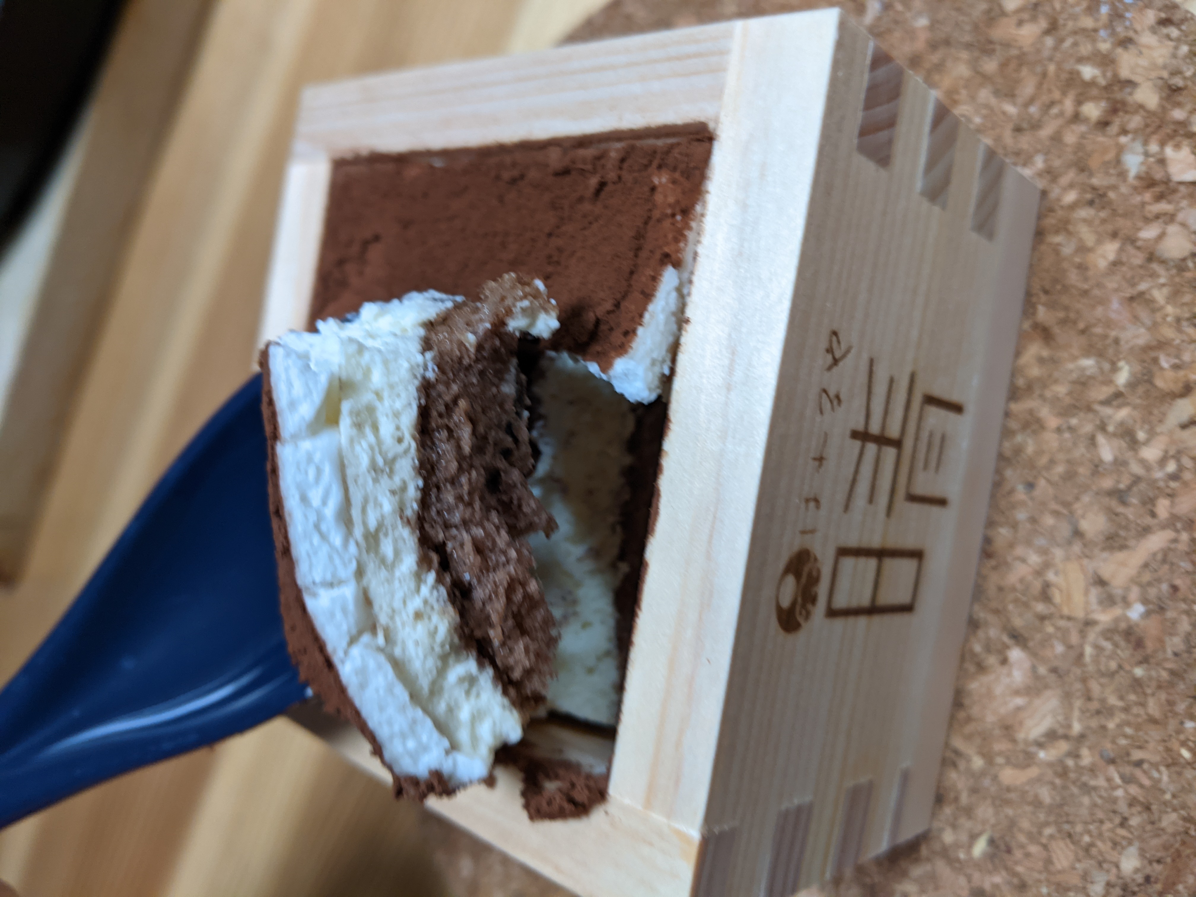 味は、食べてすぐはマスカルポーネの濃厚な味がして、その後に木の香りがふわっと香ります。