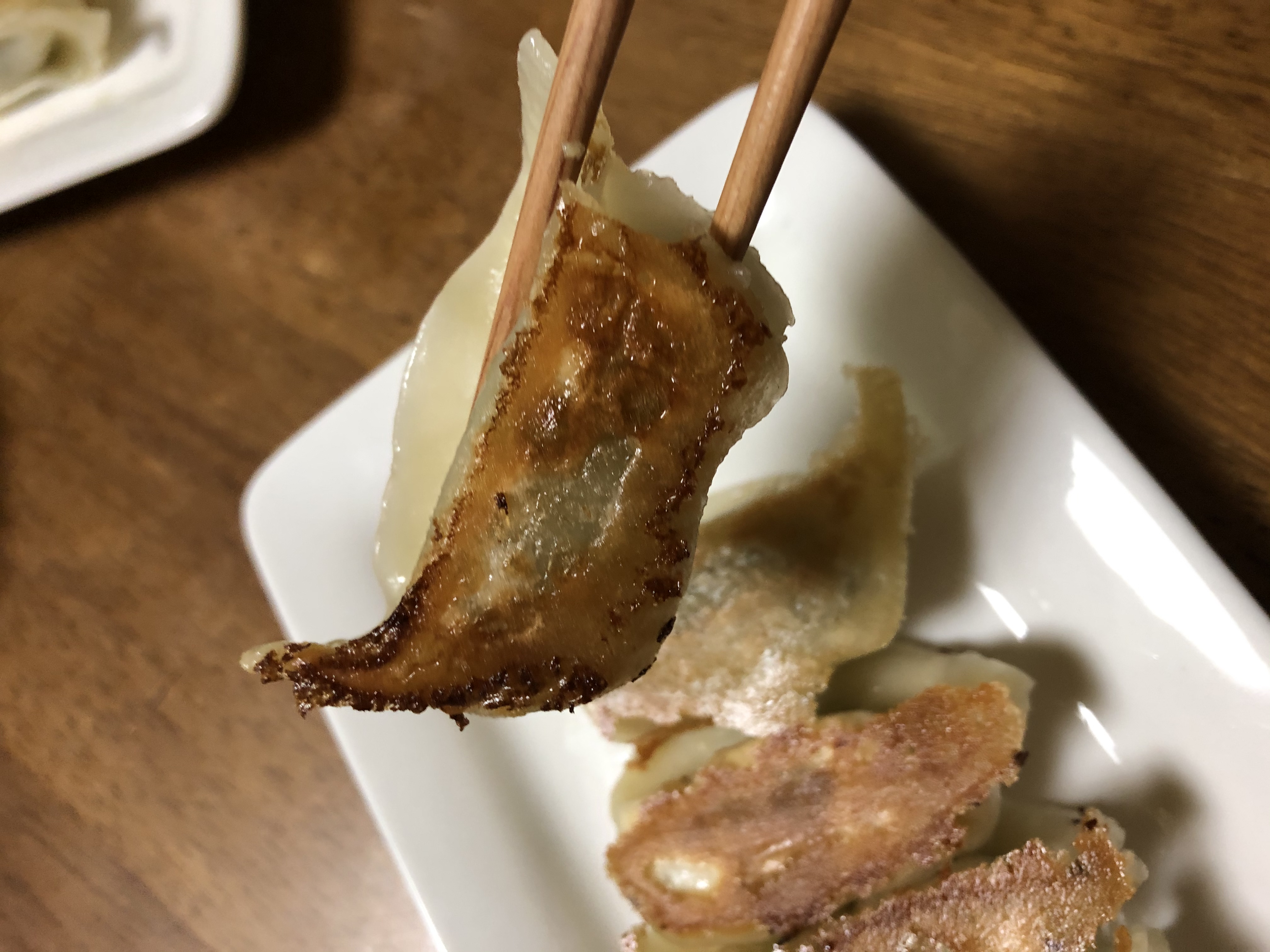 こどももいるので焼きたてと冷めたのと食べましたが焼きたてはパリパリ、時間がたつと少しもっちりの餃子になりました。