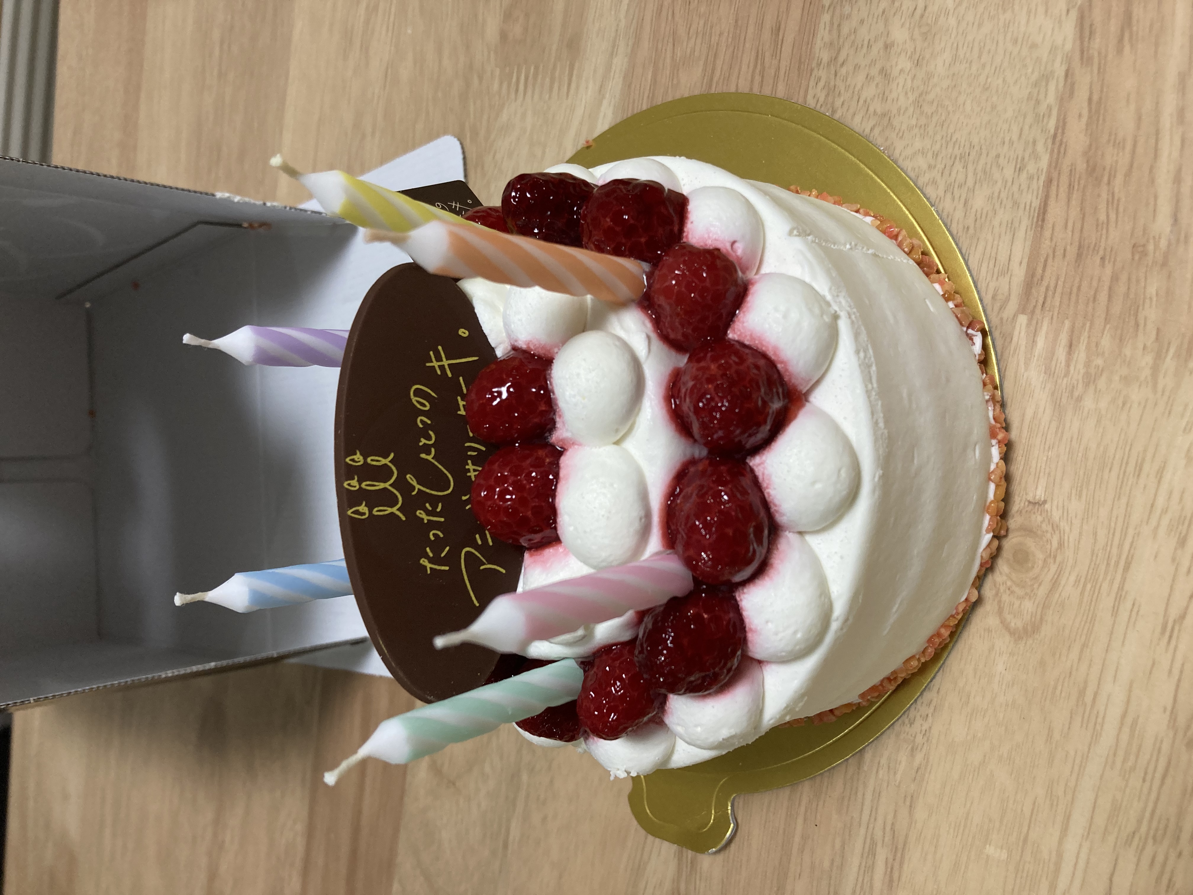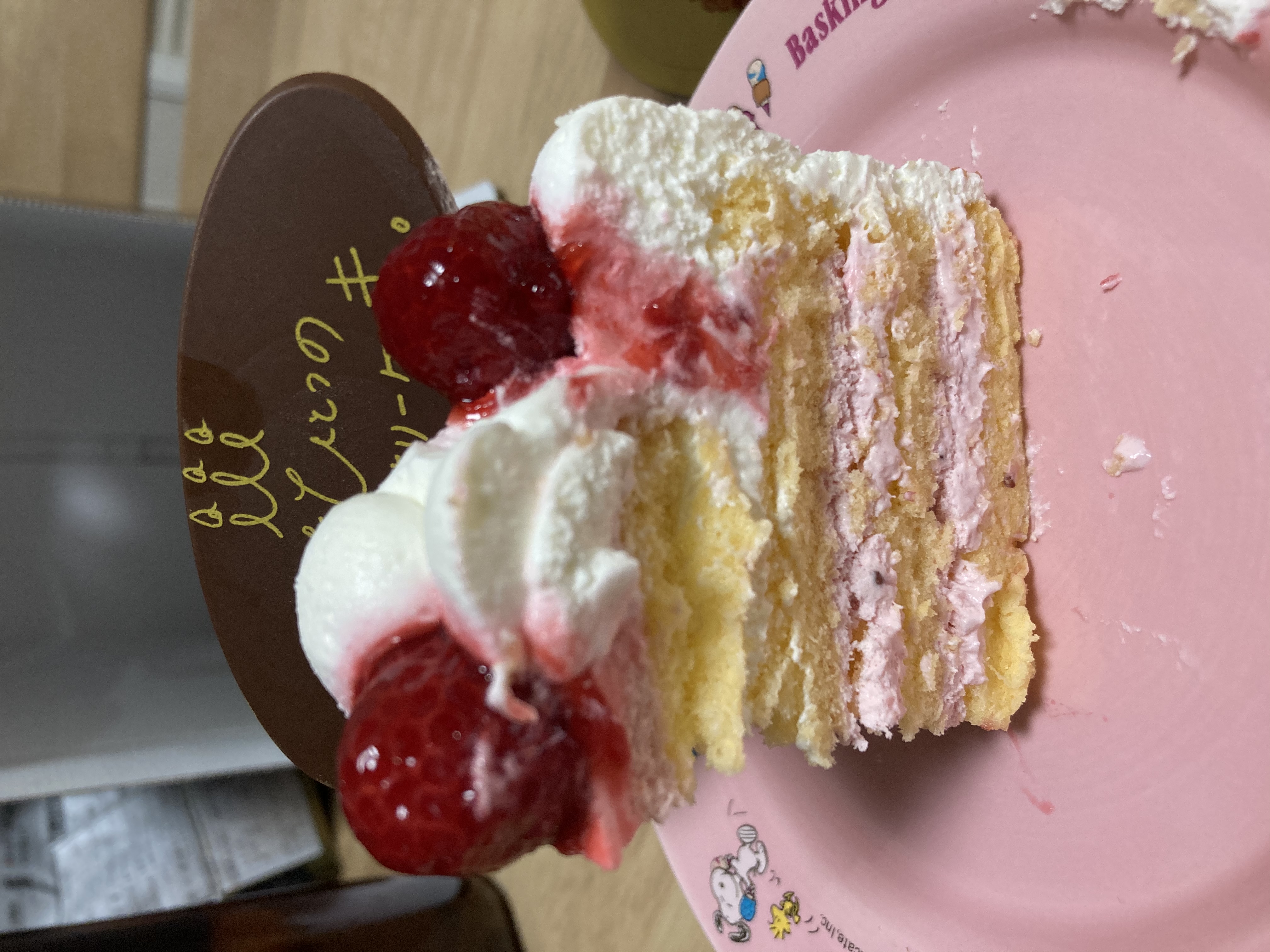 ちょうどお誕生日のタイミングだったので、バースデーケーキとして家族3人で頂くことに♪冷凍状態のうちにケーキからフィルムを外し、冷蔵庫に移して解凍後、チョコプレートとロウソクをケーキにセットすればお祝い気分は最高潮です!ワクワクしながらケーキに包丁を入れると、きれいな断面に「わ~♡」と大歓声。スポンジ生地の上にベリーのムースが乗った2段構造なので、中央にこんもりと高さがあって何ともゴージャス!スポンジにサンドされたピンク色のいちごクリームの層も華やかで、SNS映えバッチリの萌え断ケーキです。