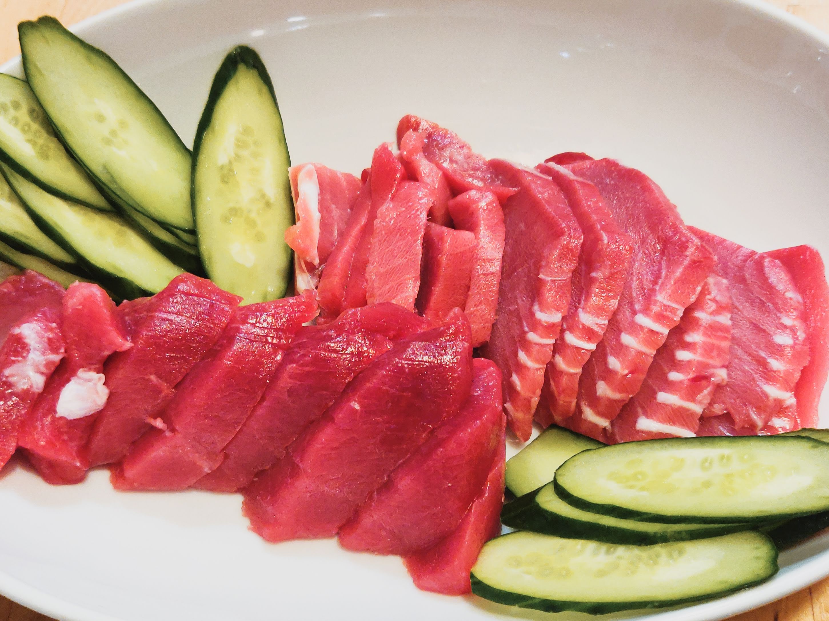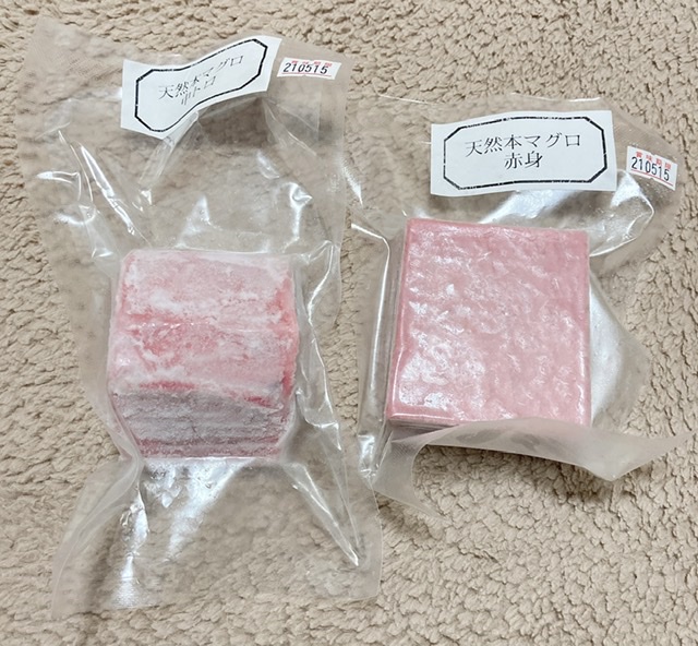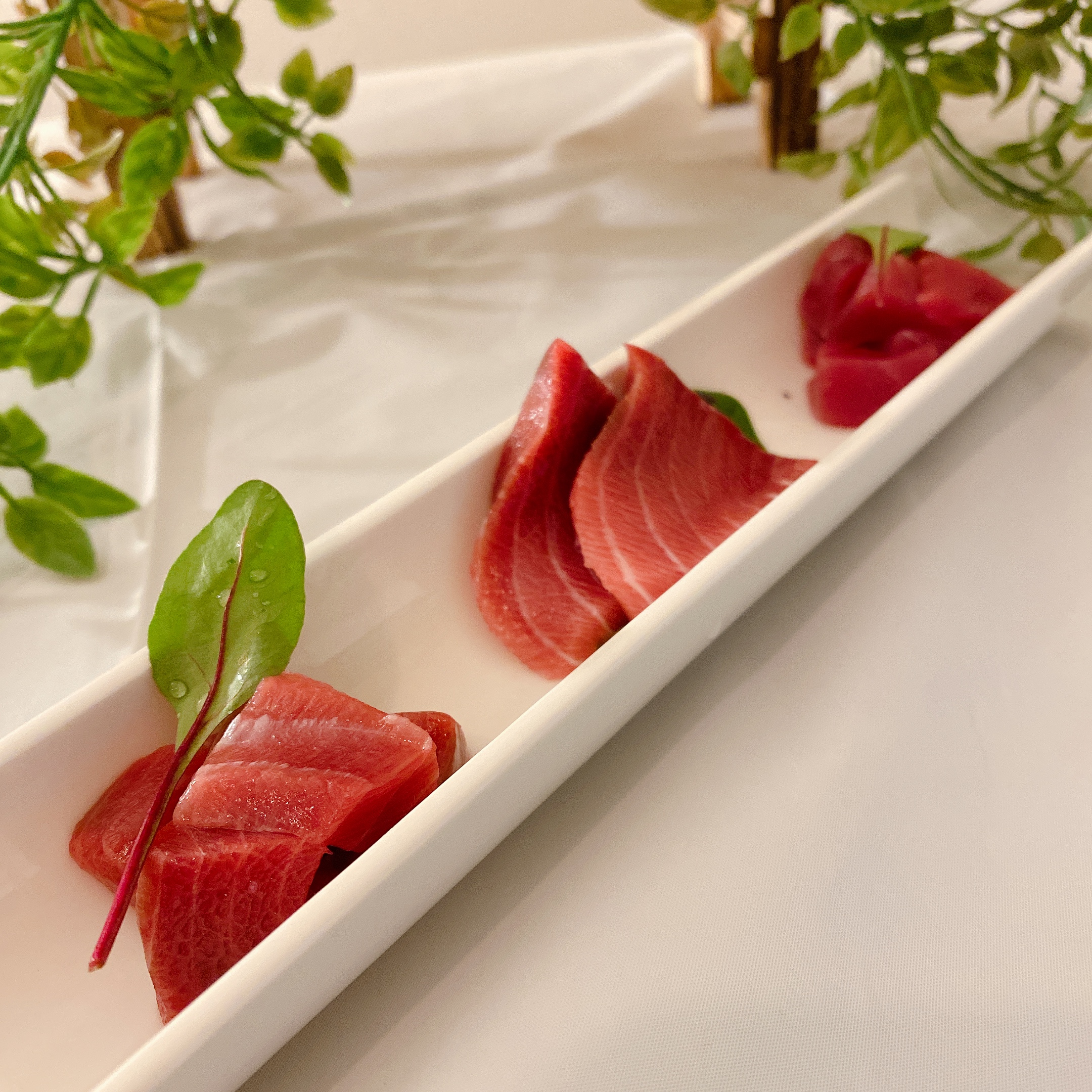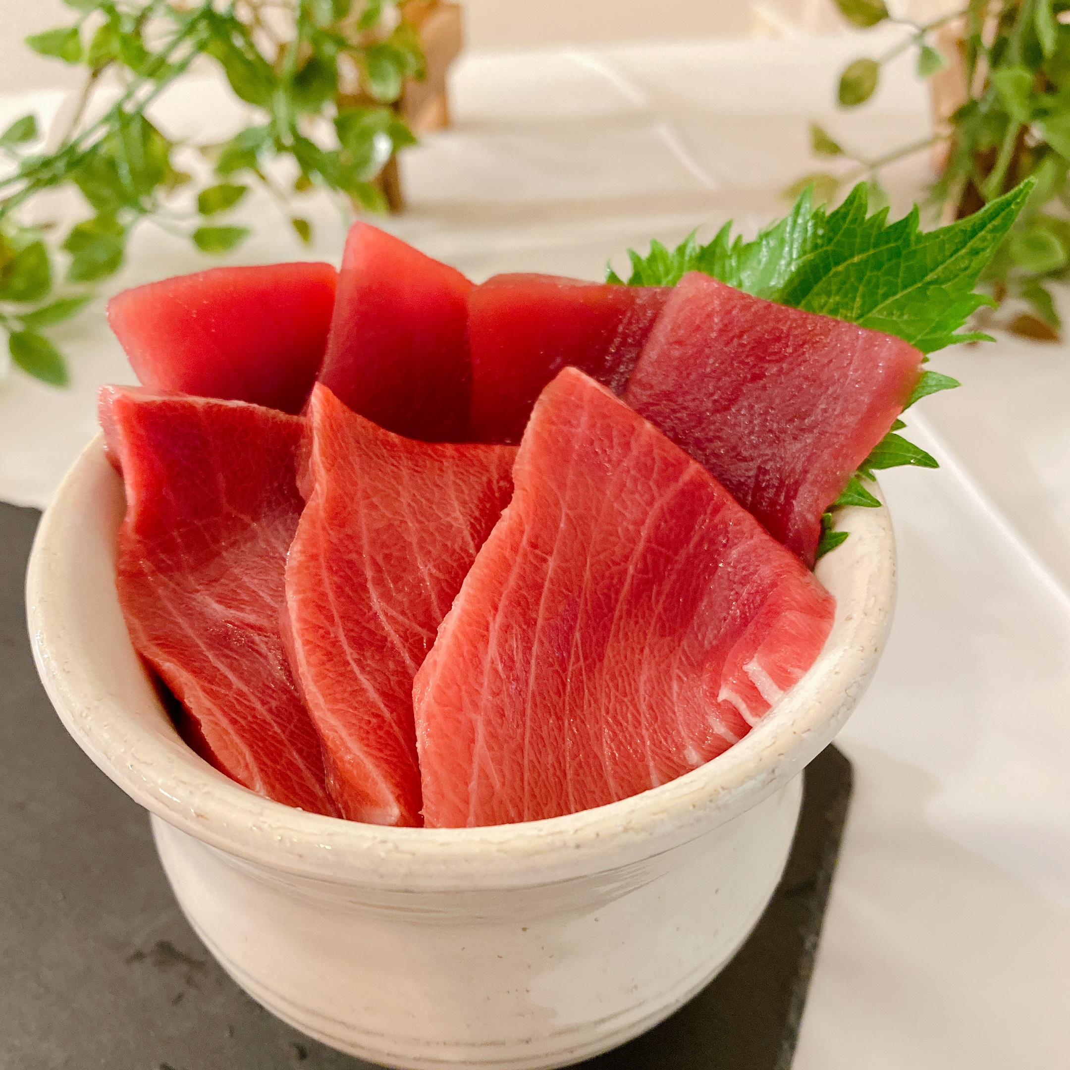 赤身は綺麗な色をしており、初めは何もつけずに食べましたが、マグロ本来の旨味が凝縮されており美味しかったです。スジもなく食べやすかったです。