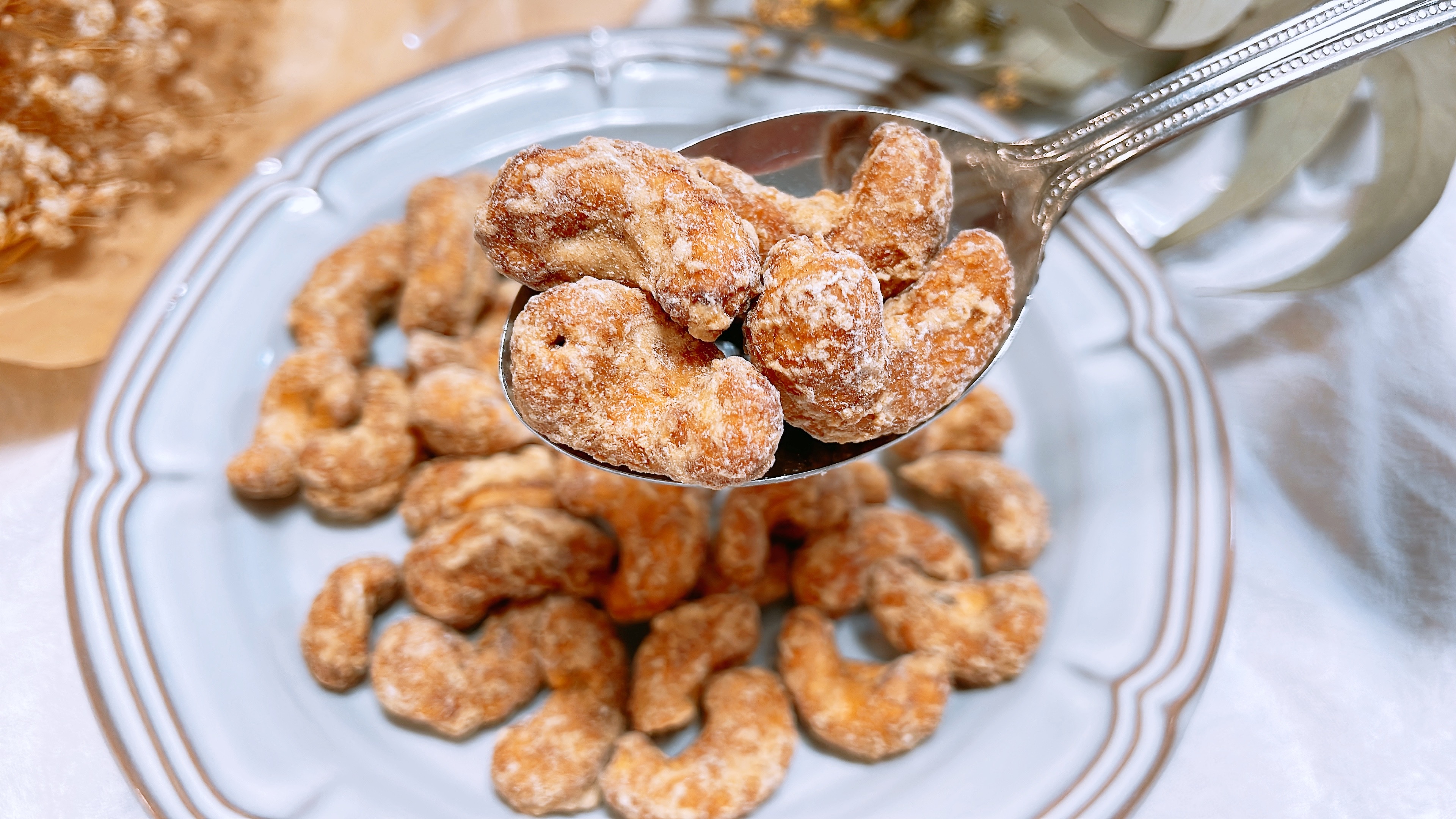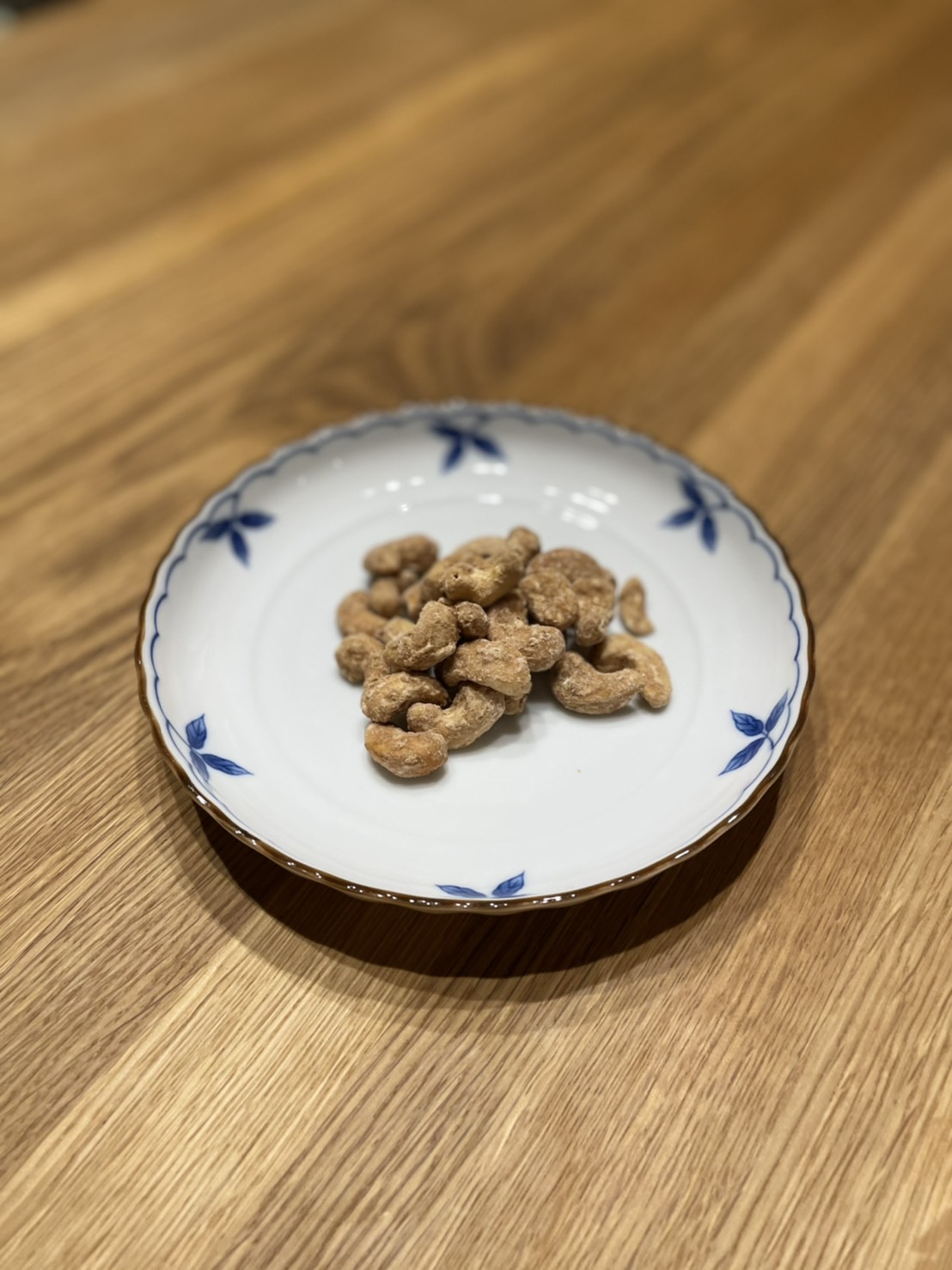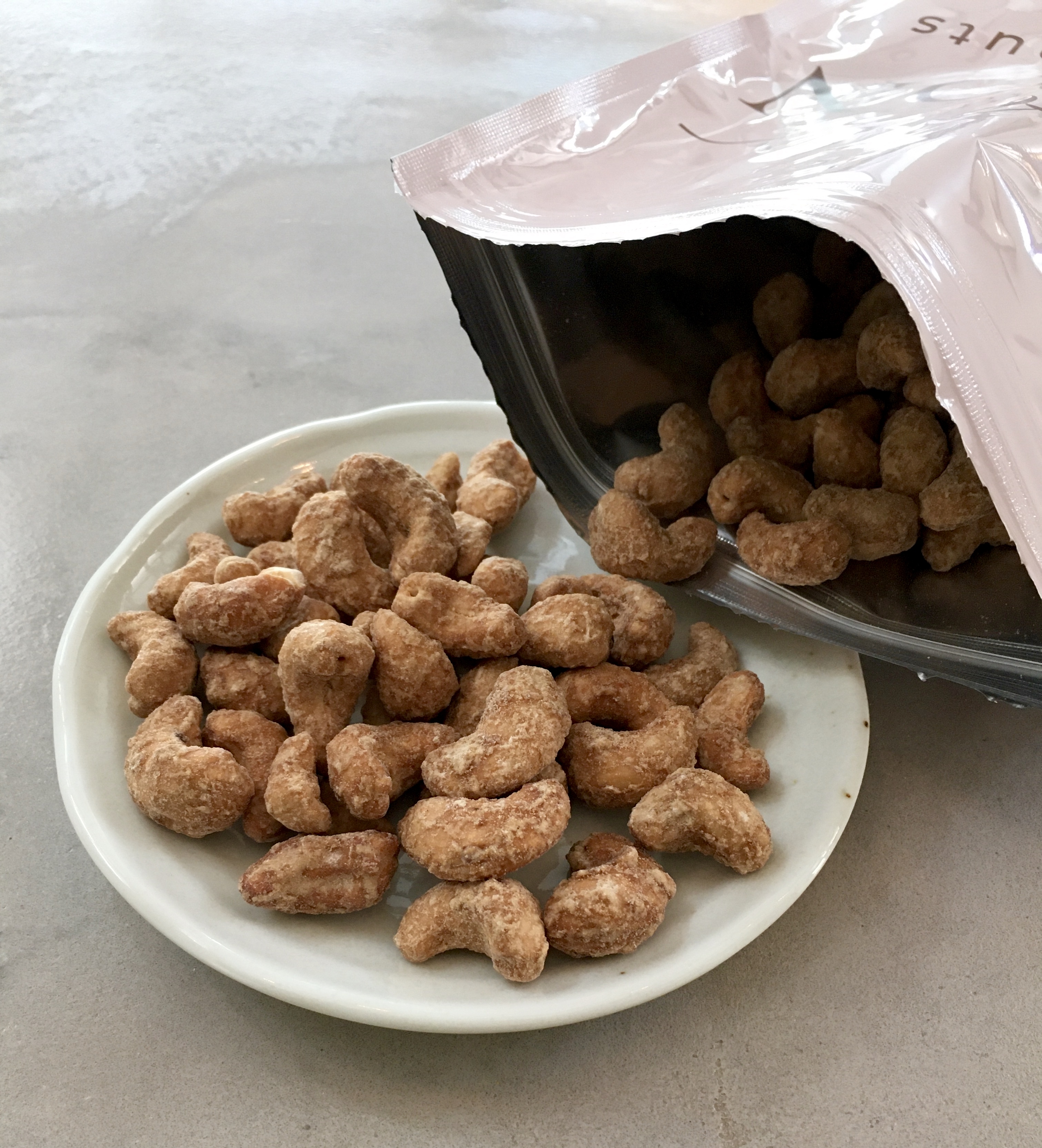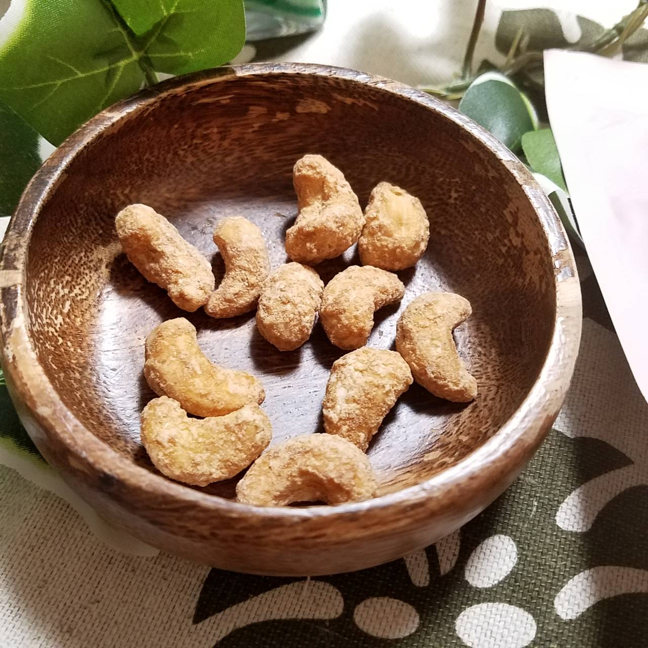 粒が大きいので手づかみで食べやすく、また甘いのでティータイムやおやつ、小腹が空いた時などにいいなと思いました!カシューナッツとメープルの相性抜群です!ついつい手が出る止まらないお味でした!