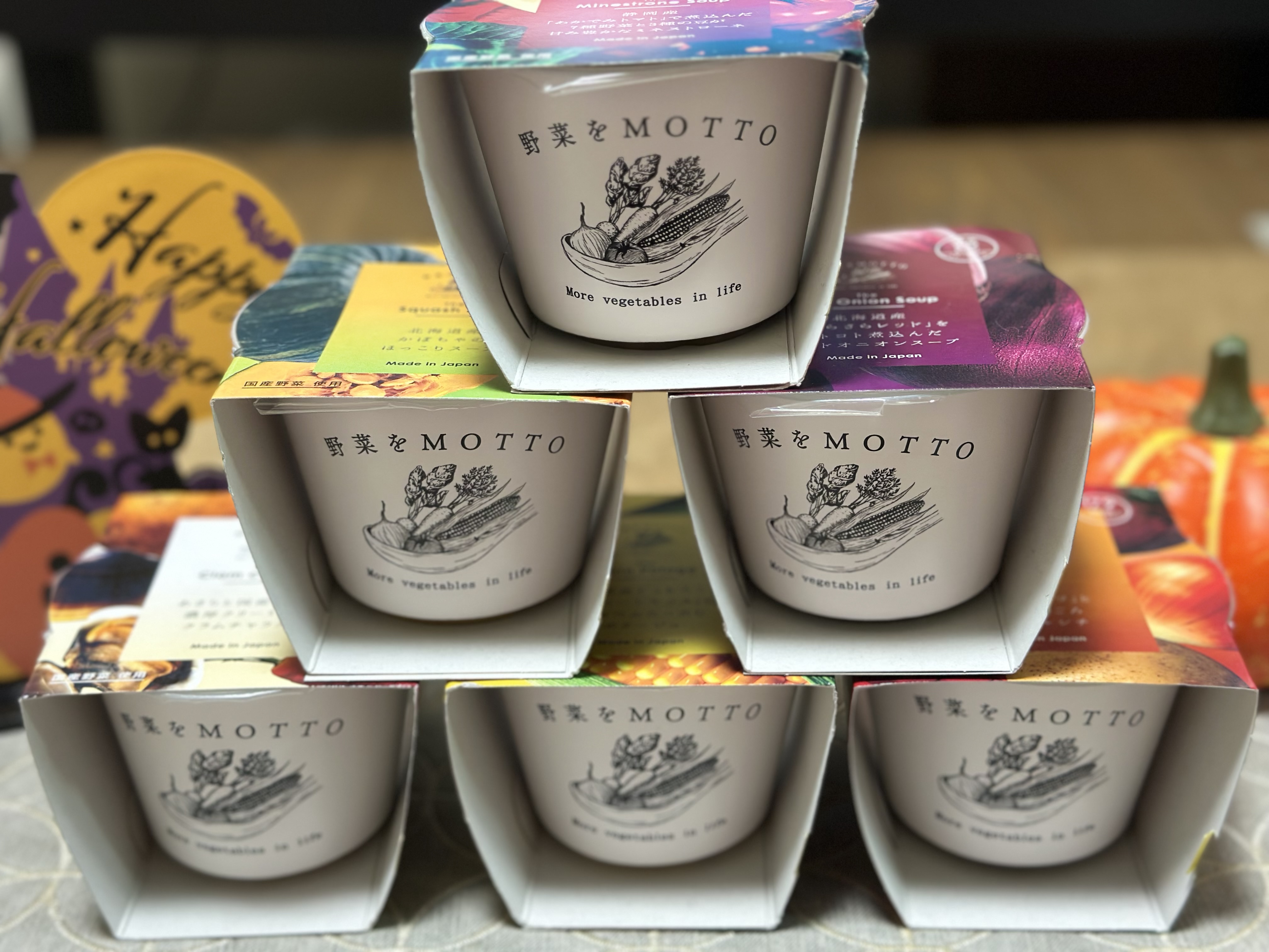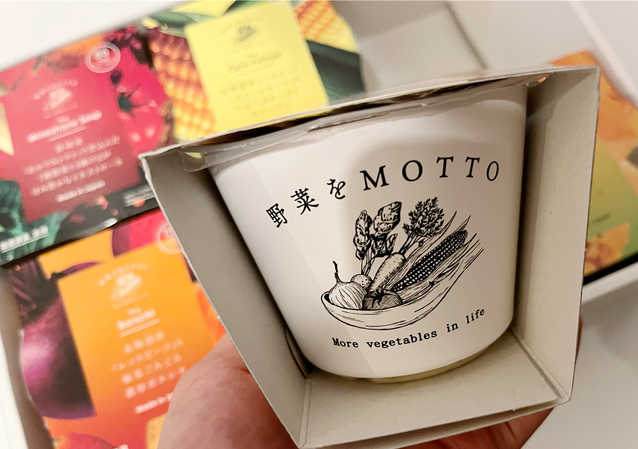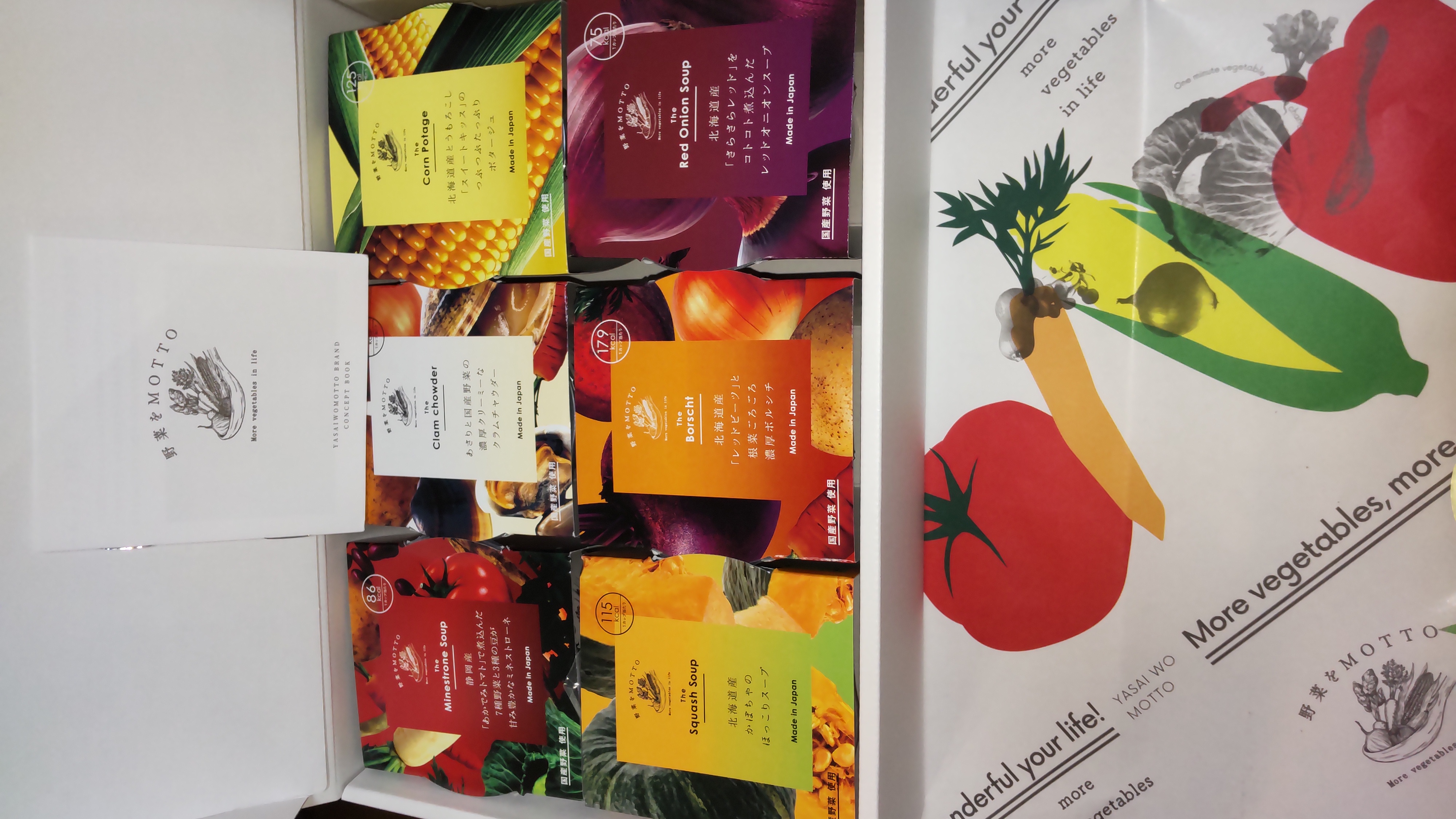 野菜をモチーフにしたパッケージは色とりどりで目を惹きます。ギフトにぴったりですね。食べる前キッチンに飾っても可愛いかも。