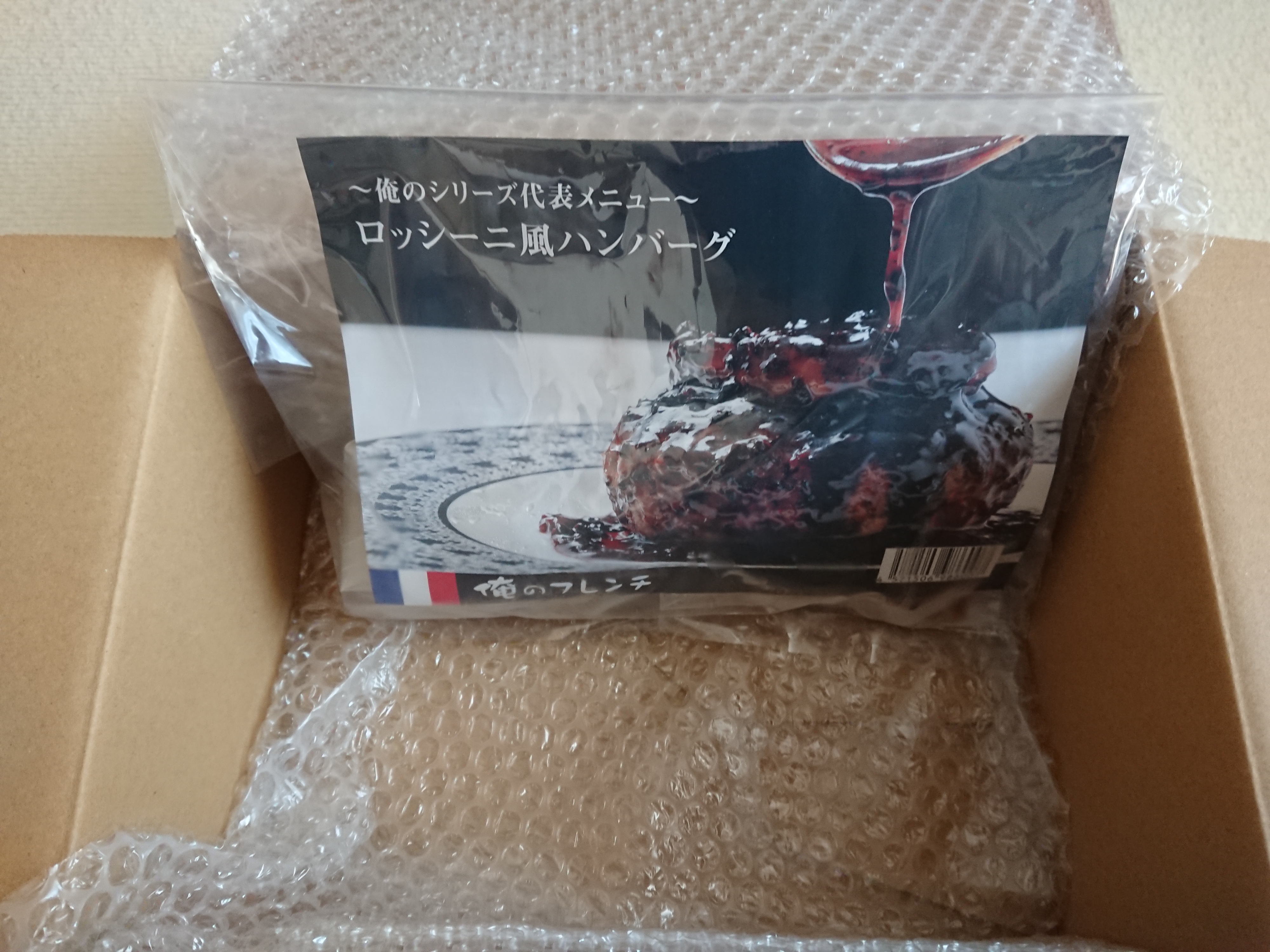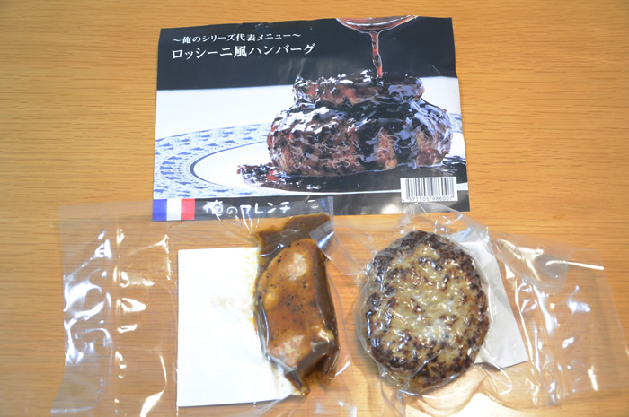 中には商品やお店の説明が書かれたリーフレットと、透明な袋に真空パックされたハンバーグとフォアグラと調理方法が書かれたリーフレットが1セットにされ入っていました。
