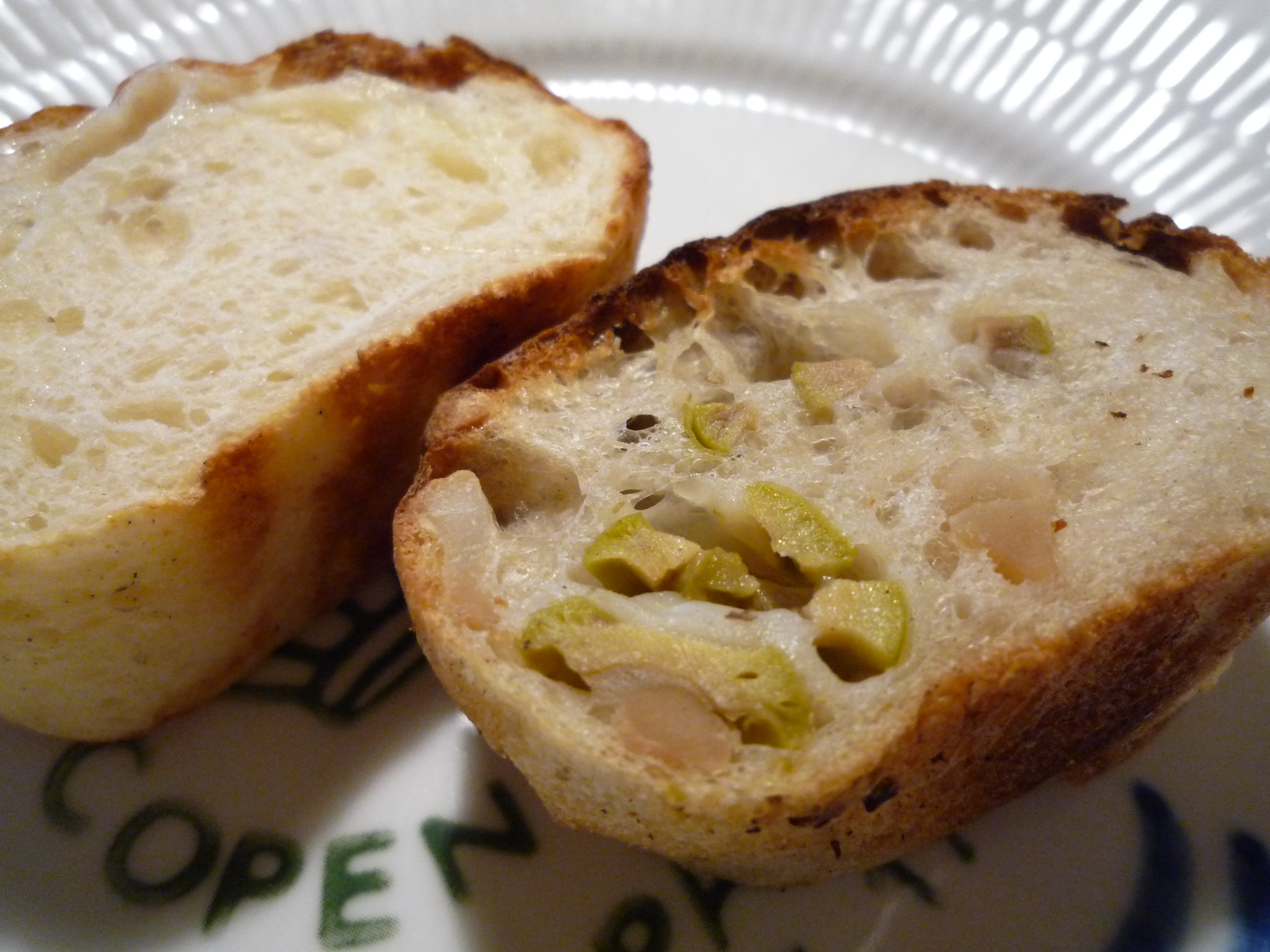 高加水な雰囲気が漂っています。中にナッツとオリーブ。